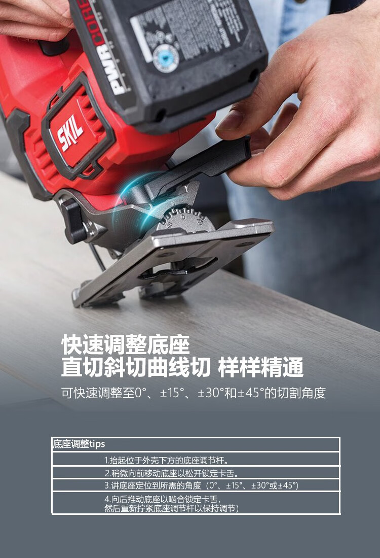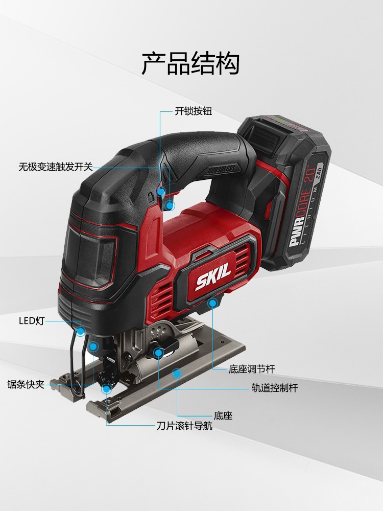 SKIL 20V 브러시리스 리튬 전기 지그 톱 8202 목공 톱 가정용 다기능 절단기 전기 톱 수동 풀 꽃