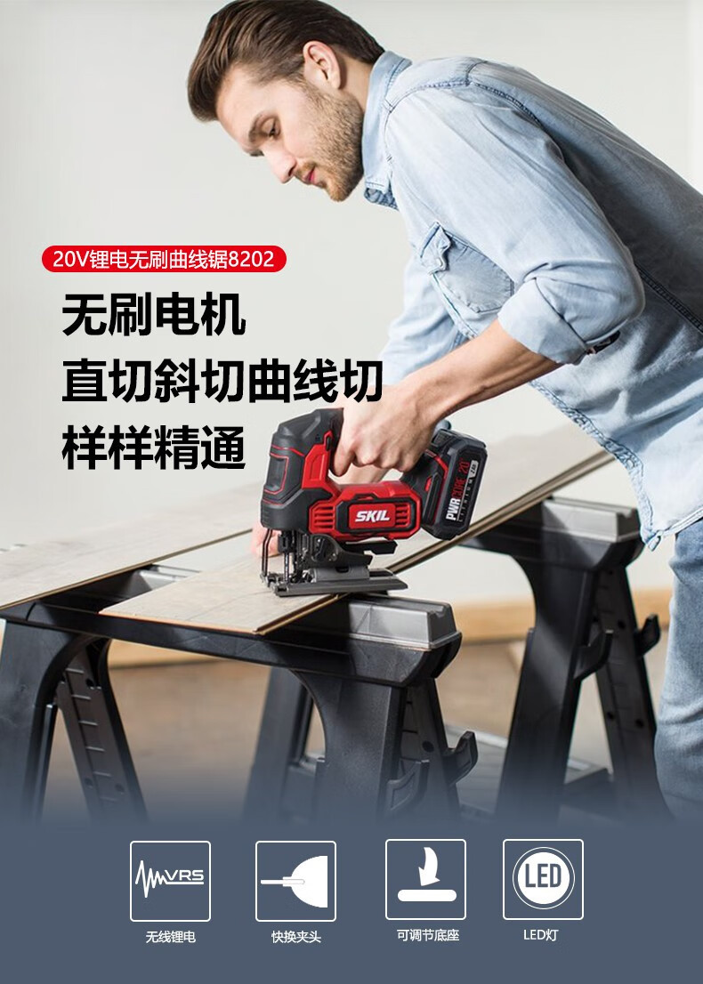 SKIL 20V 브러시리스 리튬 전기 지그 톱 8202 목공 톱 가정용 다기능 절단기 전기 톱 수동 풀 꽃스토어 가기
