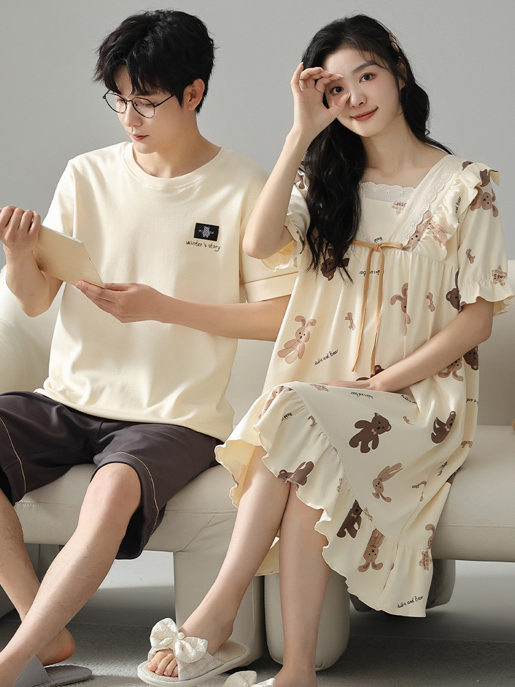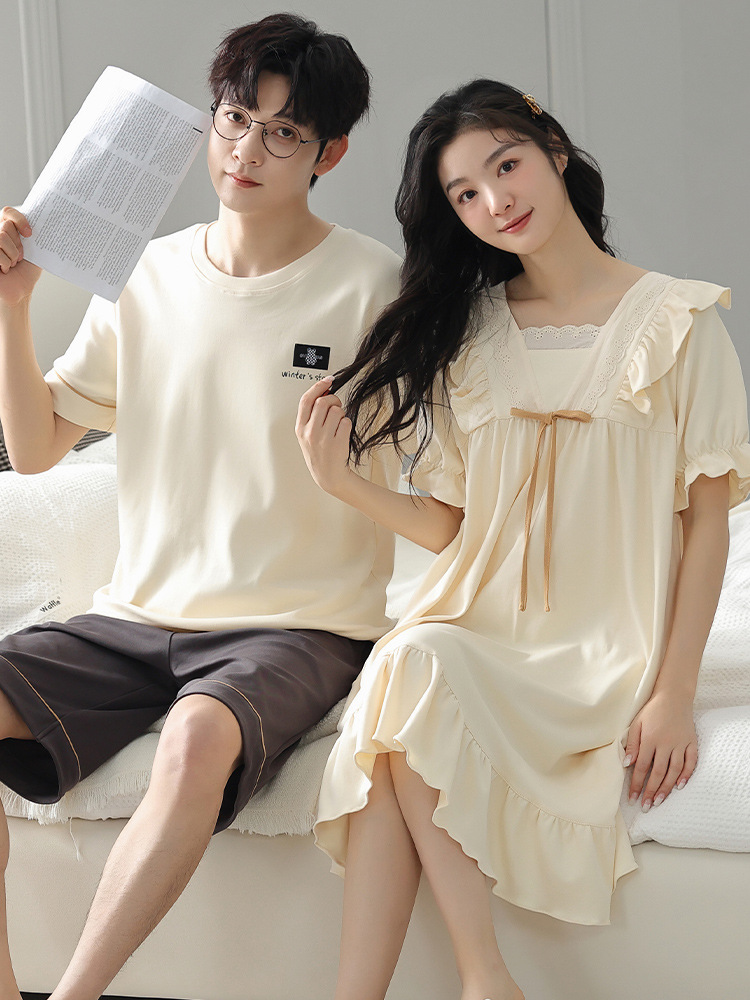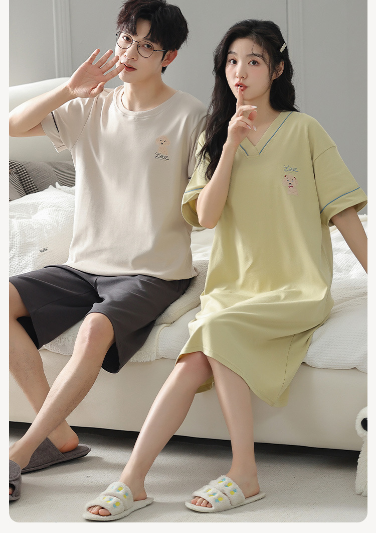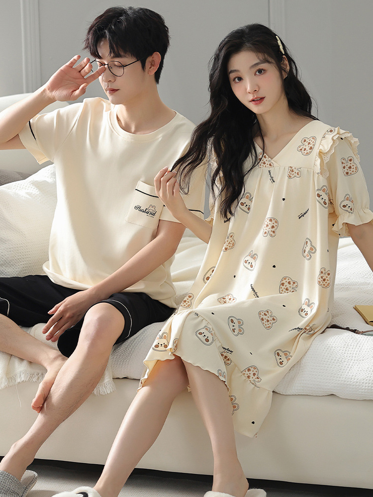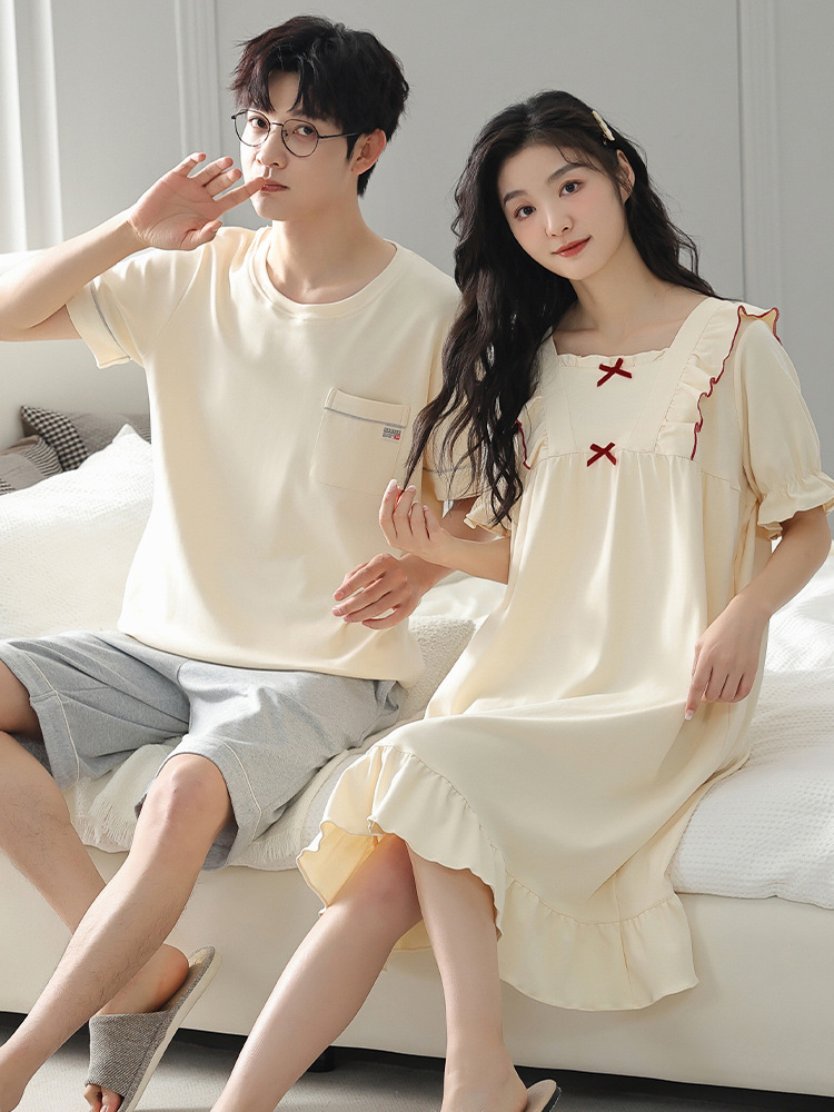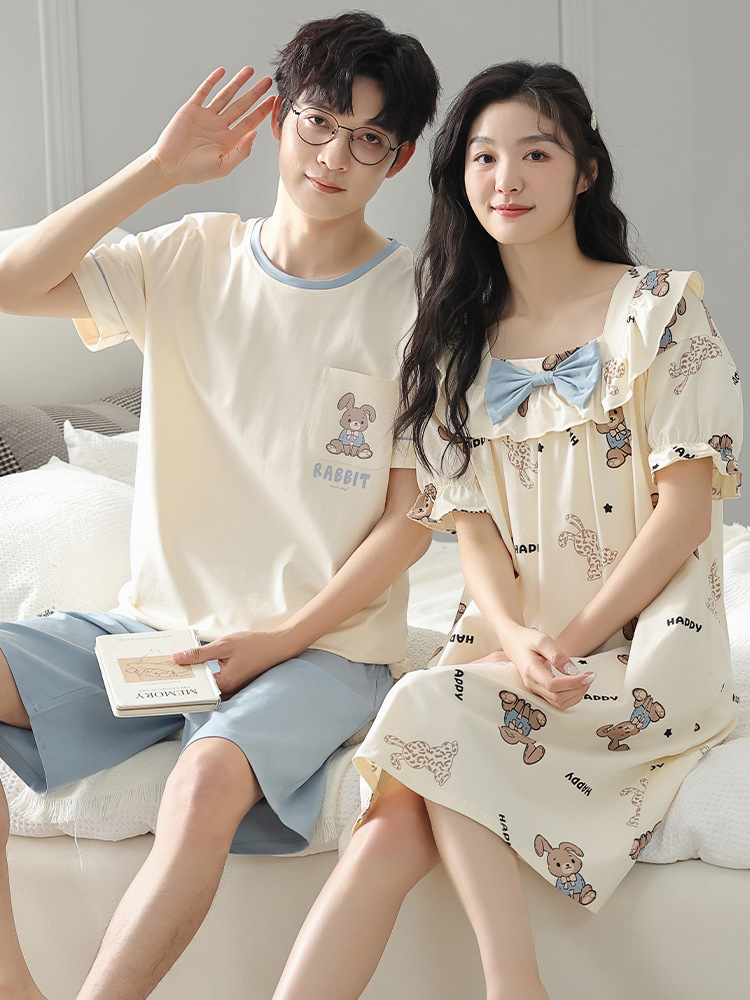 커플 잠옷 여름 순면 반팔 반바지 여성 줄무늬 잠옷 남성용 겉옷 얇은 느슨한 홈 옷