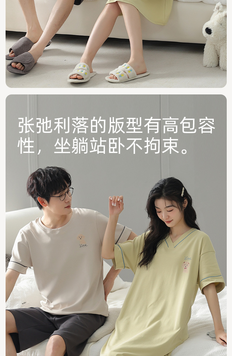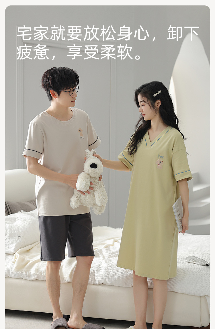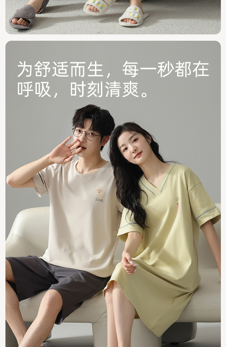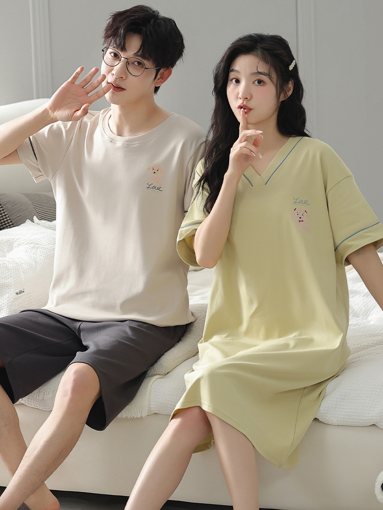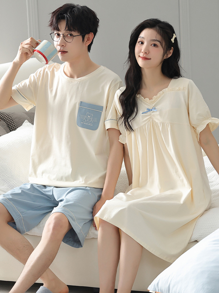 커플 잠옷 여름 순면 반팔 반바지 여성 줄무늬 잠옷 남성용 겉옷 얇은 느슨한 홈 옷스토어 가기