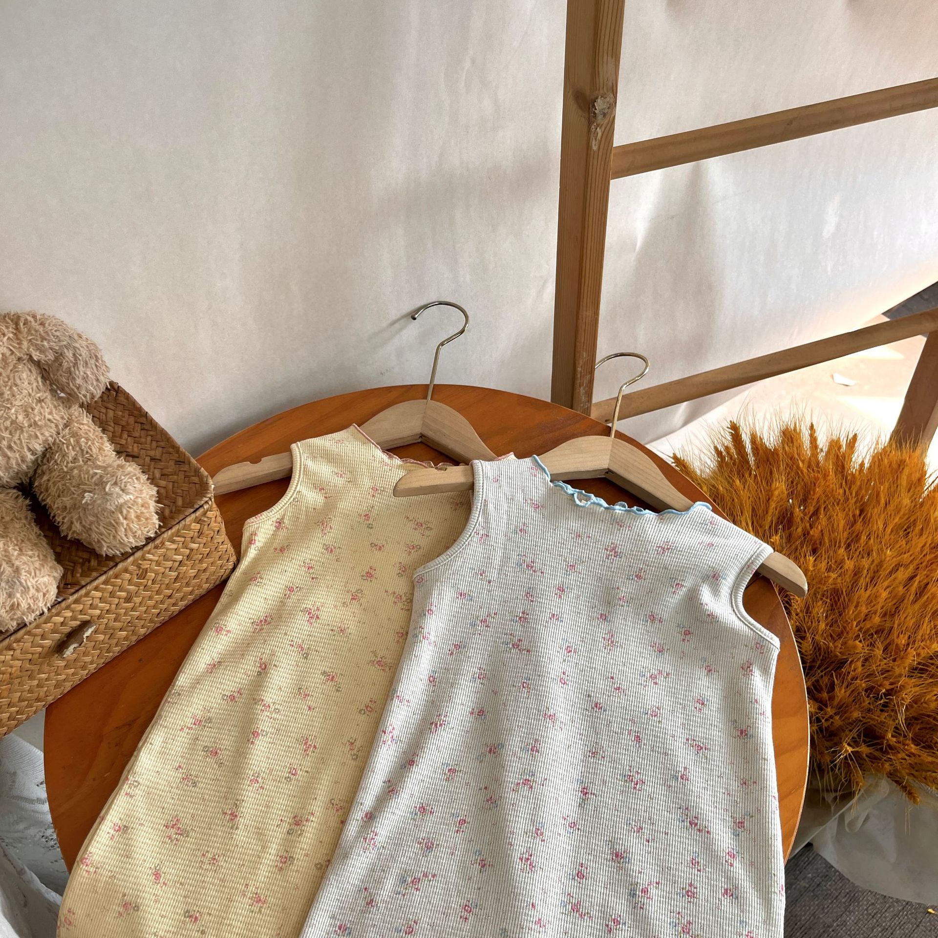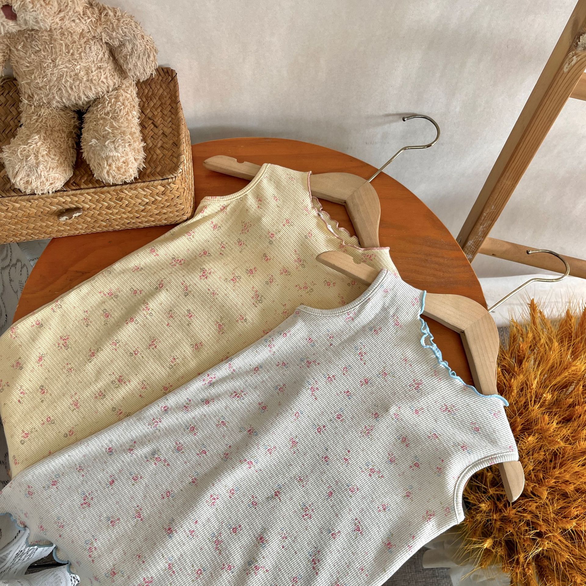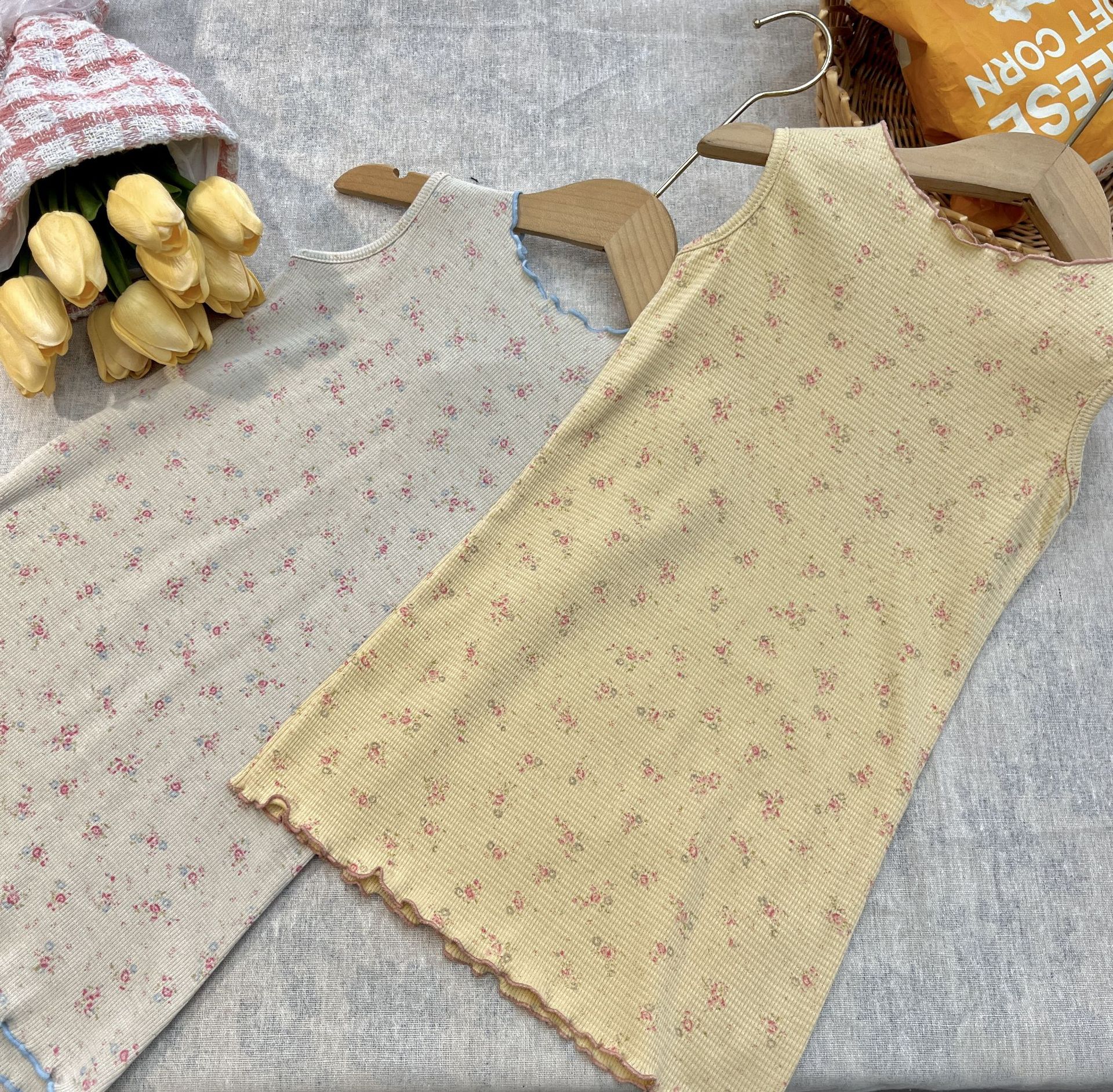 재고 정리~2025년 여름 여아용 스타일리시하고 편안한 플로럴 민소매 원피스, 데일리룩으로 활용도 높은 러플 스커트
