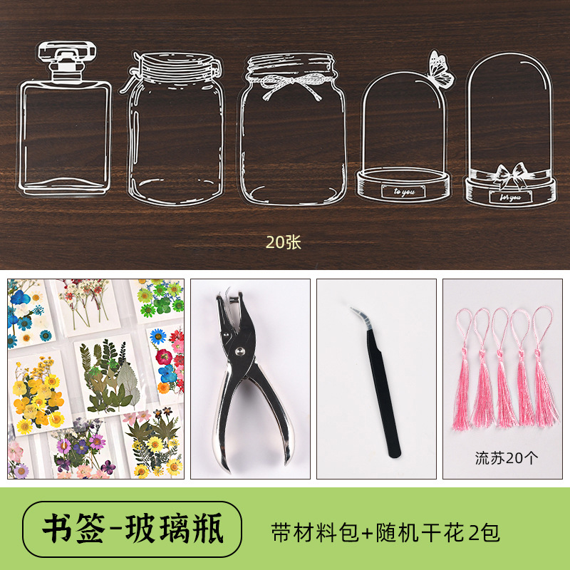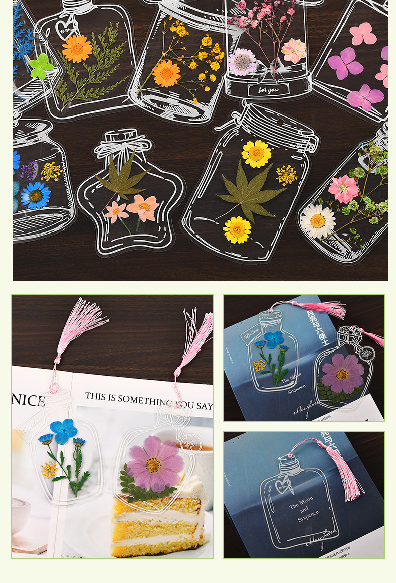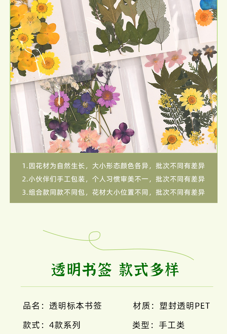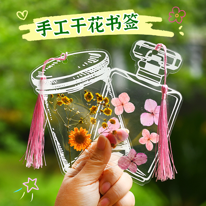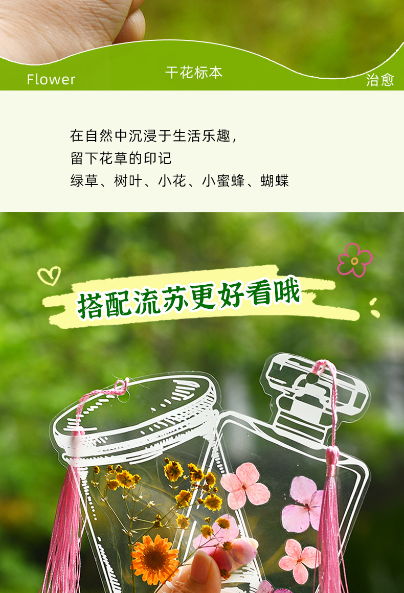 봄철 수제 드라이플라워 북마크 DIY 압화 재료 패키지 플라스틱 투명 작은 병 수제 식물 표본스토어 가기