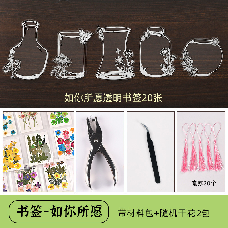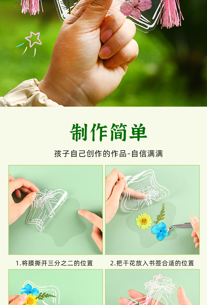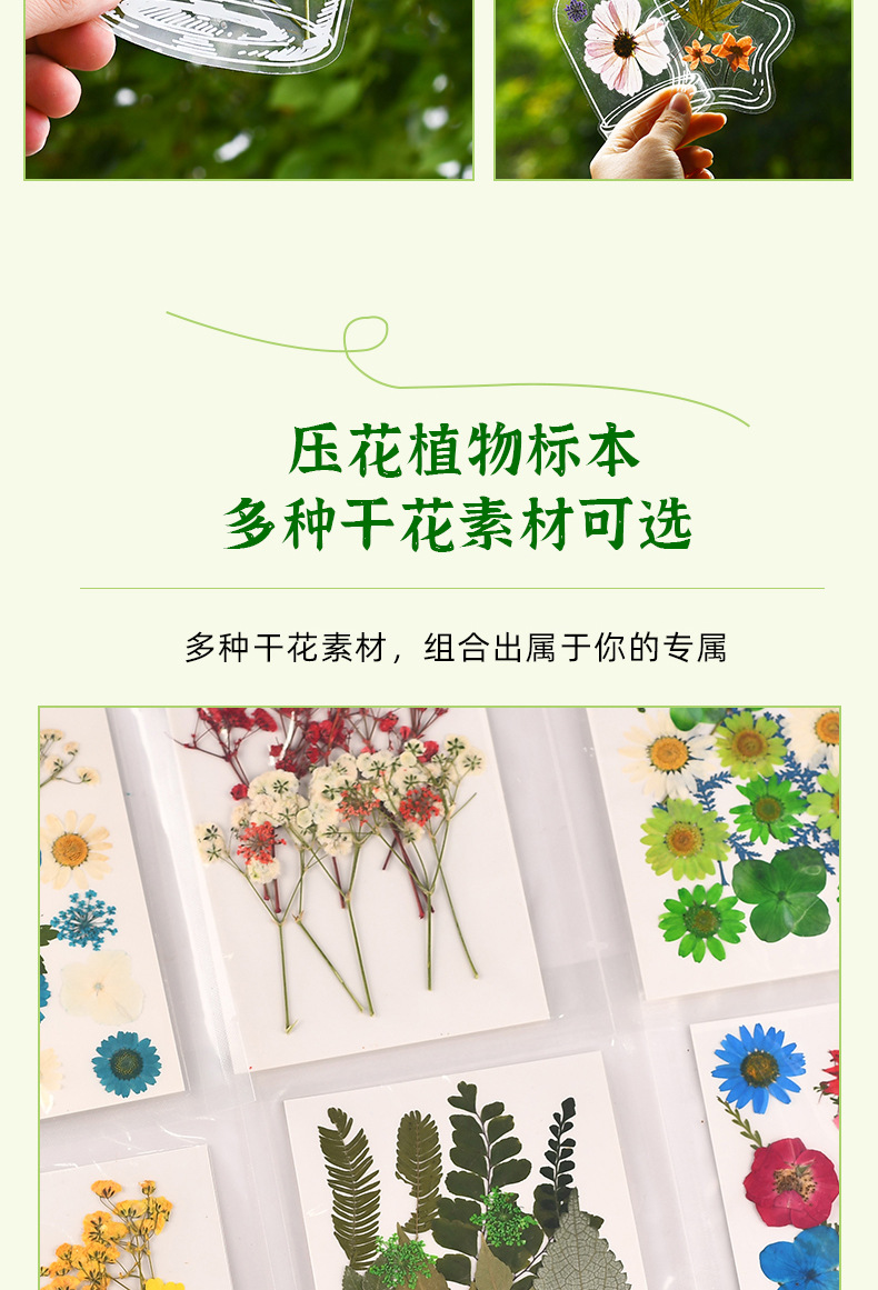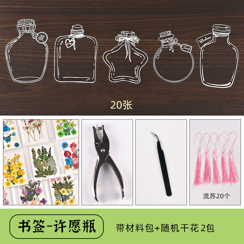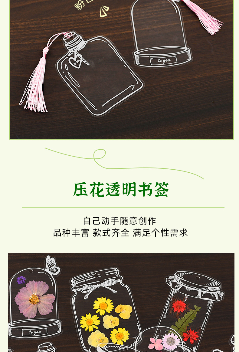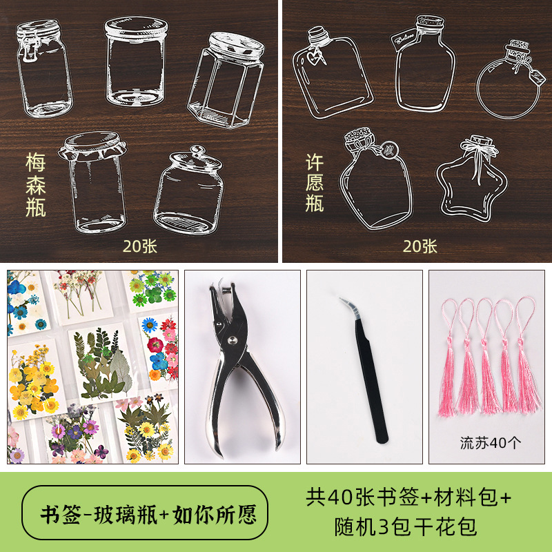 봄철 수제 드라이플라워 북마크 DIY 압화 재료 패키지 플라스틱 투명 작은 병 수제 식물 표본스토어 가기