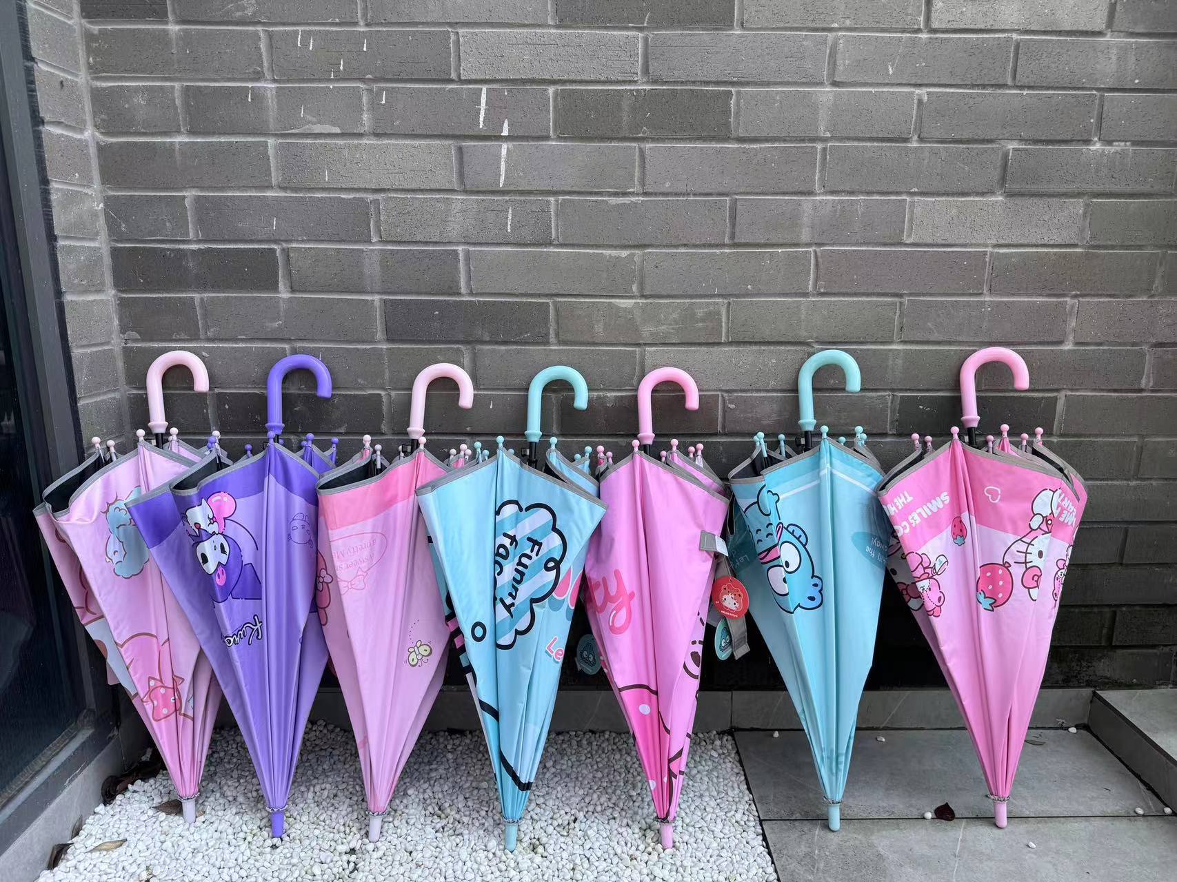 산리오 정품 인증 어린이 스트레이트 핸들 안전 우산 반사 스트립스토어 가기