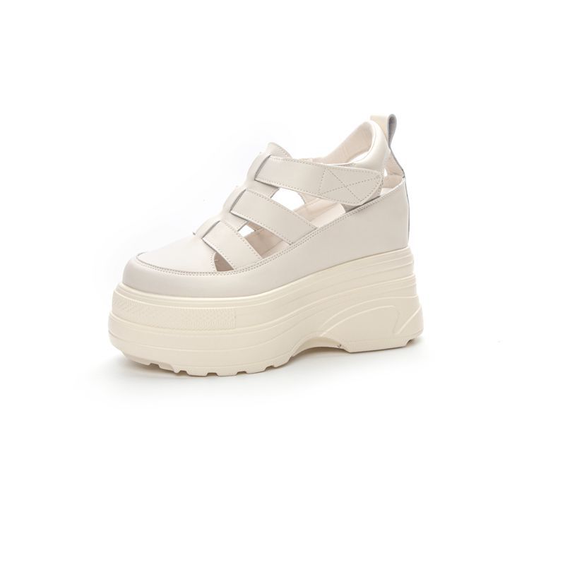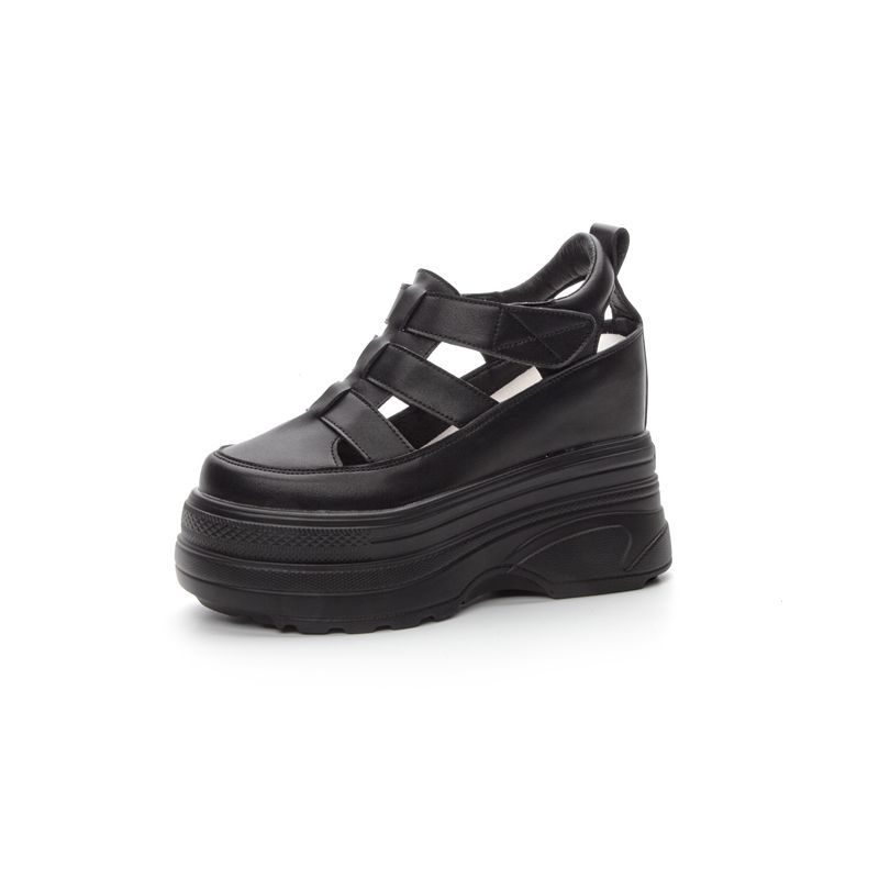 Baotou 겉옷 작은 공주 샌들 강화 플랫폼 로마네스크 하프 컷 가죽 여성용 샌들