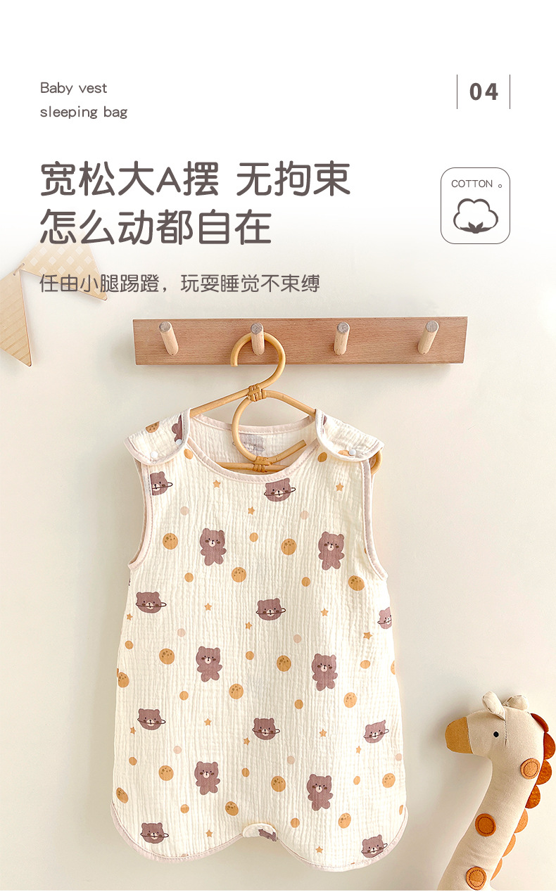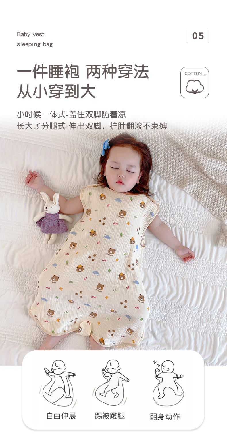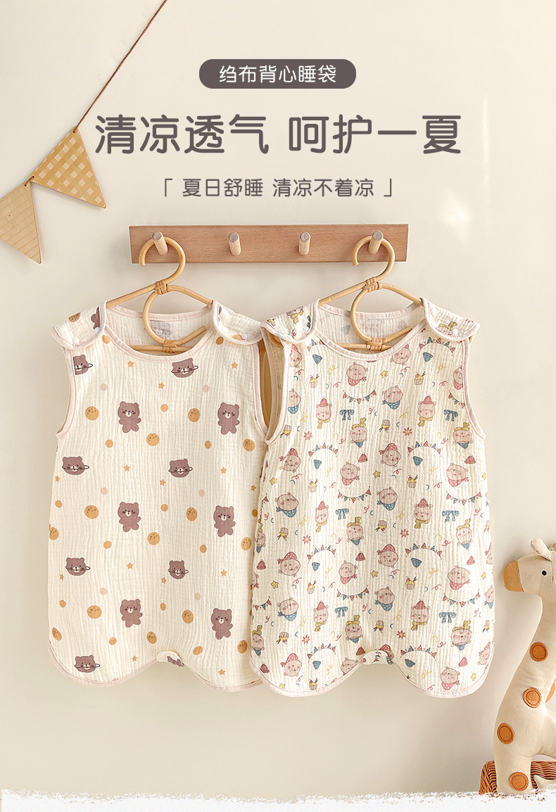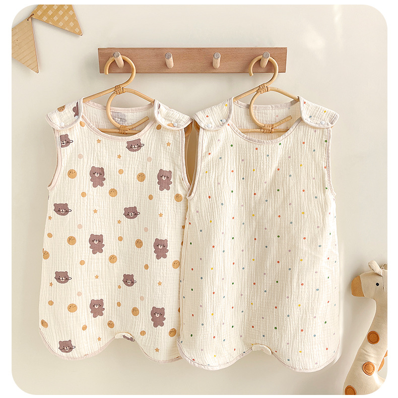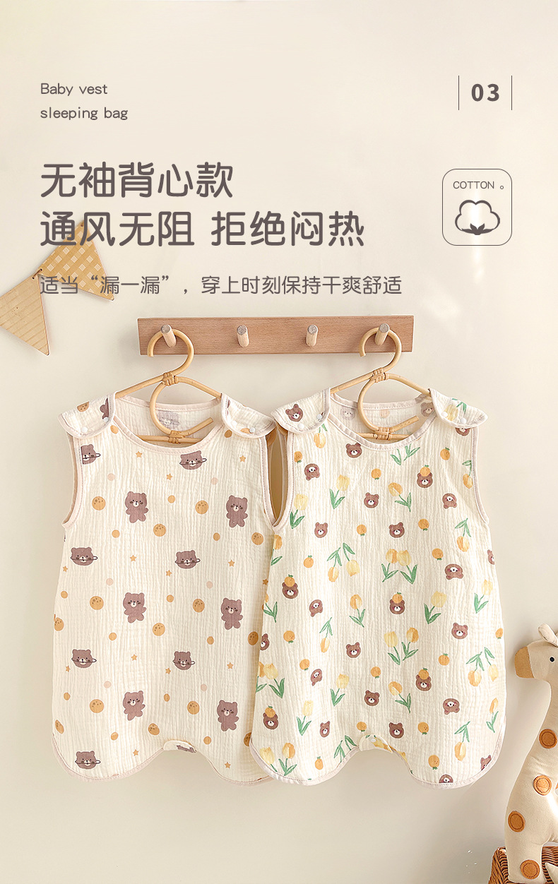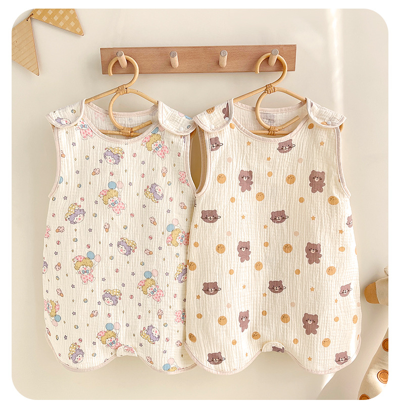 거즈 어린이 침낭 유아용 A급 통기성 땀흡수 신생아 민소매 다리 분리형 발차기 방지 이불 면 거즈 얇은 모델스토어 가기