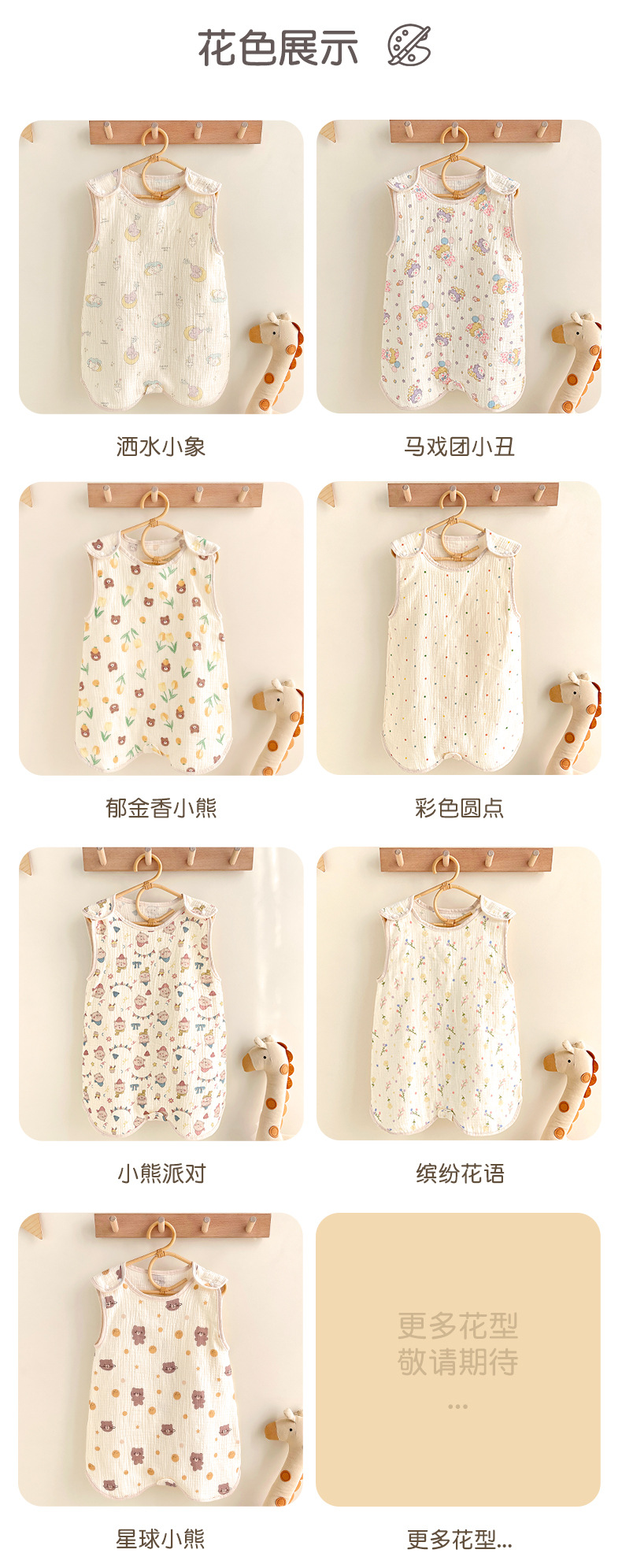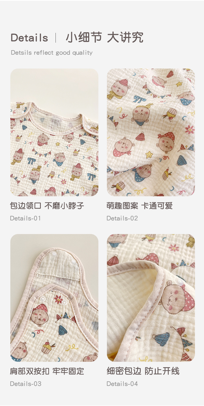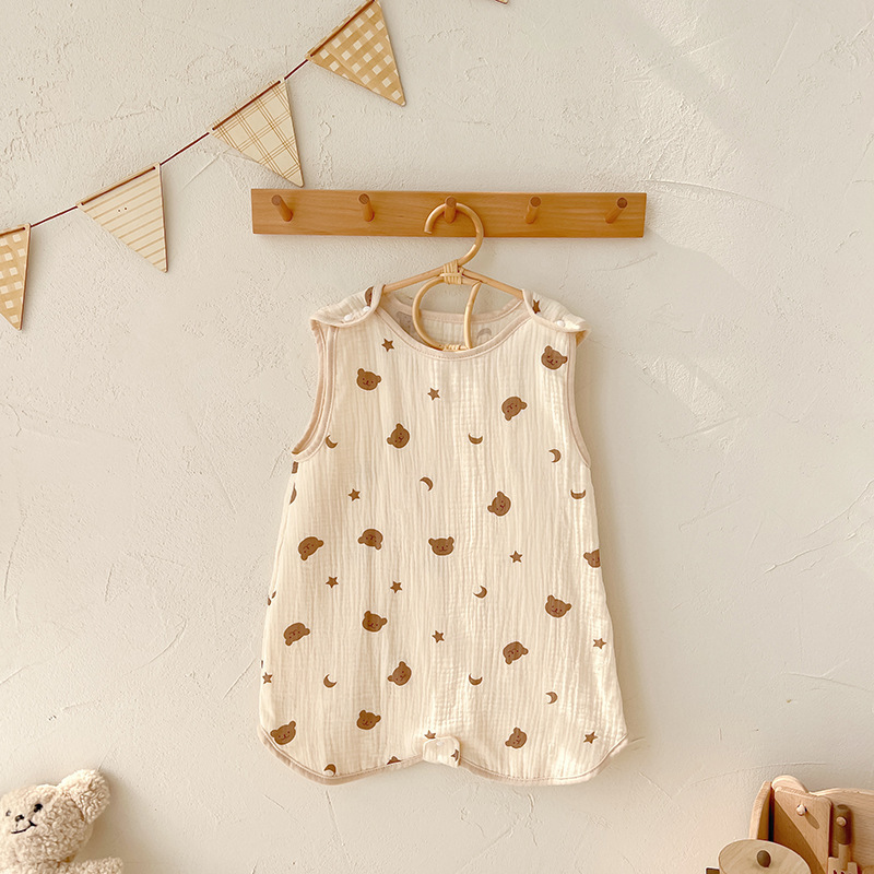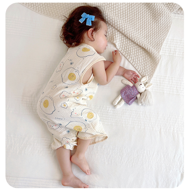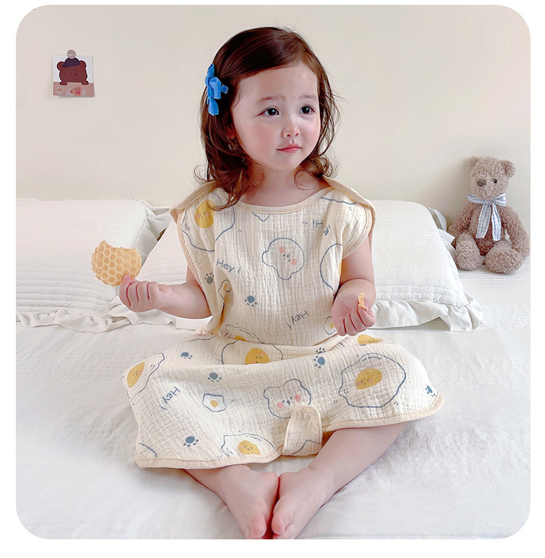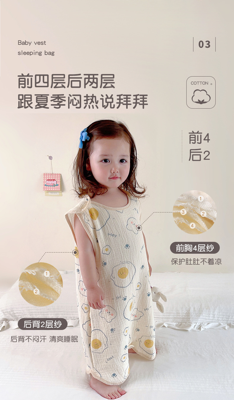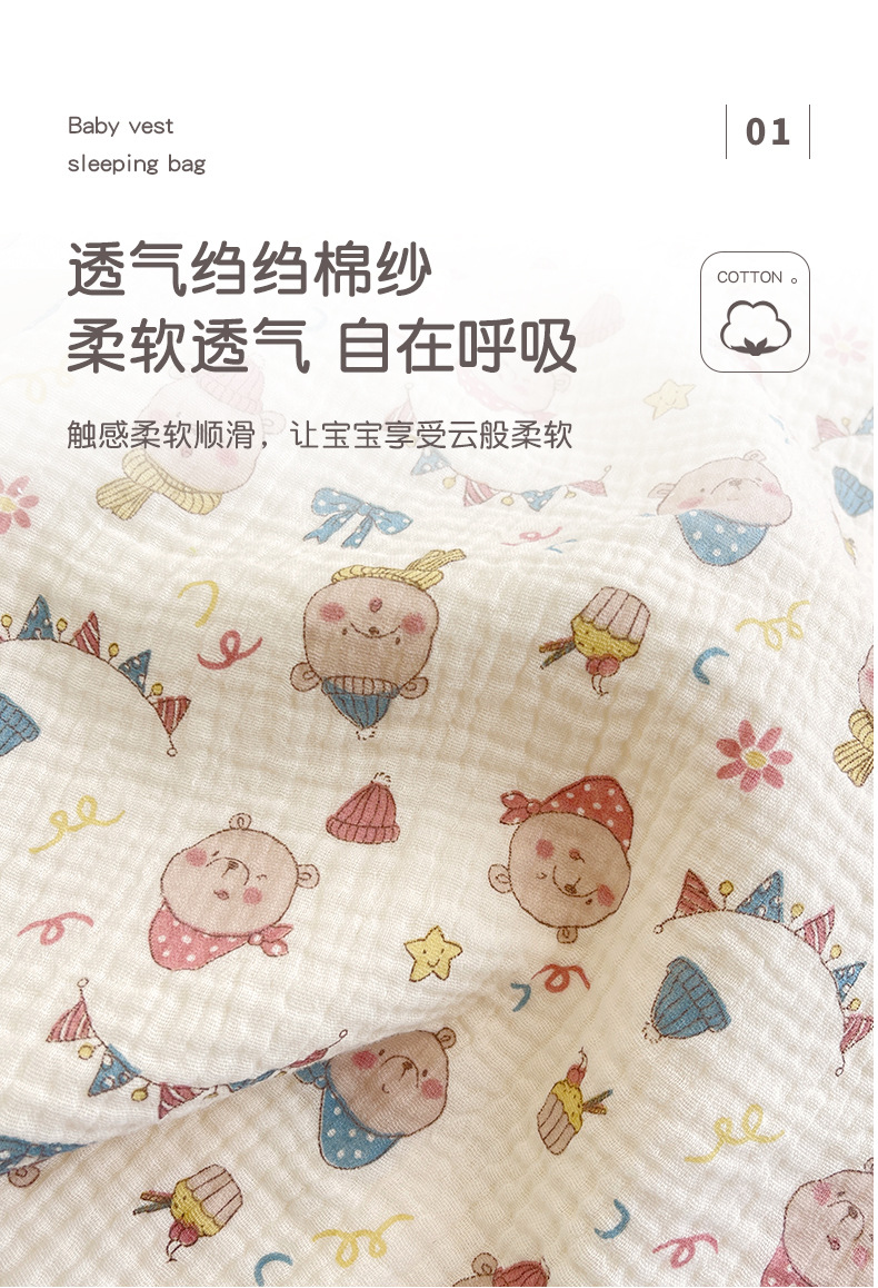 거즈 어린이 침낭 유아용 A급 통기성 땀흡수 신생아 민소매 다리 분리형 발차기 방지 이불 면 거즈 얇은 모델스토어 가기