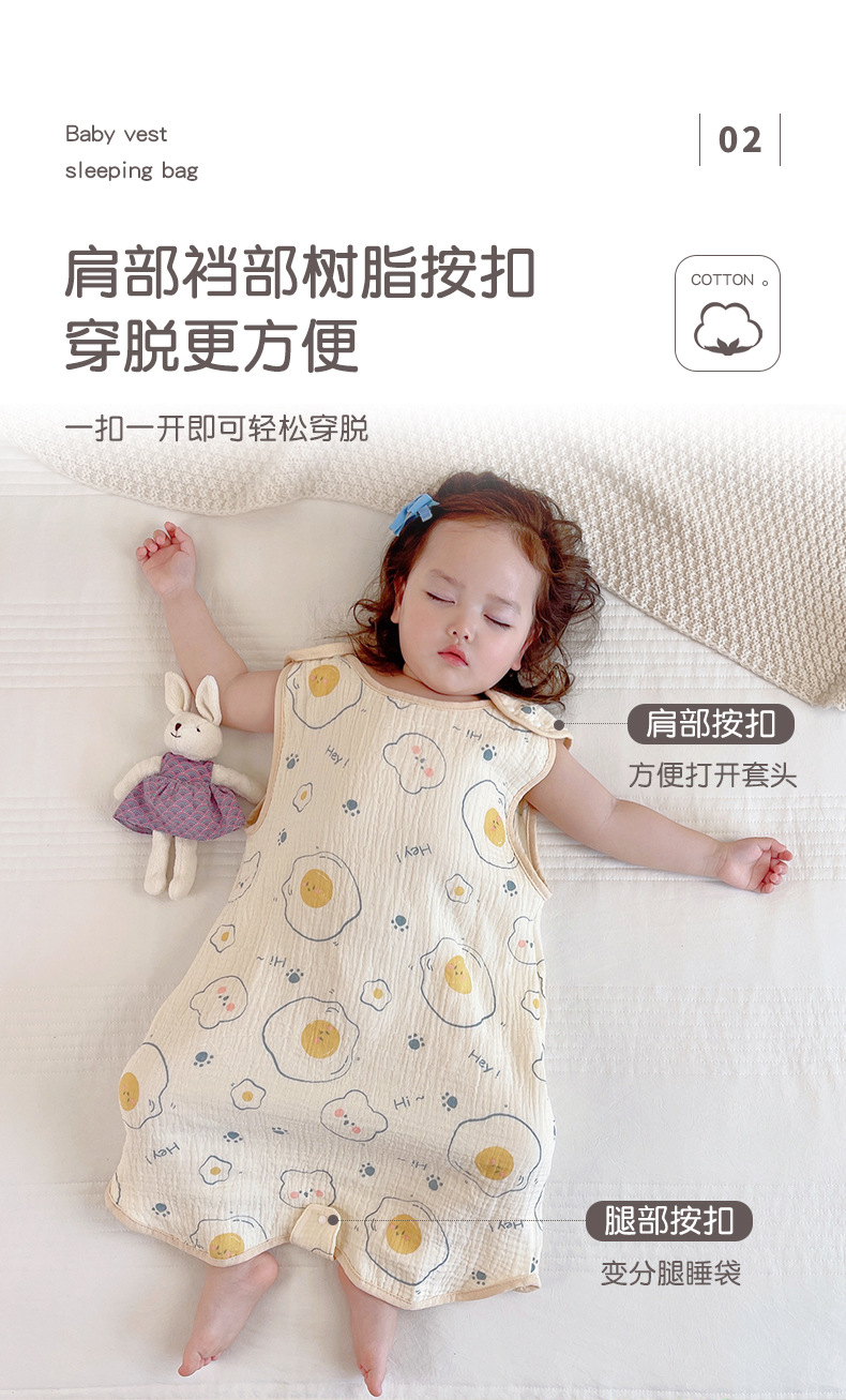 거즈 어린이 침낭 유아용 A급 통기성 땀흡수 신생아 민소매 다리 분리형 발차기 방지 이불 면 거즈 얇은 모델