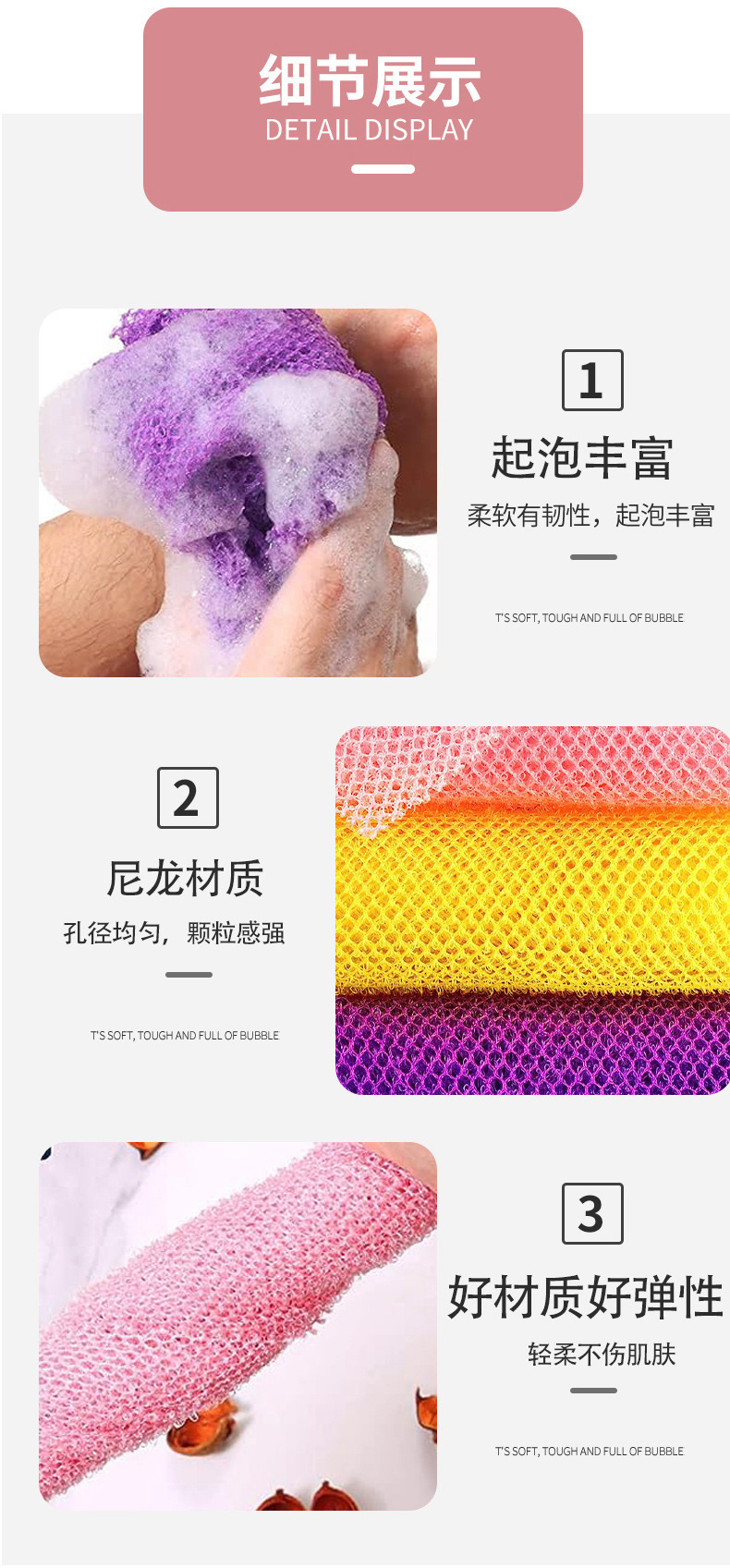 엄선된 나일론 긴 메쉬 목욕 타월, 아프리카식 등 문지르기 목욕 도구, 목욕 때 제거용 등 문지르기 타월스토어 가기
