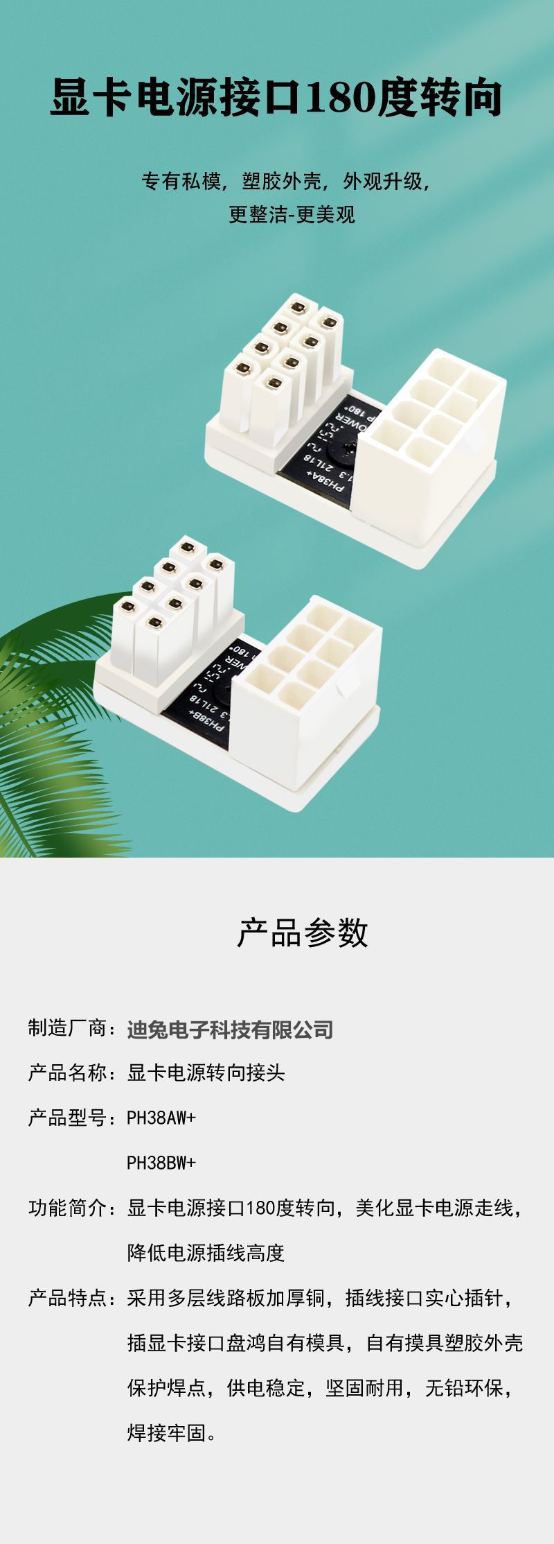 그래픽 카드 전원 공급 장치 180 도 스티어링 커넥터 8P 터닝 장치 섀시 라우팅 미화는 그래픽 카드 상단 커버의 흰색을 해결합니다.스토어 가기