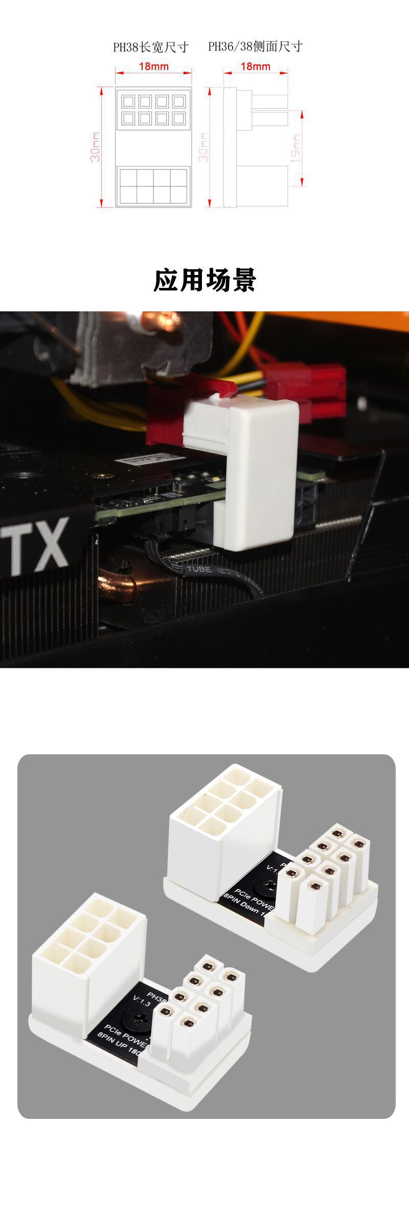 그래픽 카드 전원 공급 장치 180 도 스티어링 커넥터 8P 터닝 장치 섀시 라우팅 미화는 그래픽 카드 상단 커버의 흰색을 해결합니다.