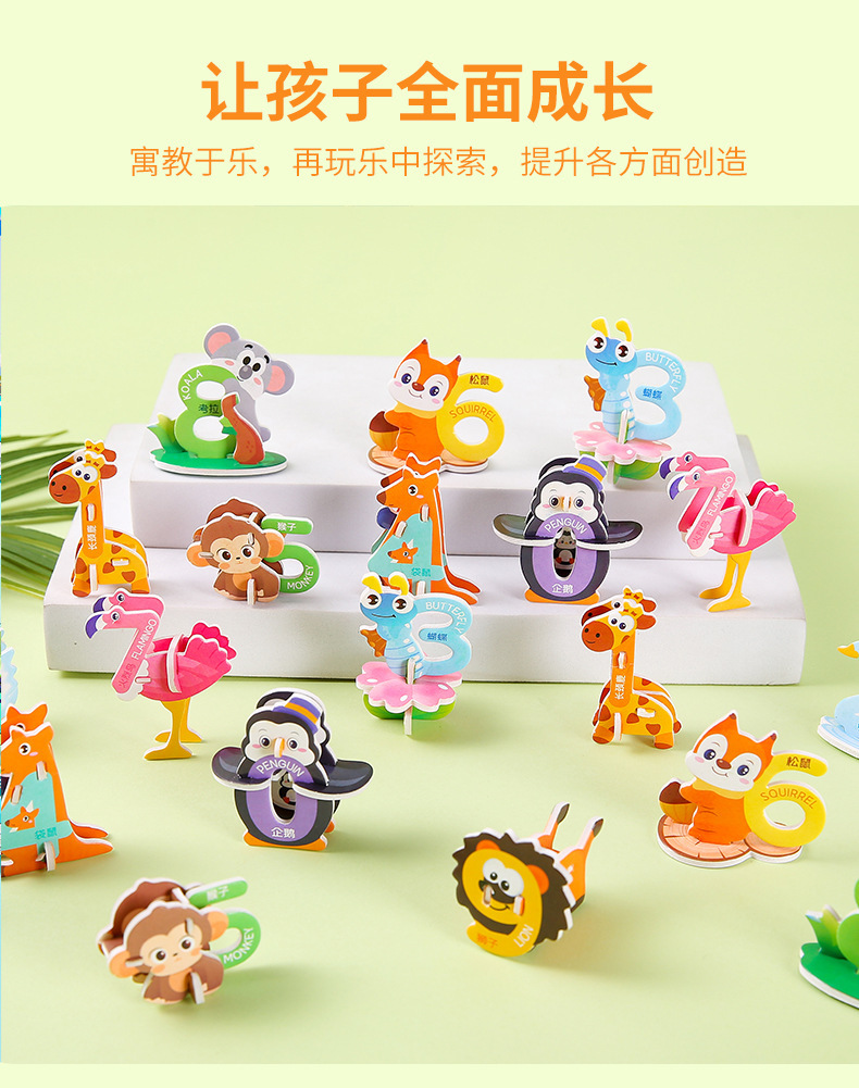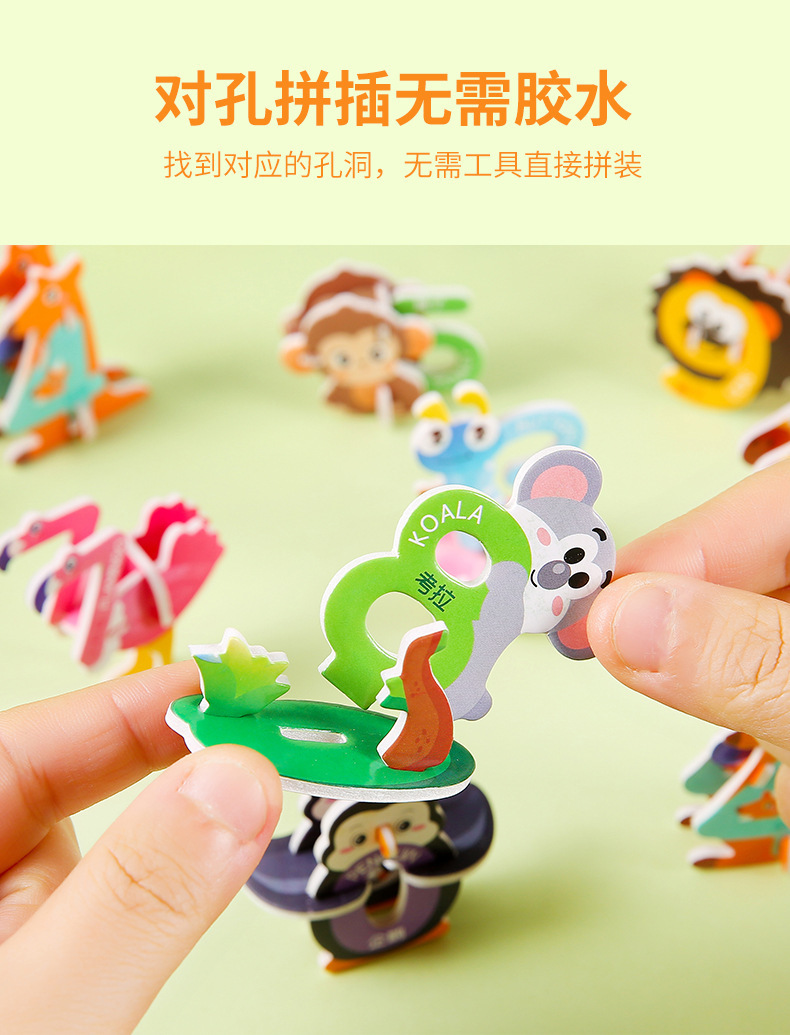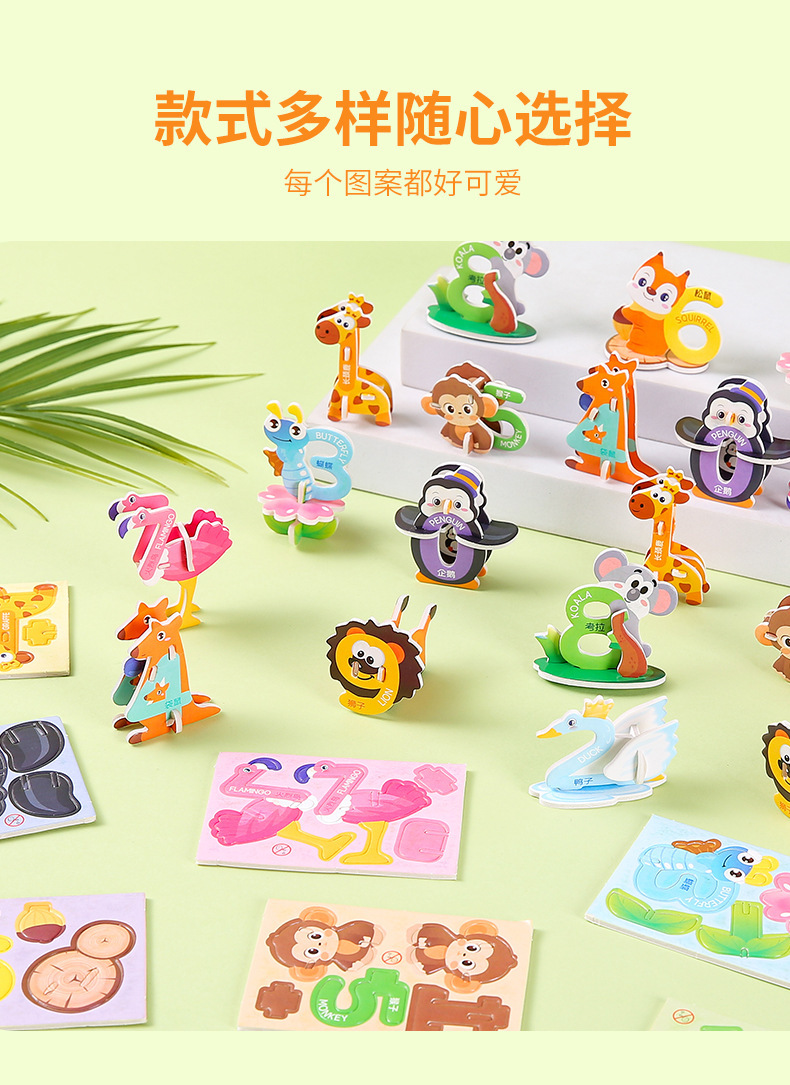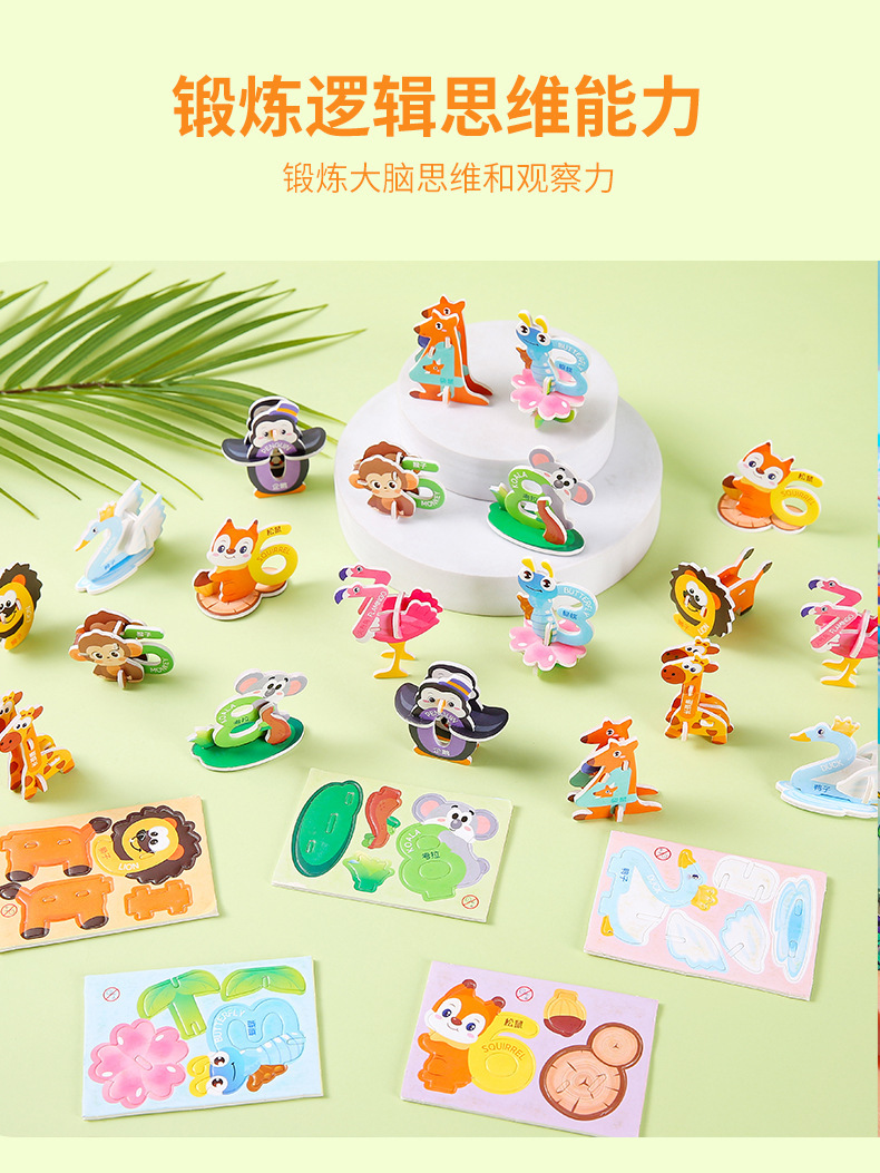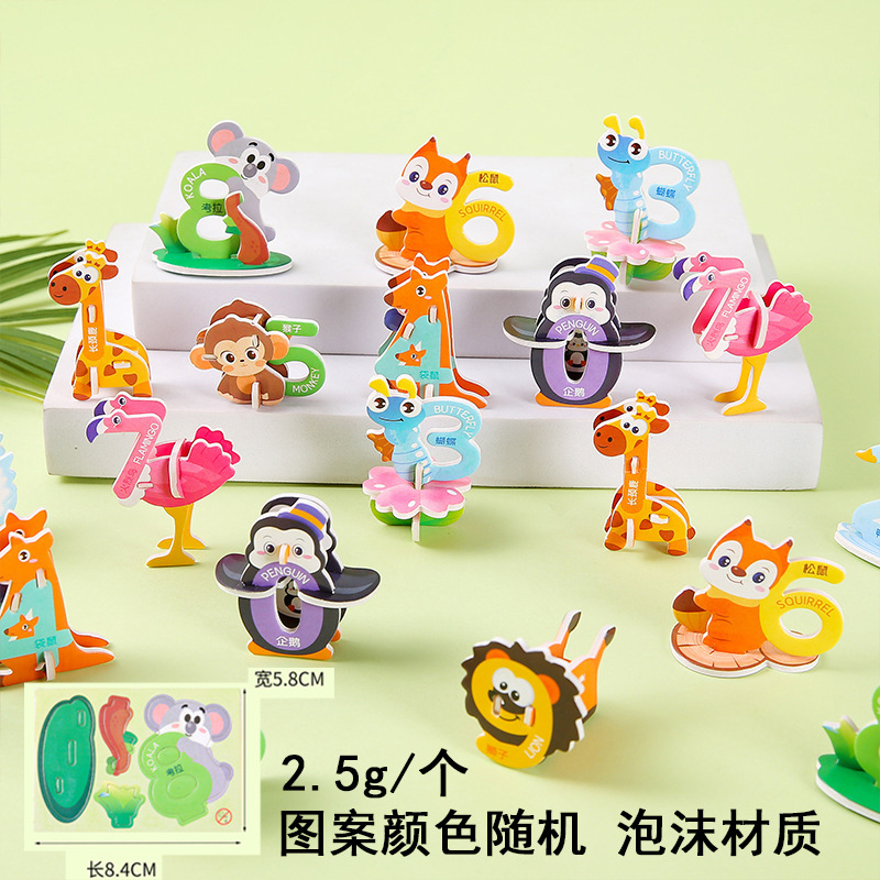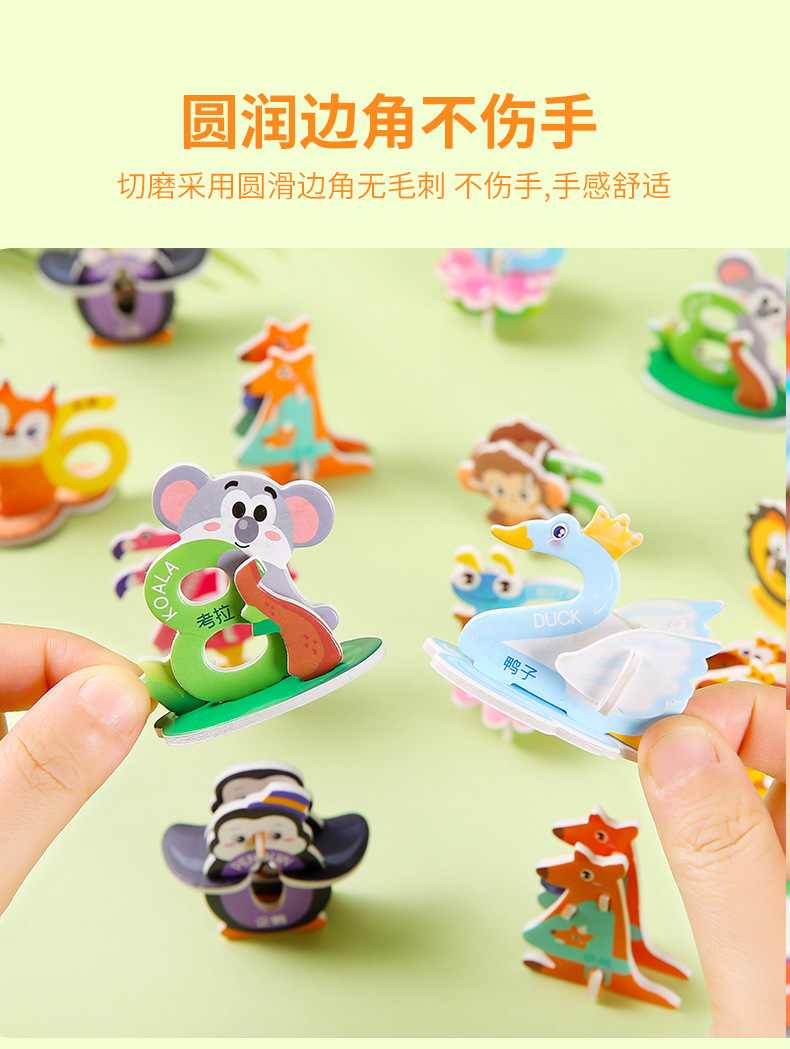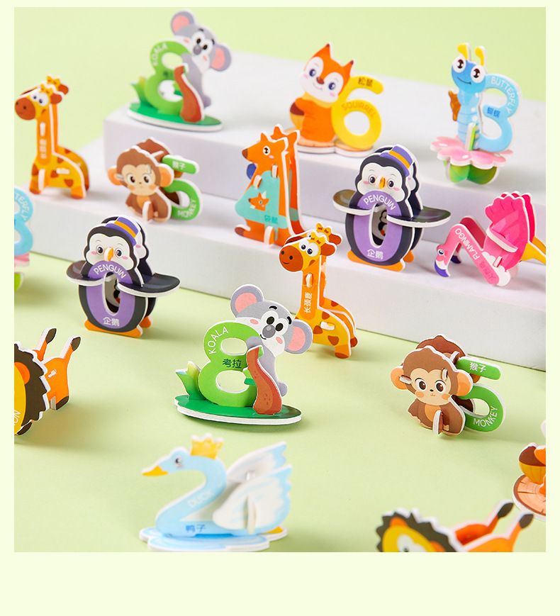 3D 종이 퍼즐 어린이 창조적 인 디지털 동물 퍼즐 DIY 유치원 조기 교육 손으로 조립 된 퍼즐스토어 가기