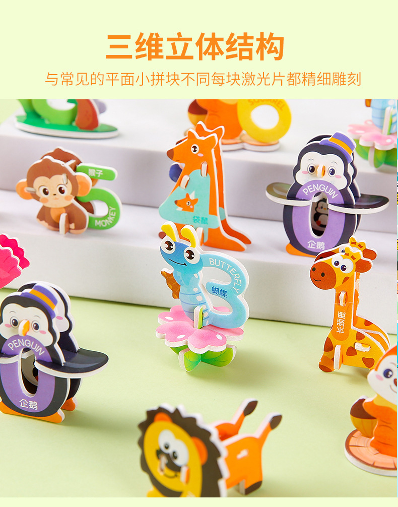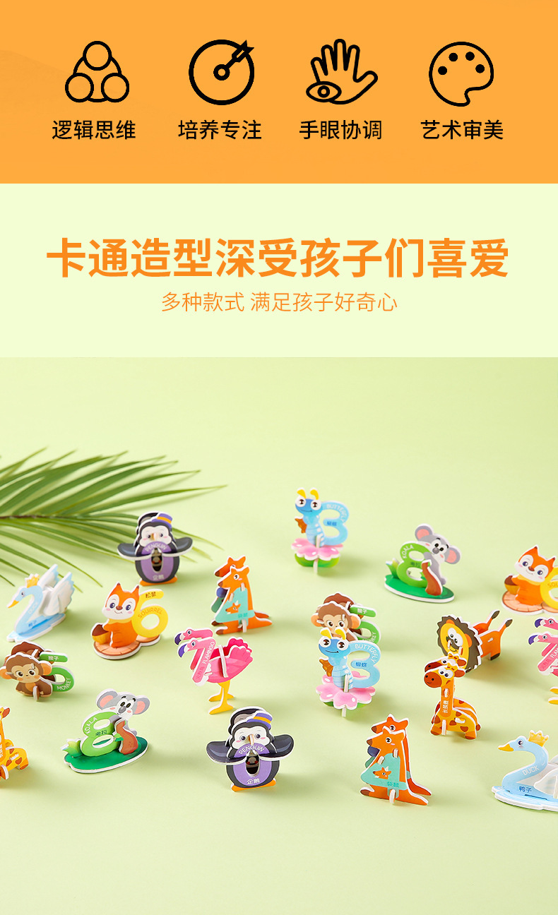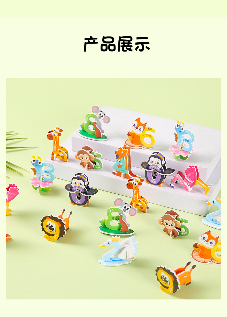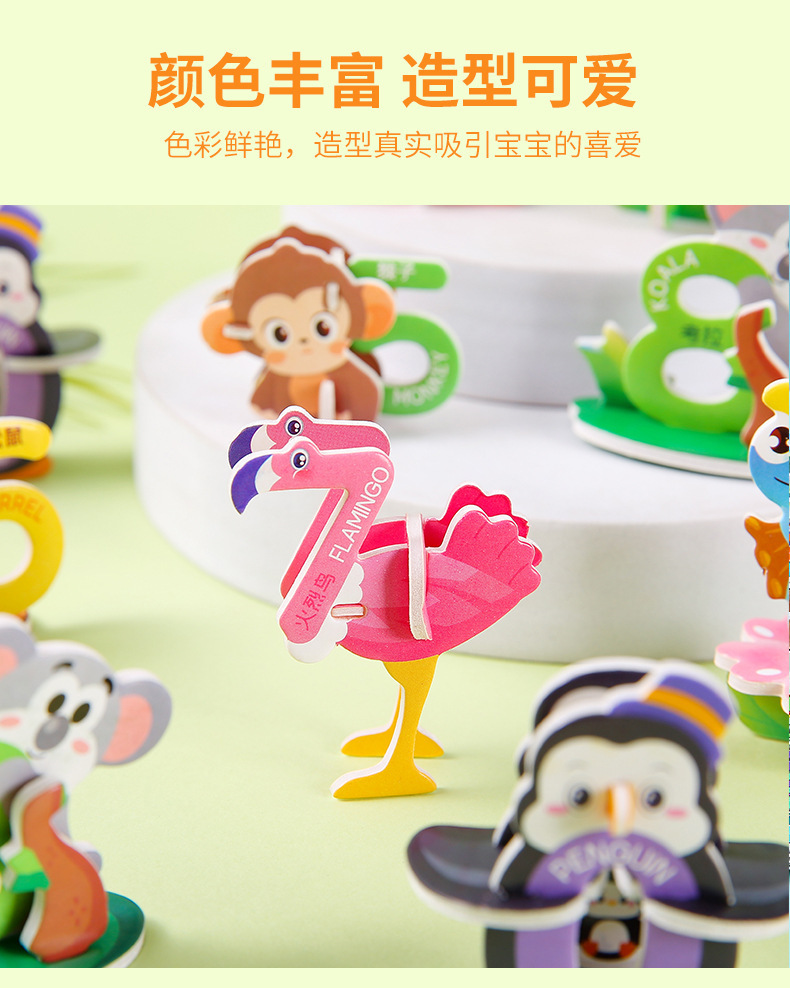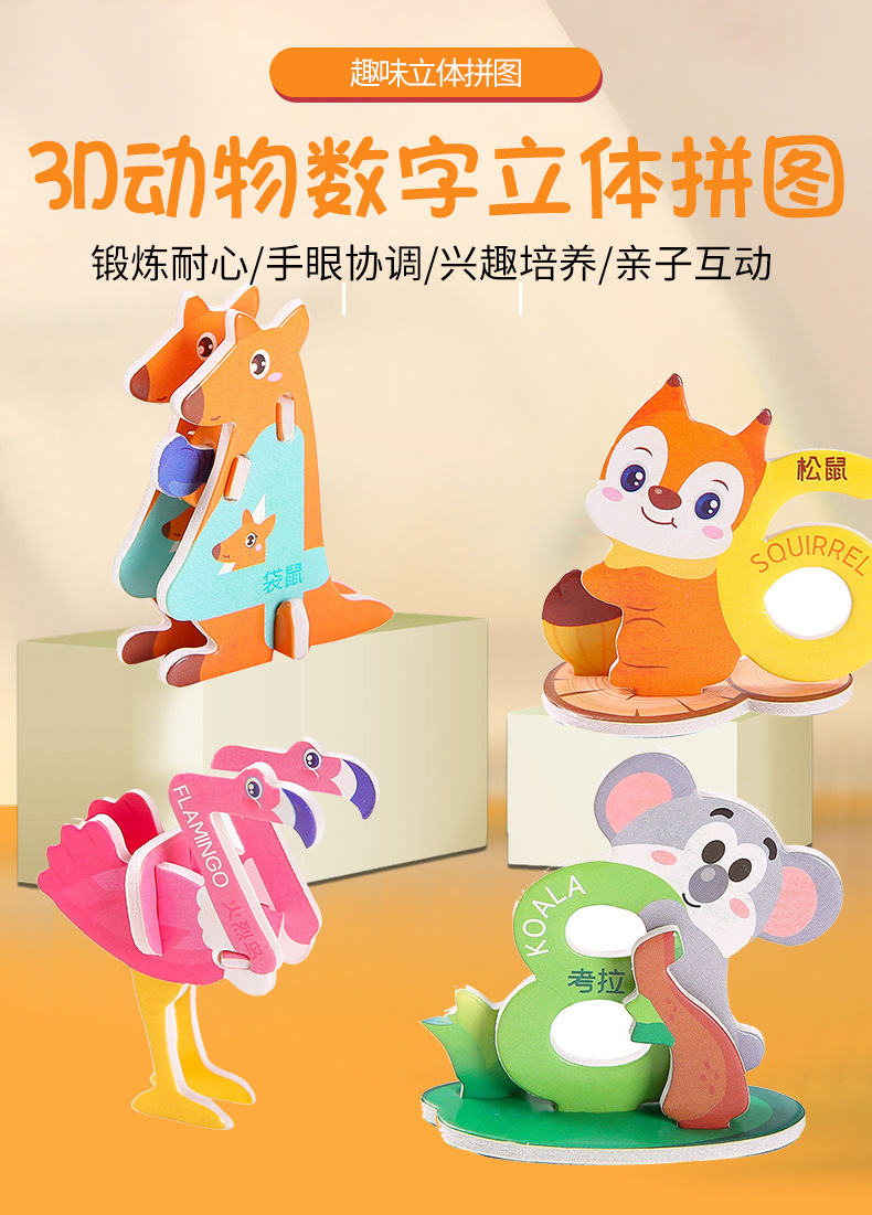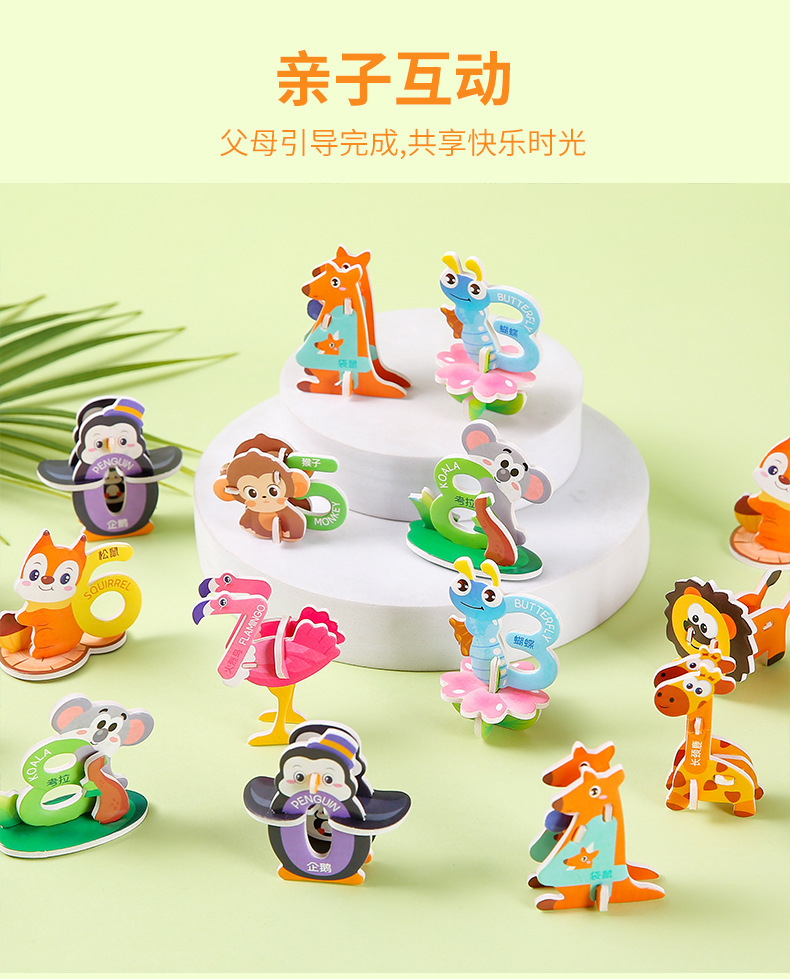 3D 종이 퍼즐 어린이 창조적 인 디지털 동물 퍼즐 DIY 유치원 조기 교육 손으로 조립 된 퍼즐스토어 가기
