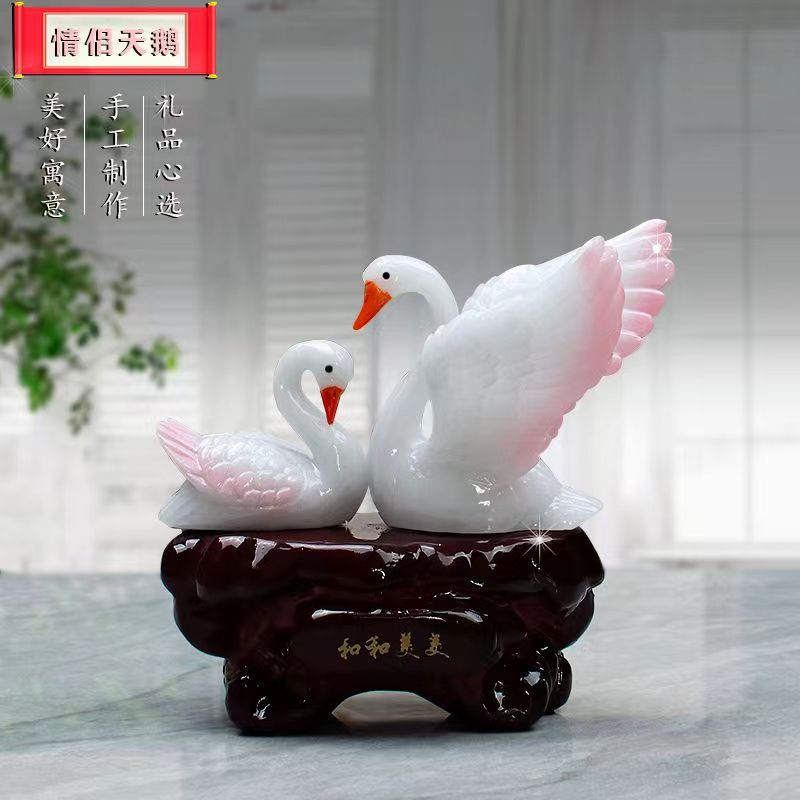 개인화 된 백조 장식품 인터넷 빨간 수지 공예 중국 결혼식 만다린 오리 장식 웨딩 선물 도매
