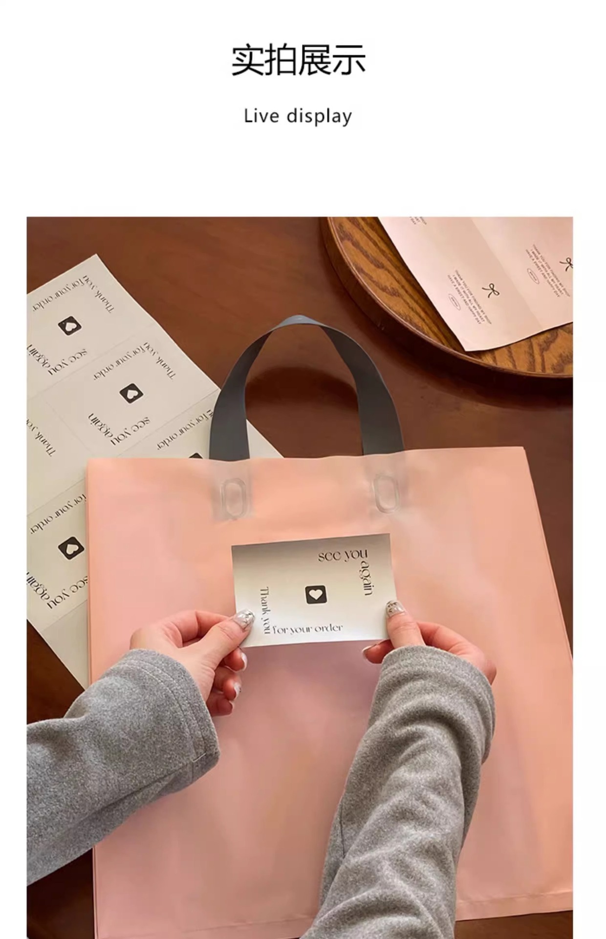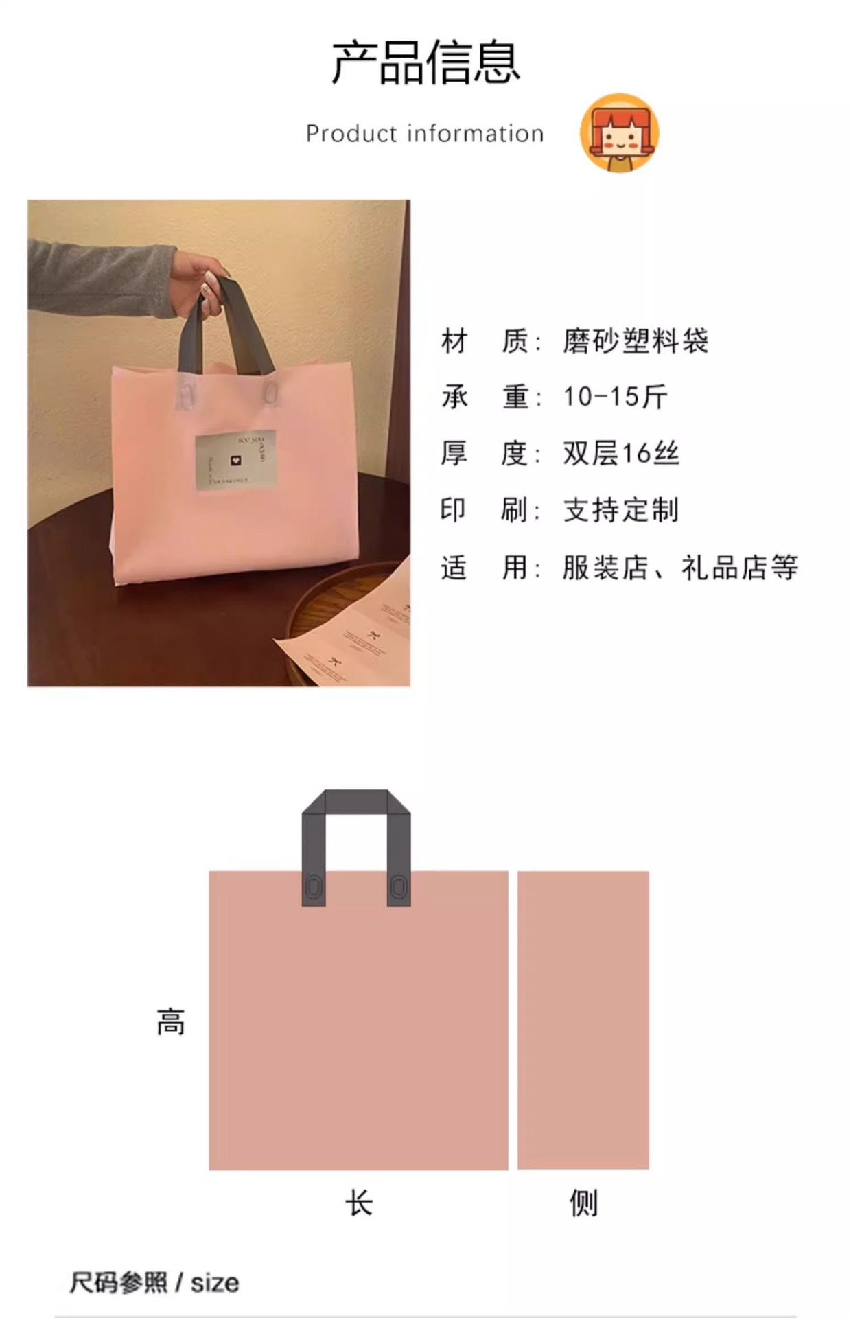 핸드백 비닐 봉투 재고 선물 포장 도매로 하이 엔드 젖빛 의류 매장 여성 의류