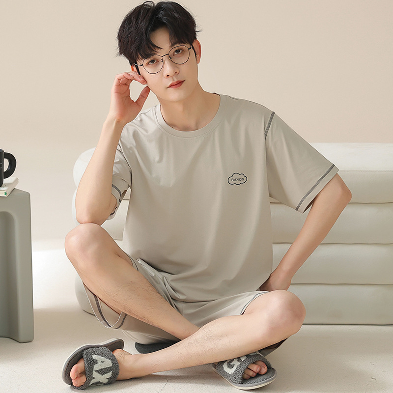 모달 남자 잠옷 남자 여름 반팔 아이스 실크 여름 십대 대형 세트 집 옷을 입고스토어 가기
