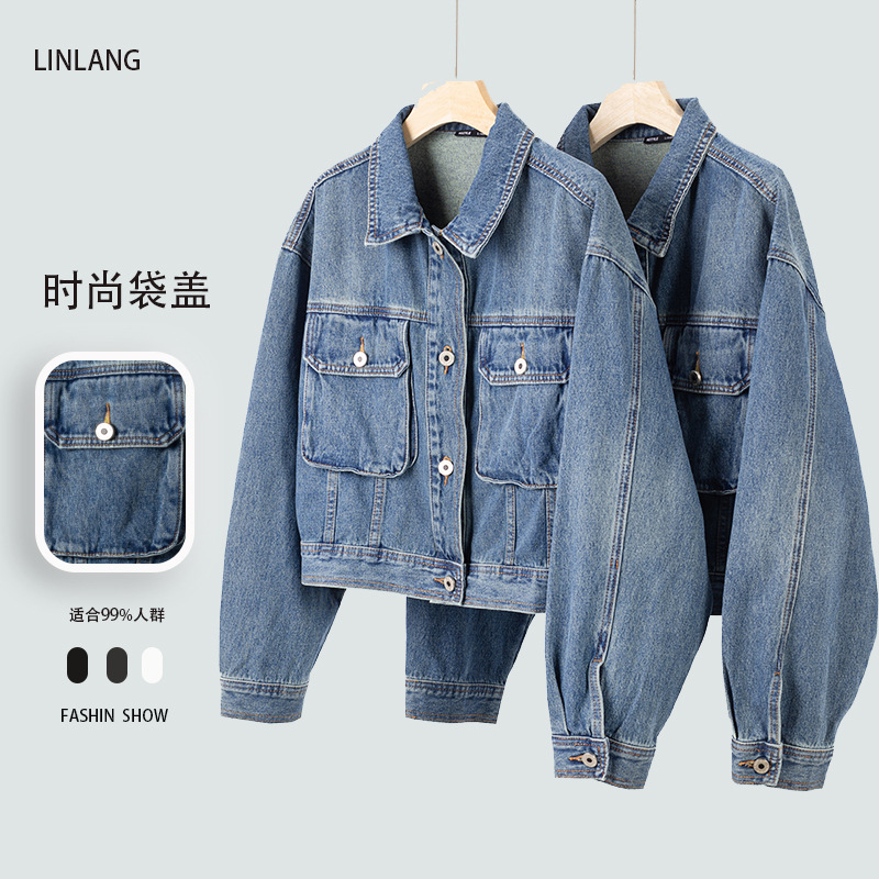 패션 데님 재킷 봄과 가을 새로운 느슨한 올매치 슬리밍 에이지 감소 레트로 홍콩 스타일 재킷 데님 재킷