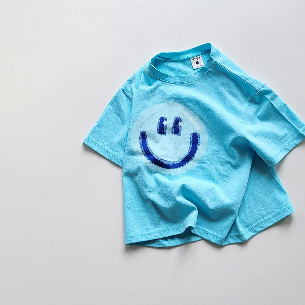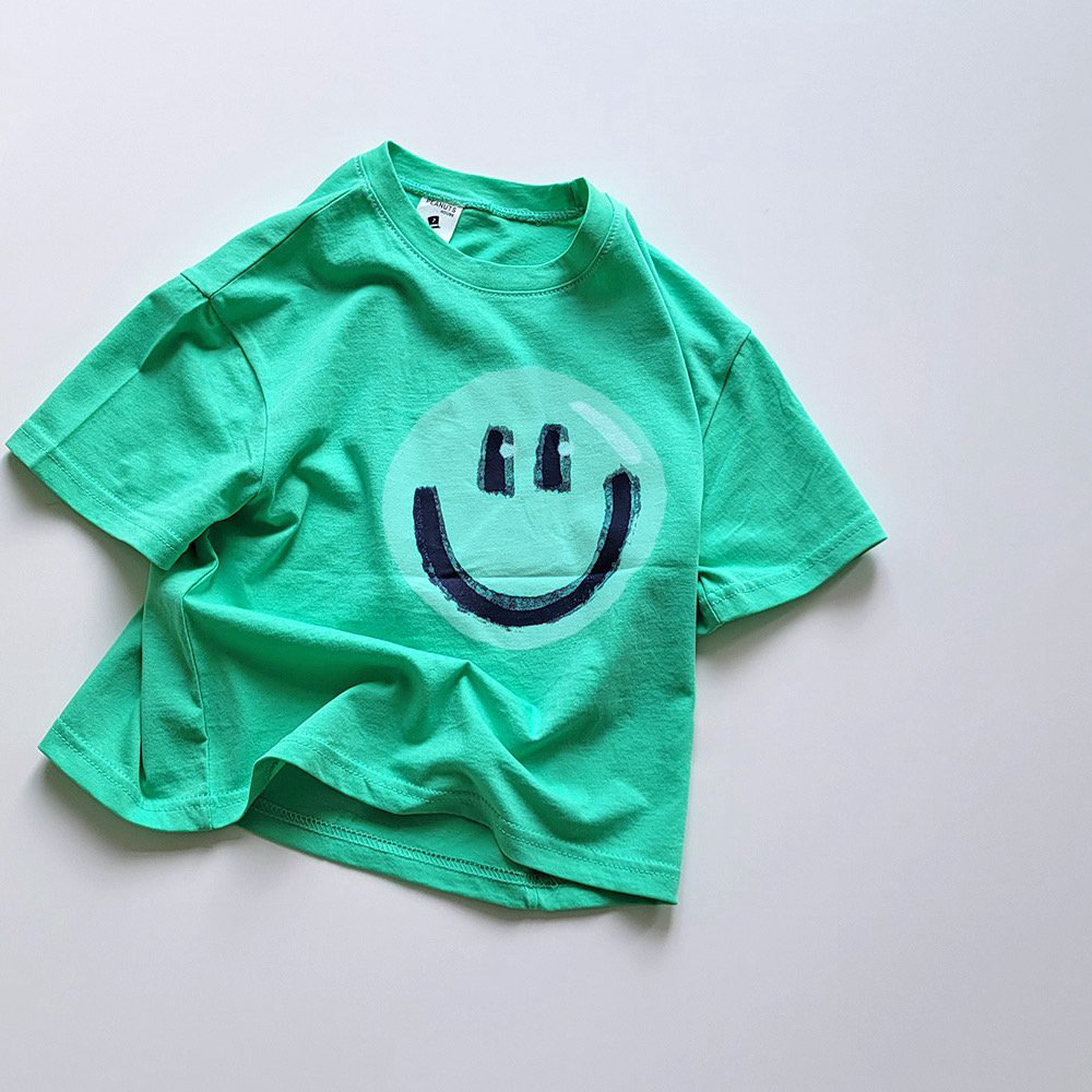 만화 한국 스타일 아동복 2024 새로운 여름 어린이 티셔츠 짧은 소매 소녀 느슨한 반소매 아기의 소년 탑스토어 가기