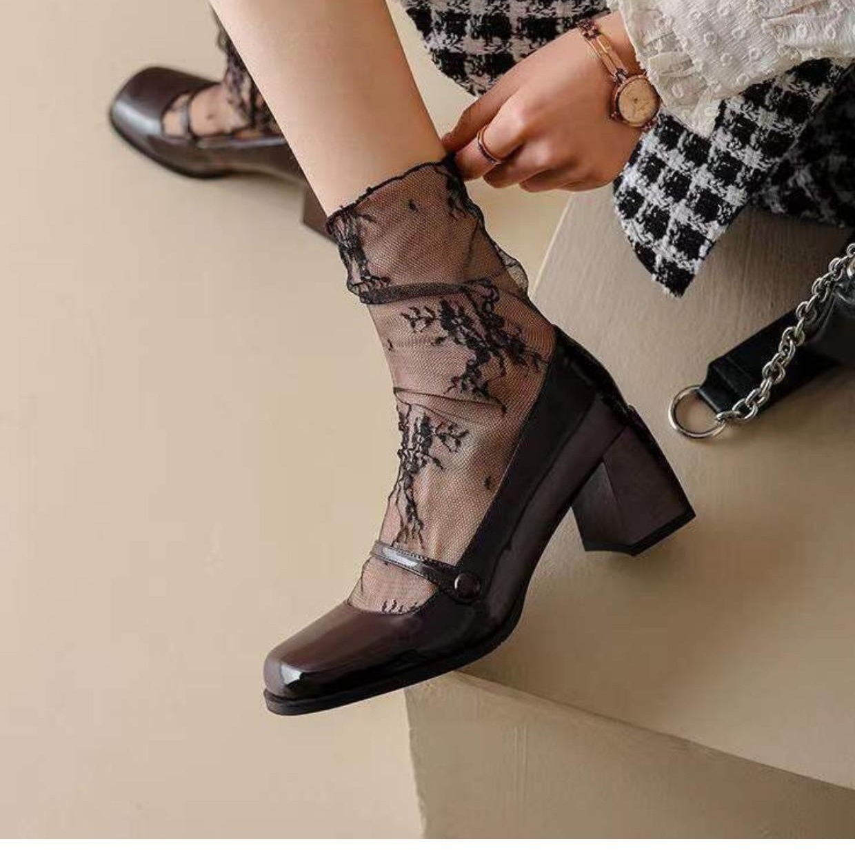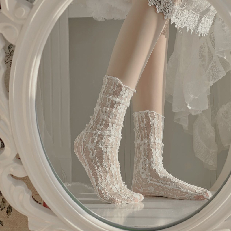 여름 얇은 일본 화이트 레이스 스타킹 여성 미드 튜브 스타킹 얇은 메쉬 레이스 메리 제인 귀여운 파일 양말스토어 가기
