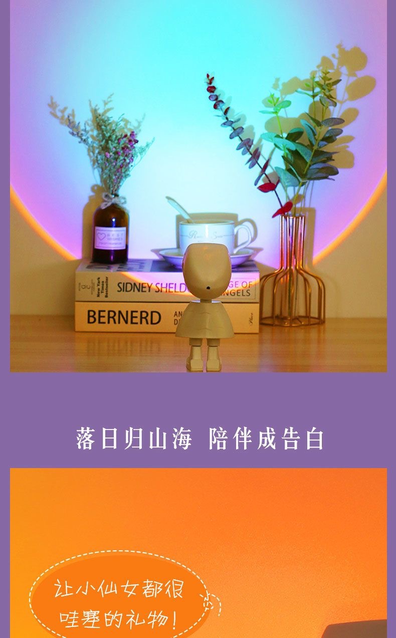 피터팬 칠색 일몰 무지개 램프 USB 침대 옆 침실 사진 촬영 프로젝션 분위기 야간등 실내용스토어 가기