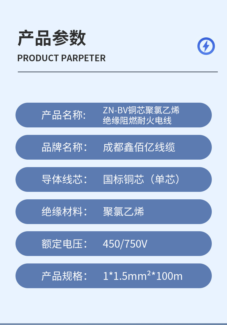 국가 표준 구리 코어 와이어 ZC-BVR1.5/2.5/4/6 사각형 난연 및 내화 단일 코어 멀티 스트랜드 전원 케이블