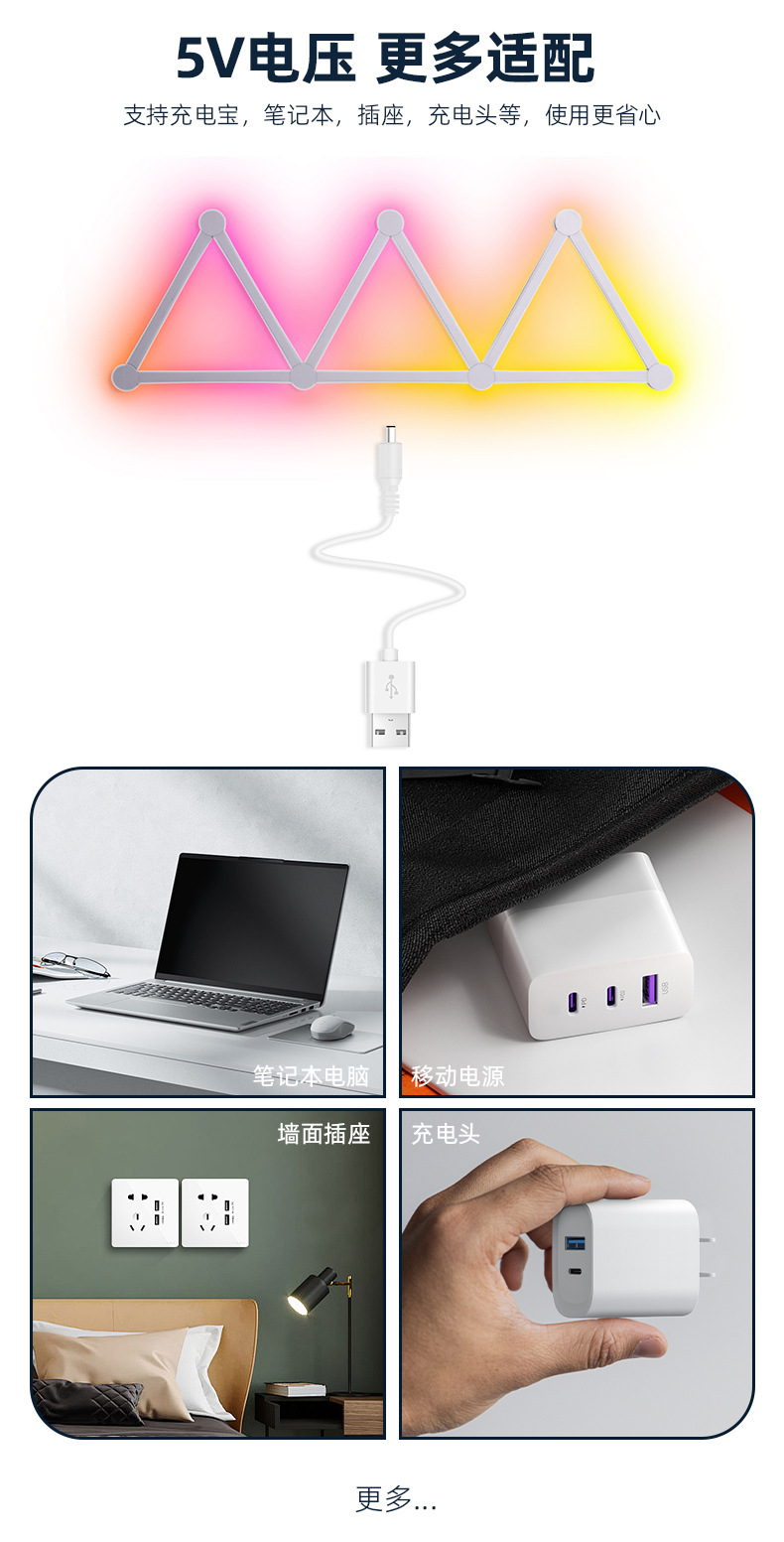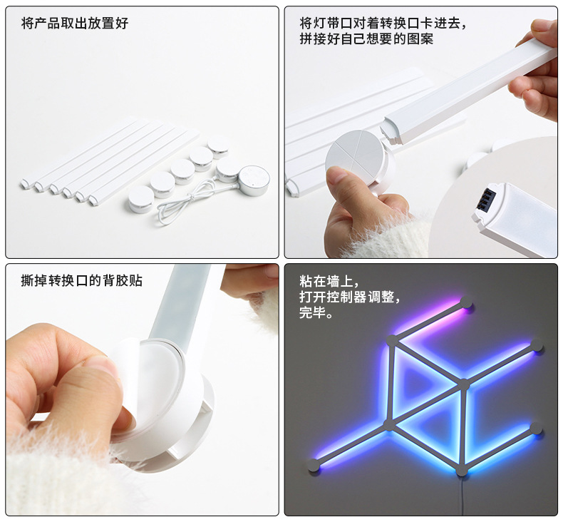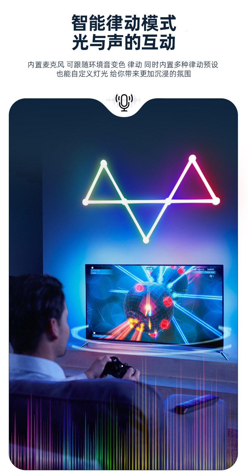 2024년 신형 분위기 조명 5V 블루투스 연결 다채로운 벽 조명, 연결이 쉬운 다이나믹 RGB 장식 조명스토어 가기