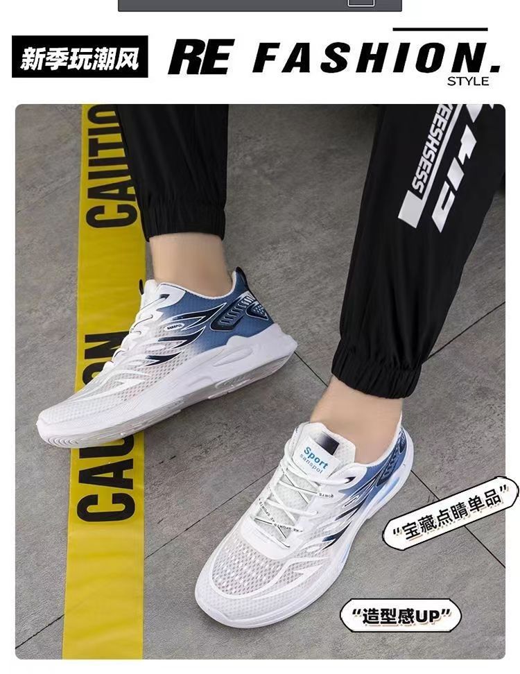 남성 신발 2024 새로운 패션 트렌드 메쉬 통기성 스포츠 캐주얼 신발 학생 부드러운 바닥 편안한 운동화스토어 가기