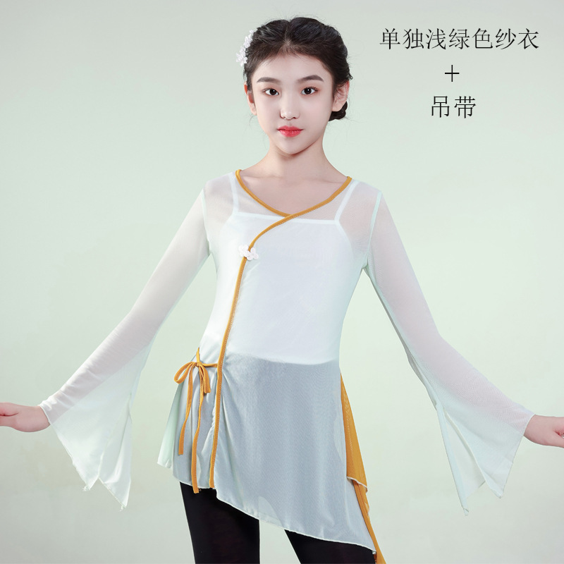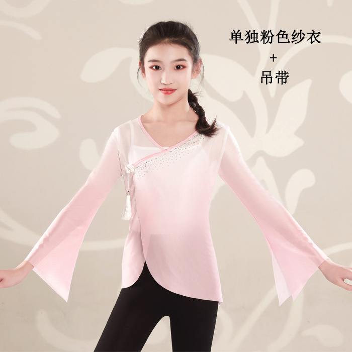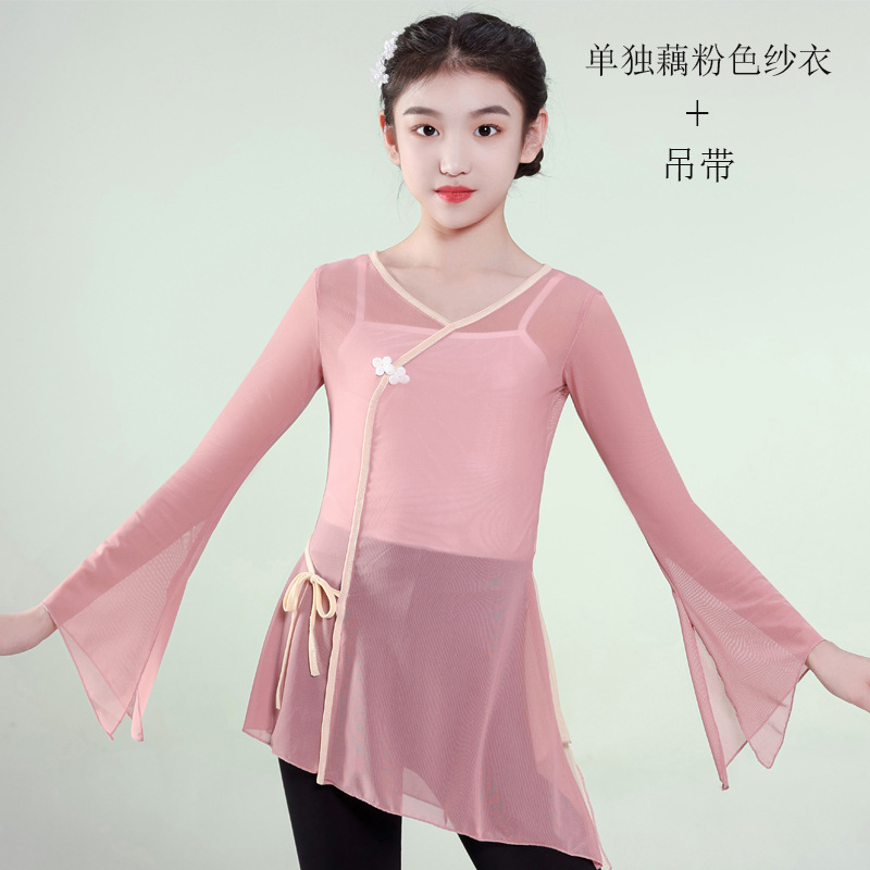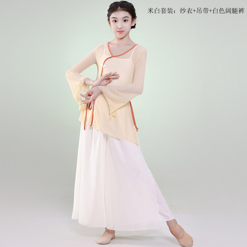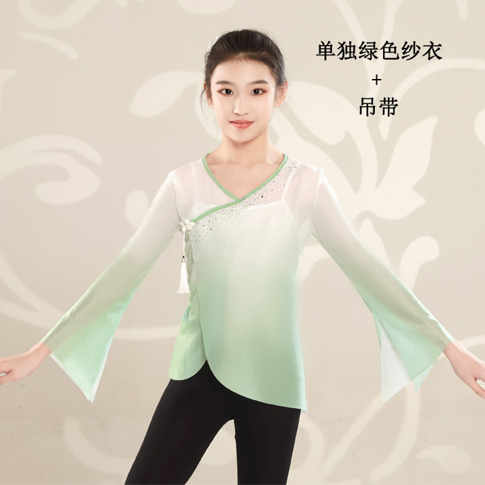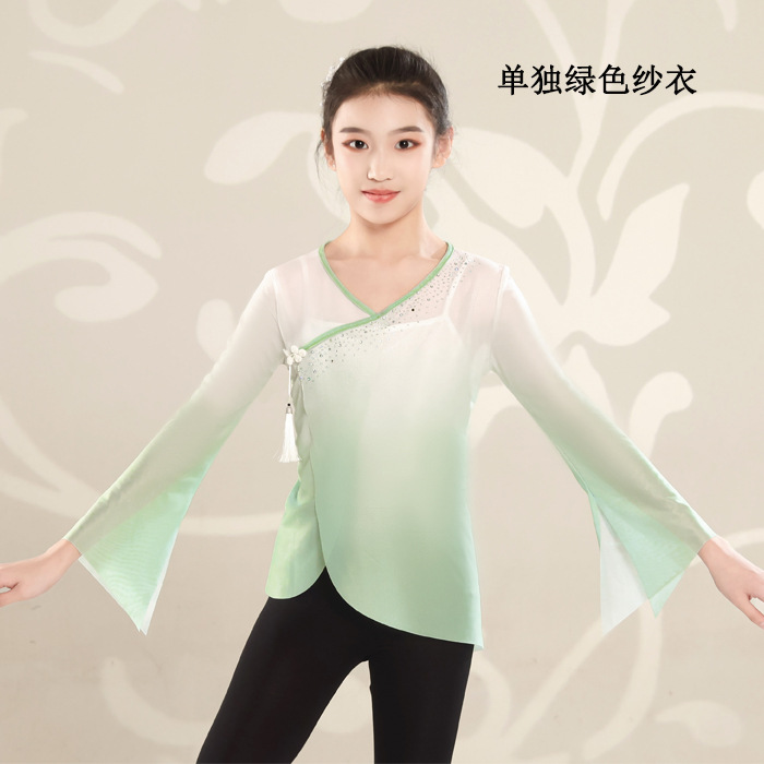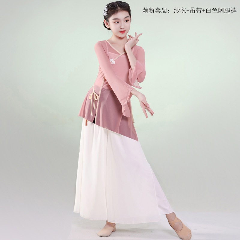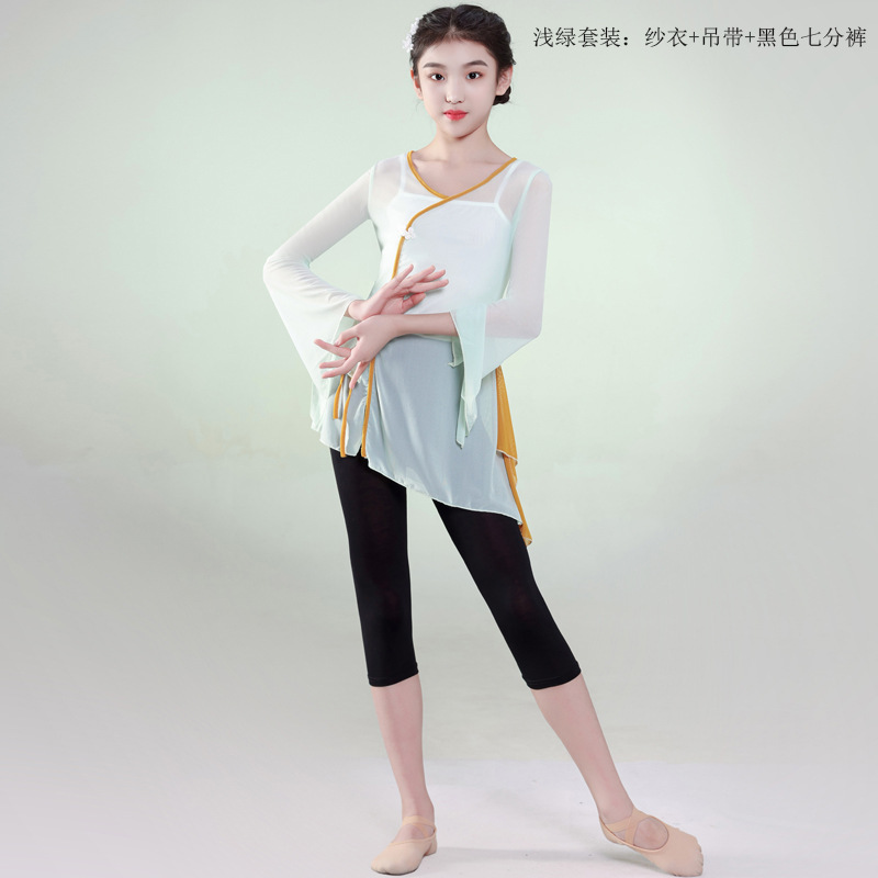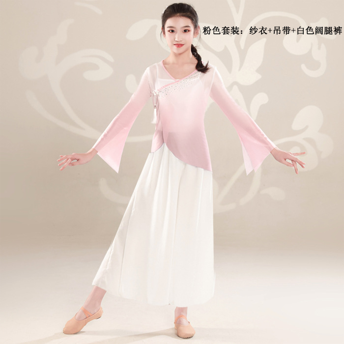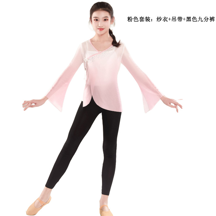 어린이 클래식 댄스 코트 교육 세트 우아한 라임 걸스 중국 댄스 공연 세트 보라색 댄스 세트 자른 바지