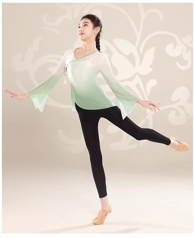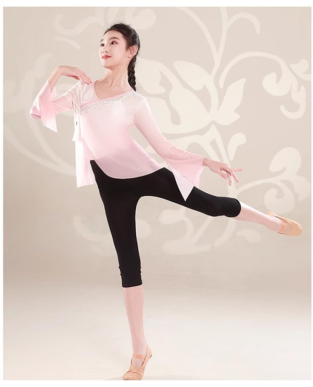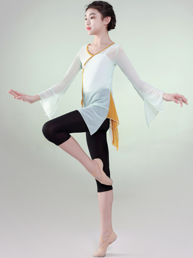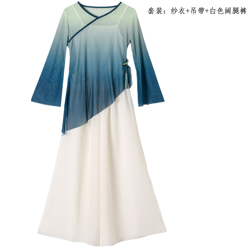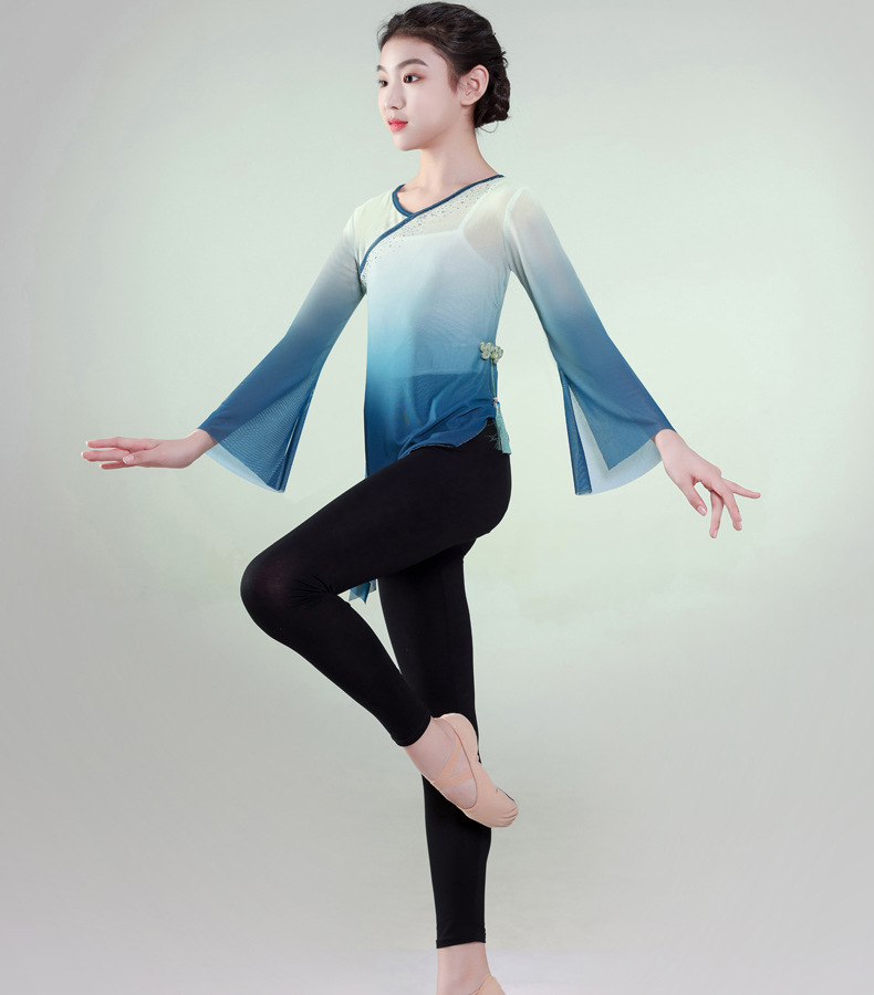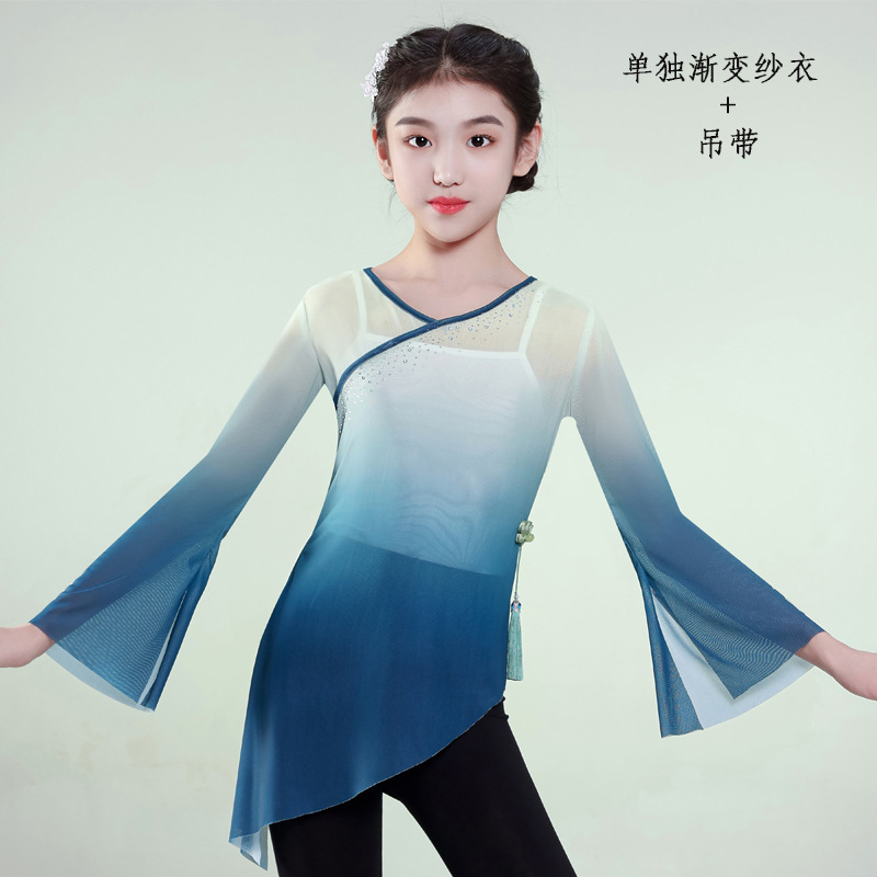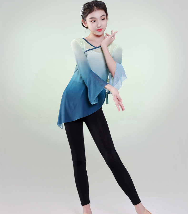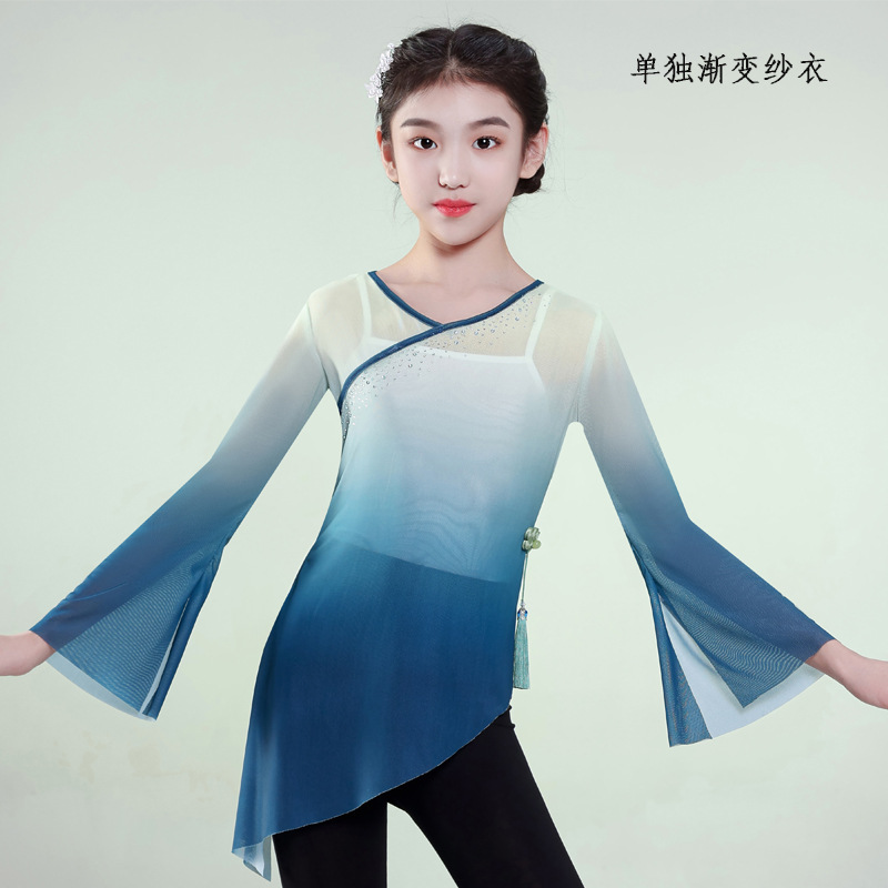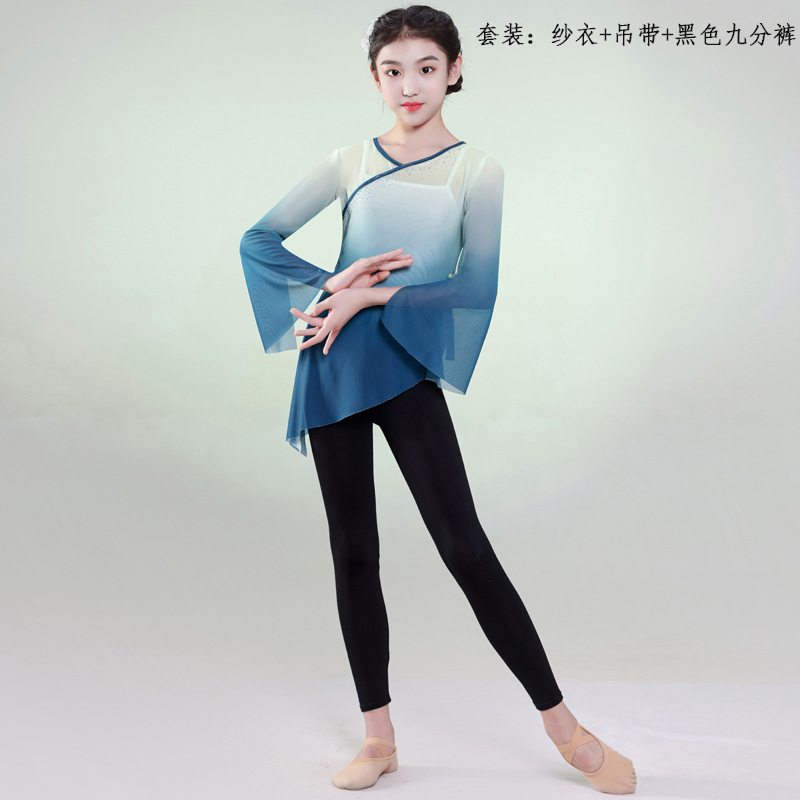 어린이 클래식 댄스 코트 교육 세트 우아한 라임 걸스 중국 댄스 공연 세트 보라색 댄스 세트 자른 바지