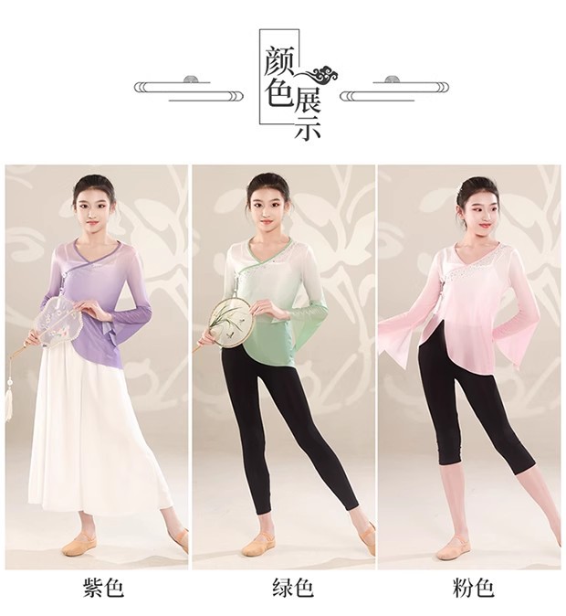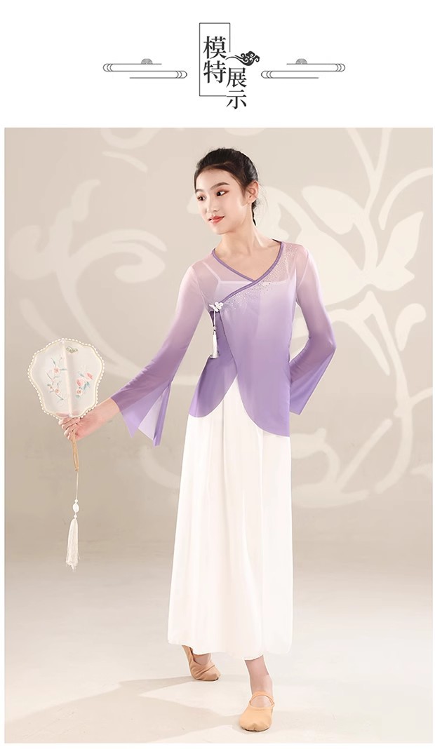 어린이 클래식 댄스 코트 교육 세트 우아한 라임 걸스 중국 댄스 공연 세트 보라색 댄스 세트 자른 바지스토어 가기