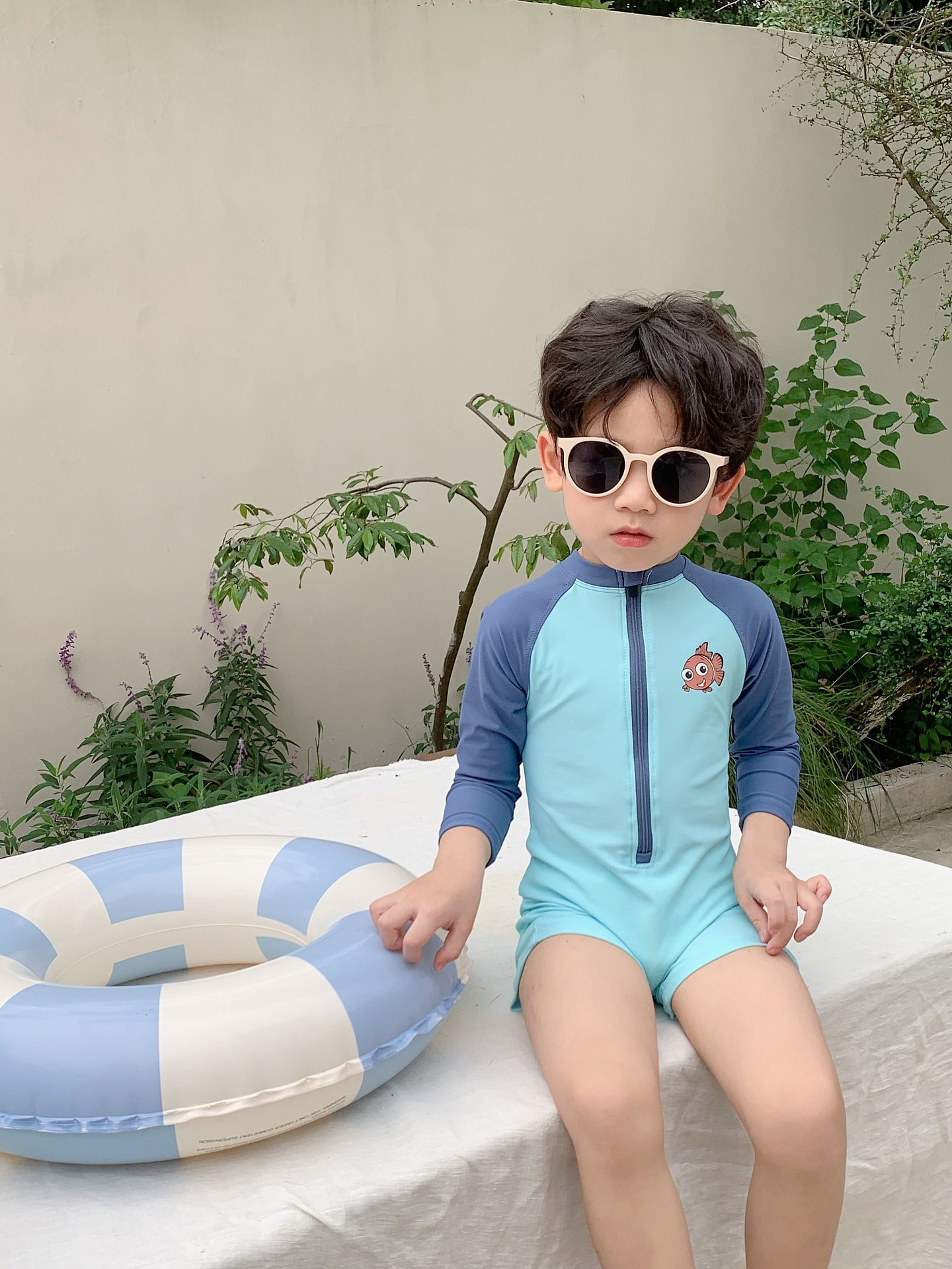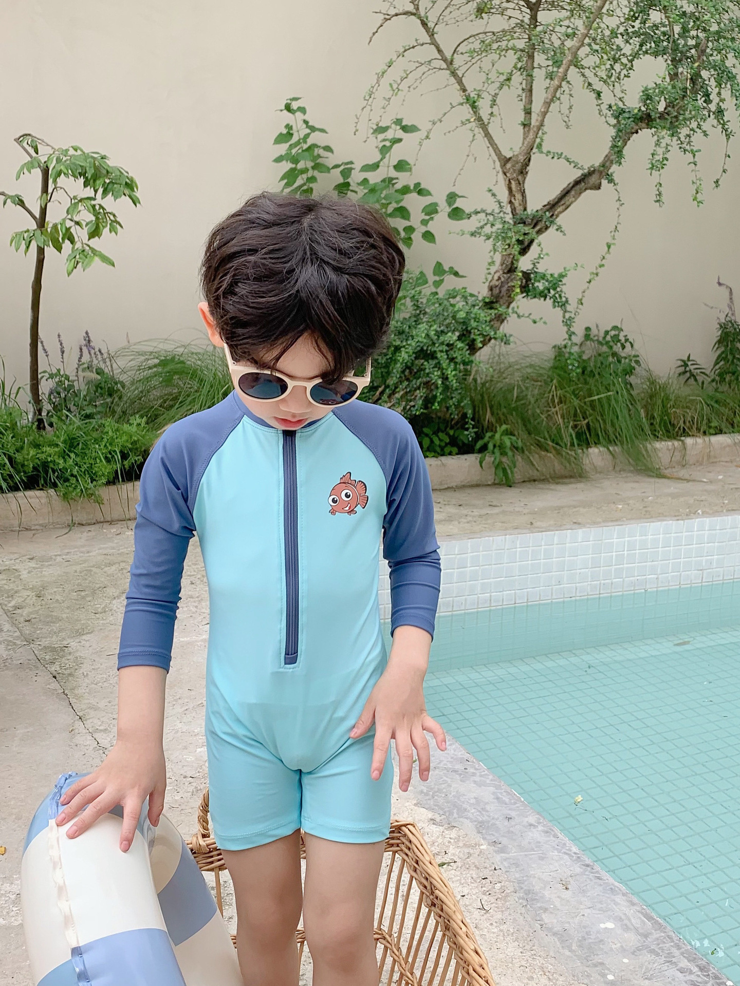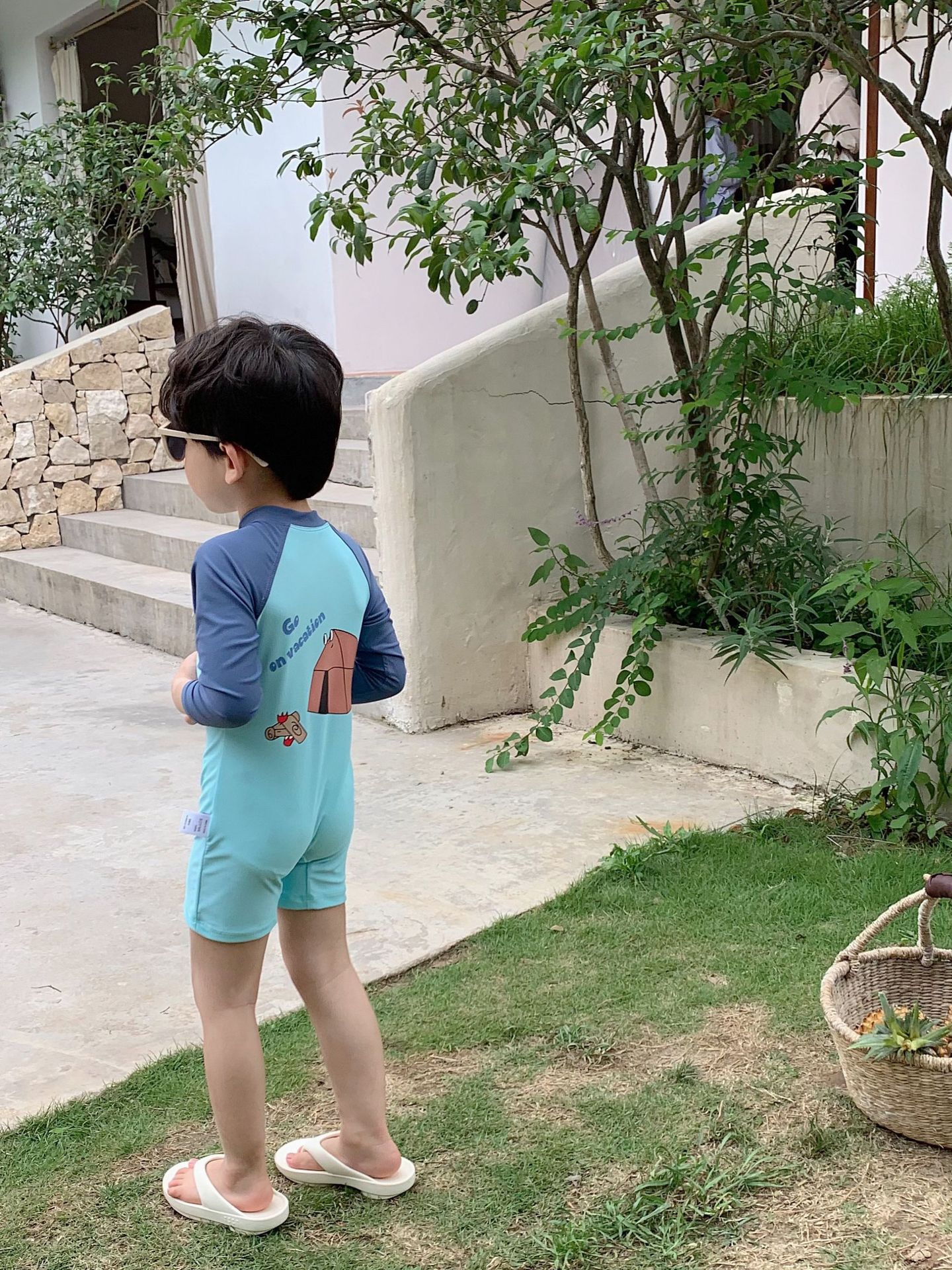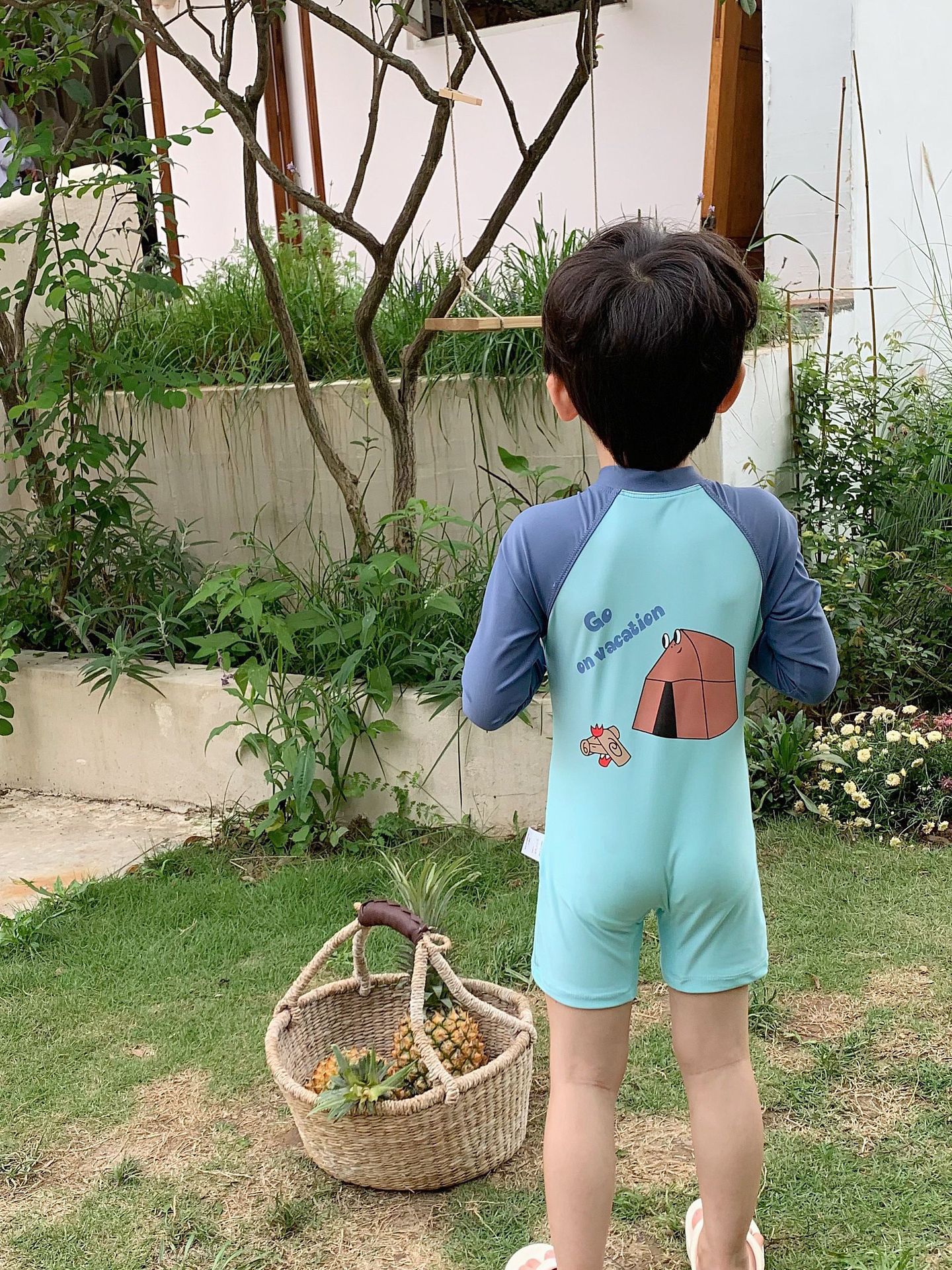 2024 어린이 수영복 소년의 긴 소매 수영복 만화 귀여운 태양 보호 아기 수영복 빅 보이 비치스토어 가기