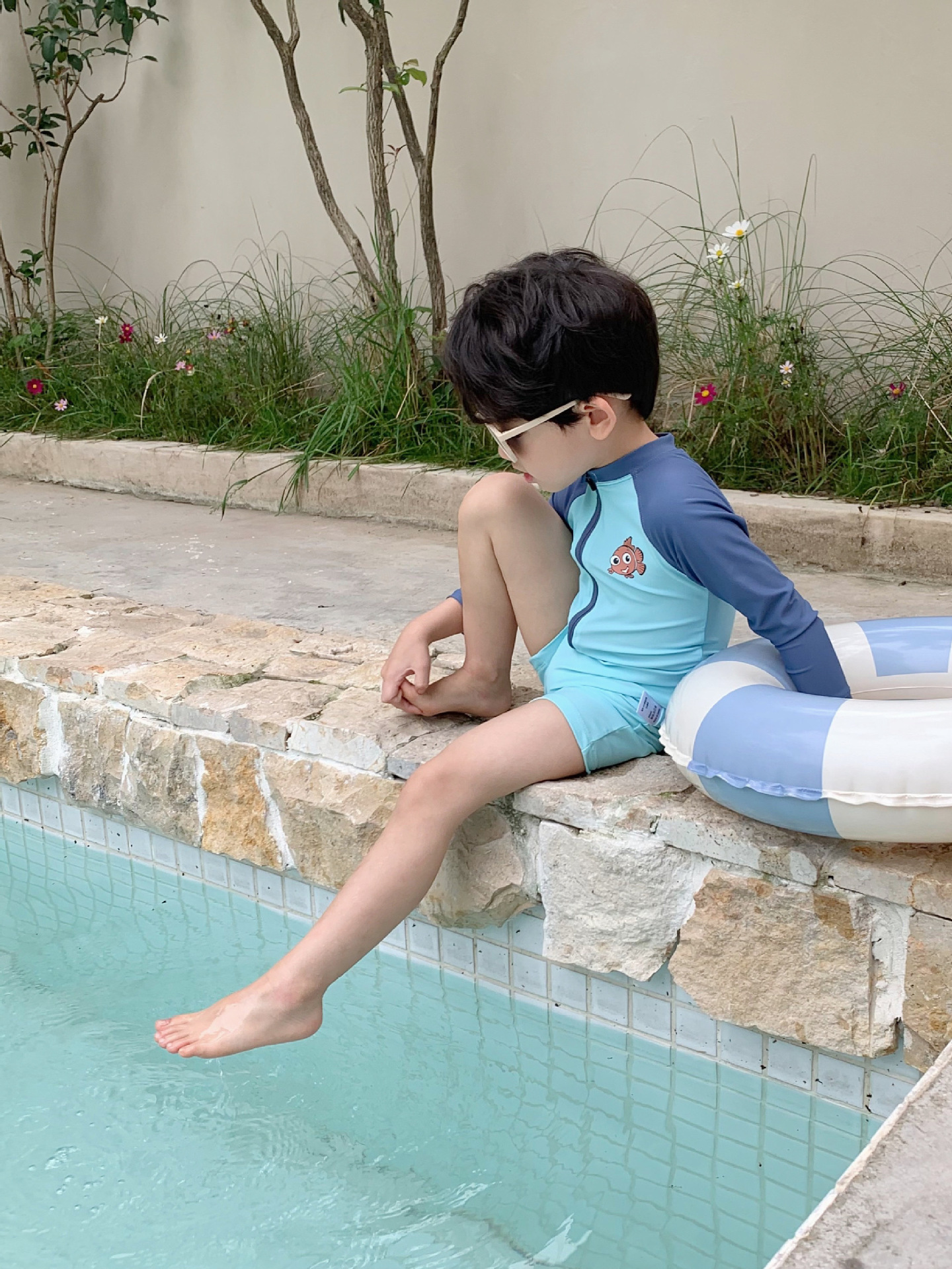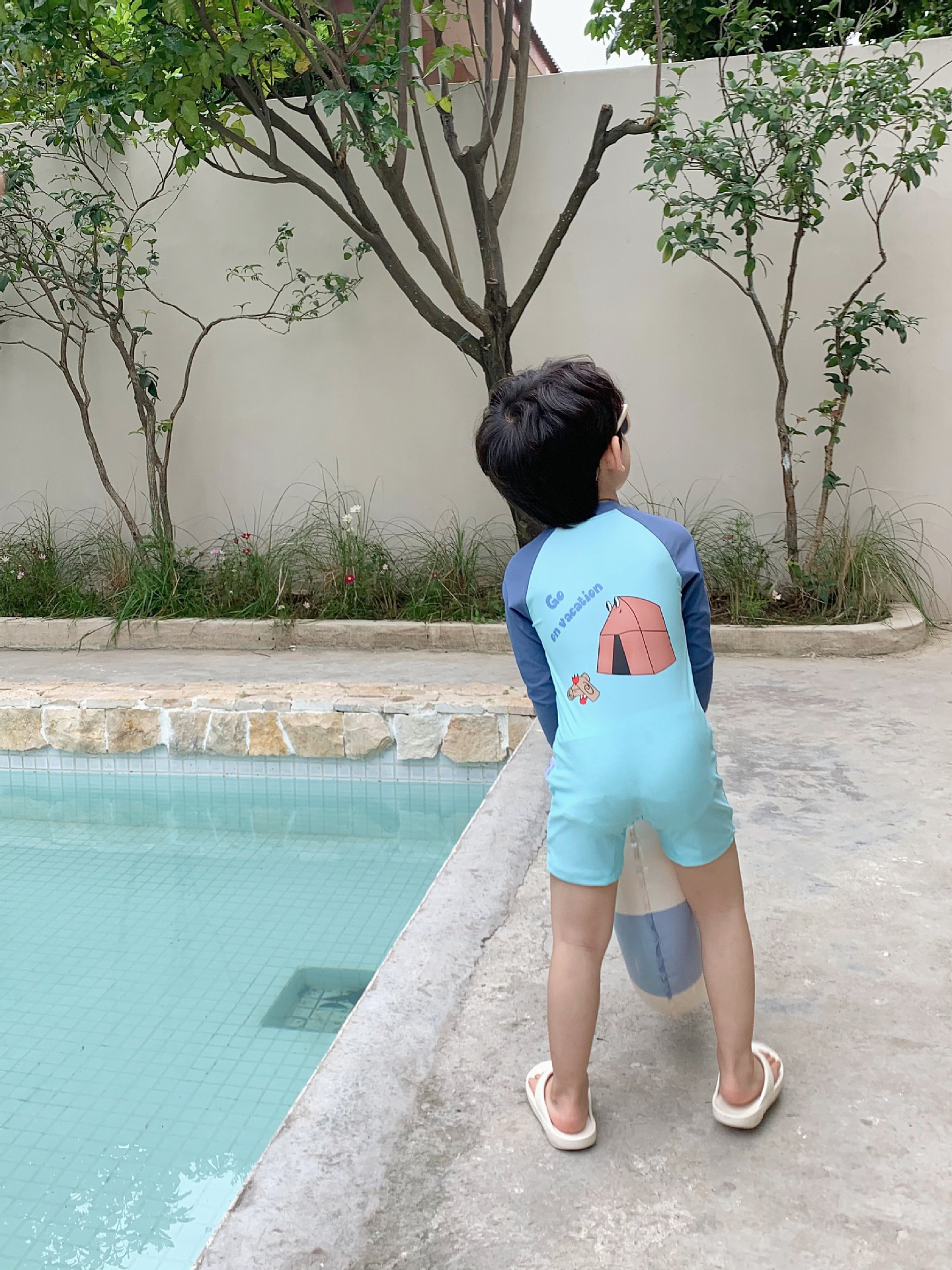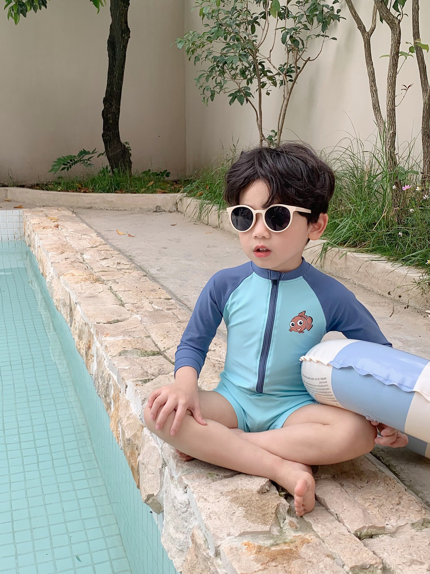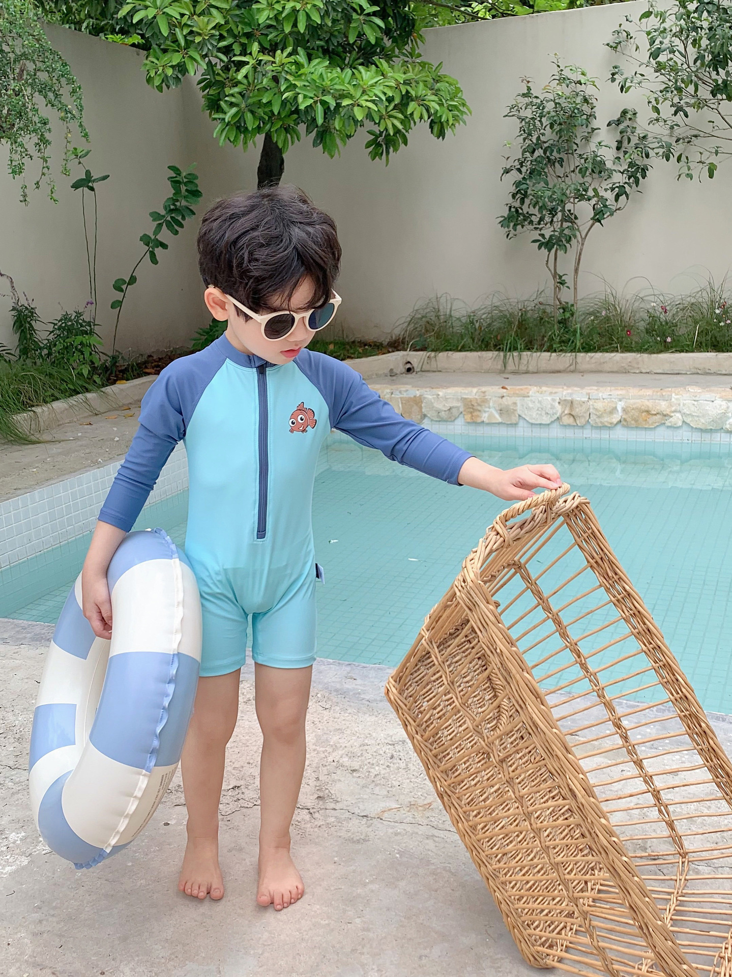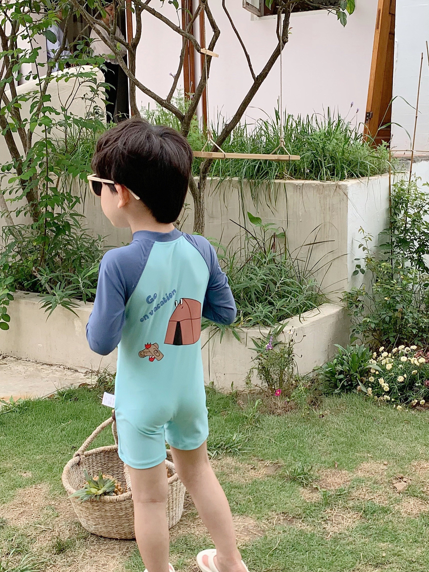 2024 어린이 수영복 소년의 긴 소매 수영복 만화 귀여운 태양 보호 아기 수영복 빅 보이 비치스토어 가기