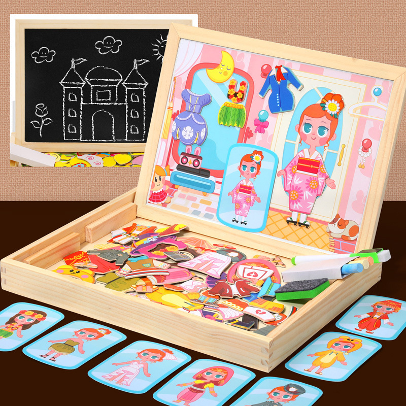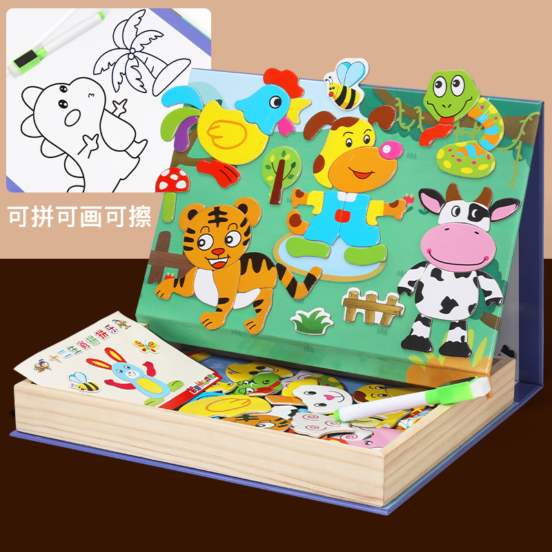 어린이 장난감 나무 자기 퍼즐 퍼즐 동물 퍼즐 양면 자기 드로잉 보드 어린이 퍼즐 퍼즐스토어 가기