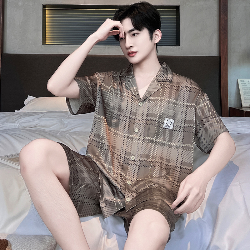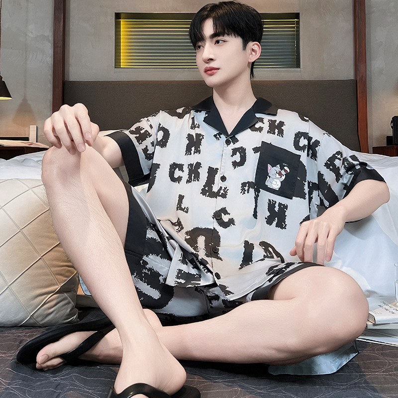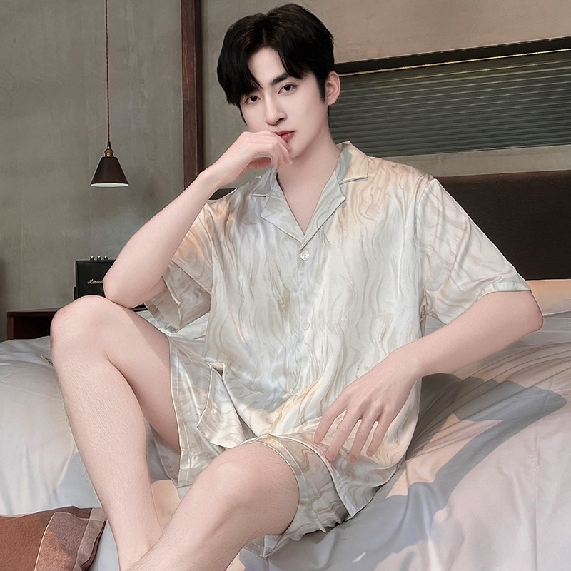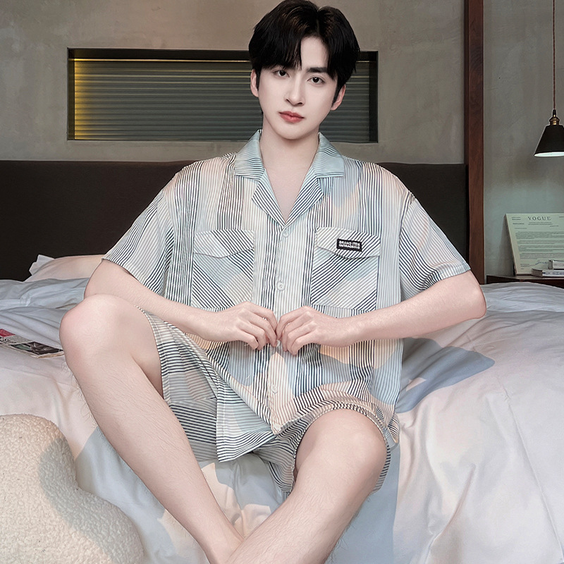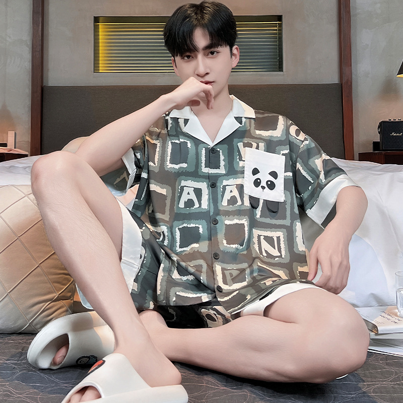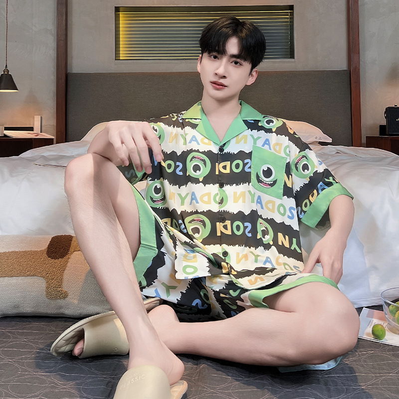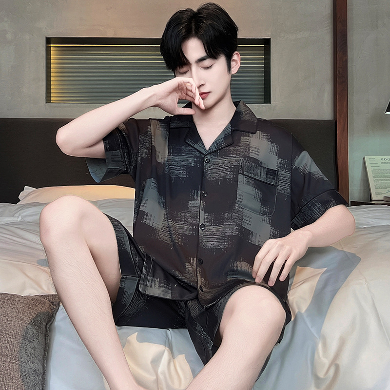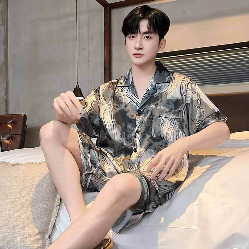 2026년 신상 남성용 여름 잠옷, 아이스 실크 스타일 반팔 반바지, 캐주얼 남성 잠옷, 여름철 집 밖에서 입을 수 있는 홈웨어스토어 가기
