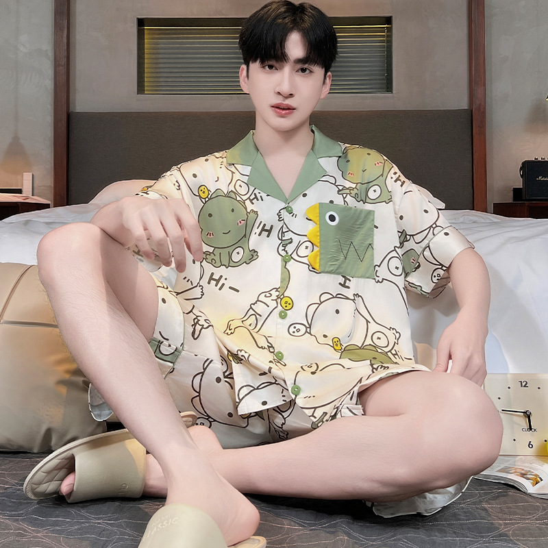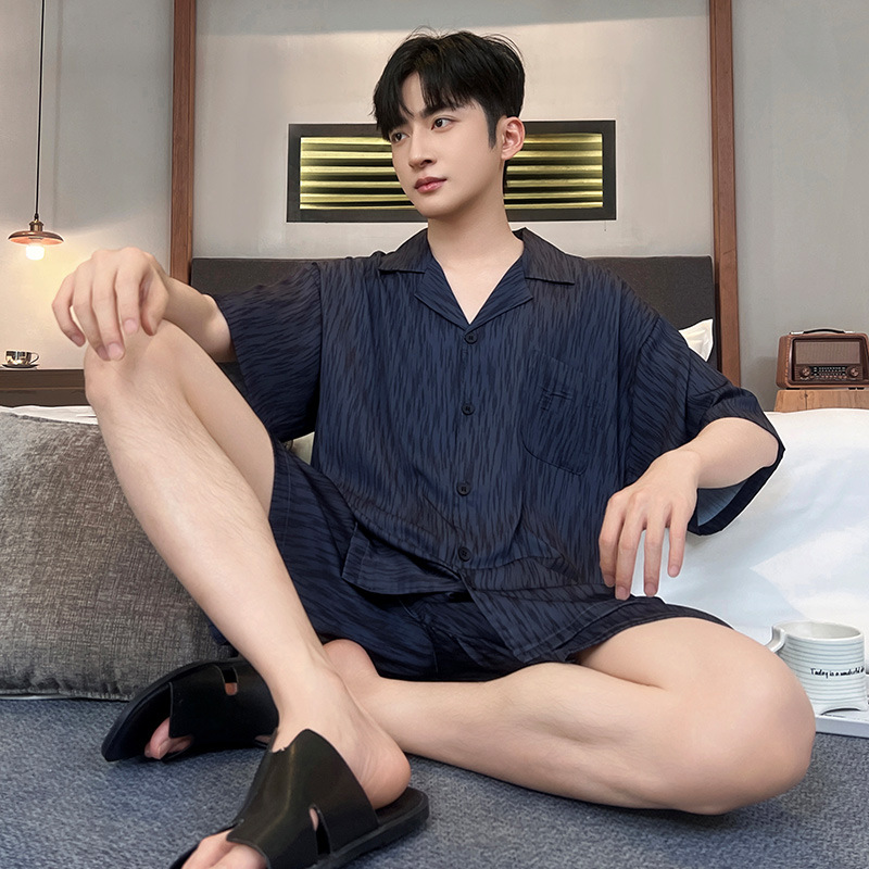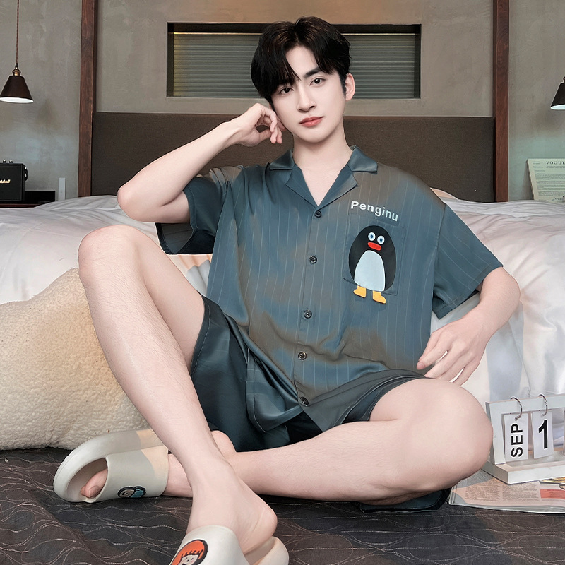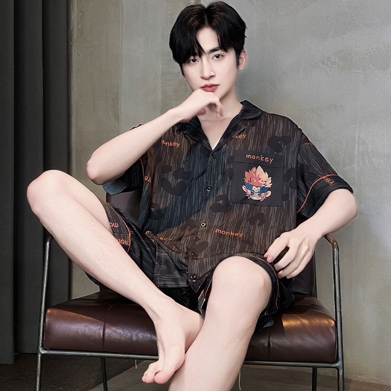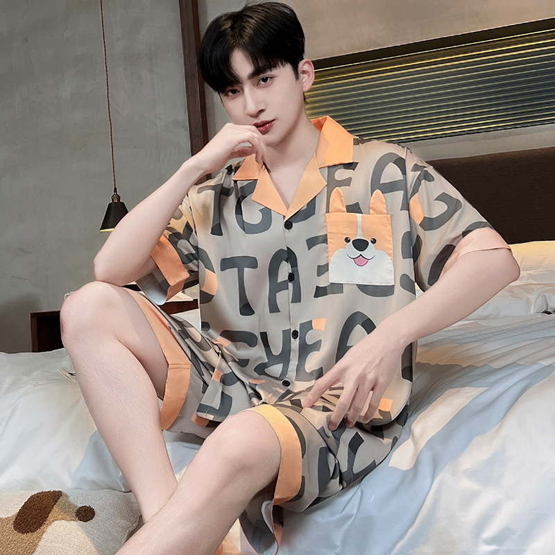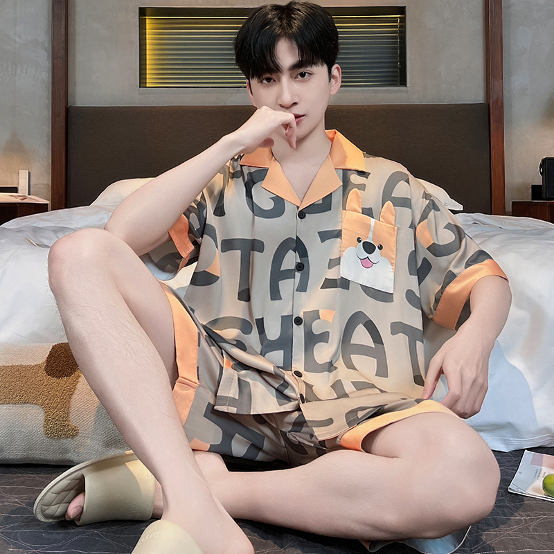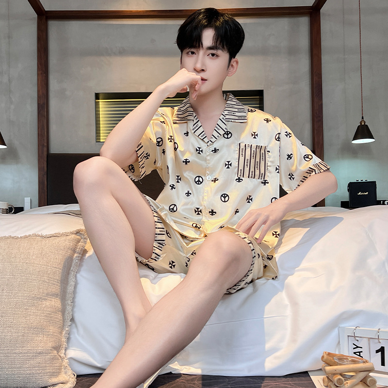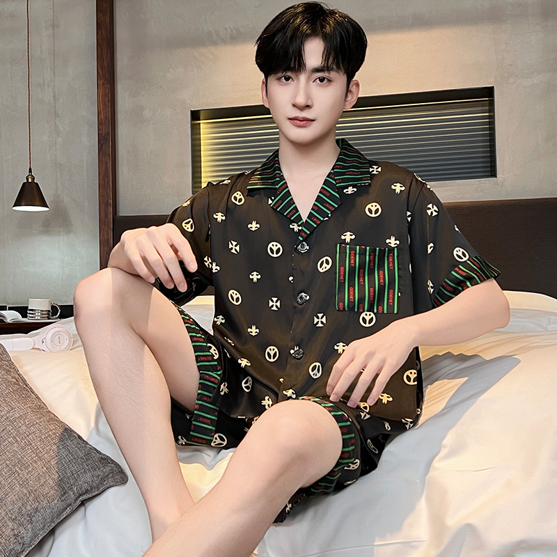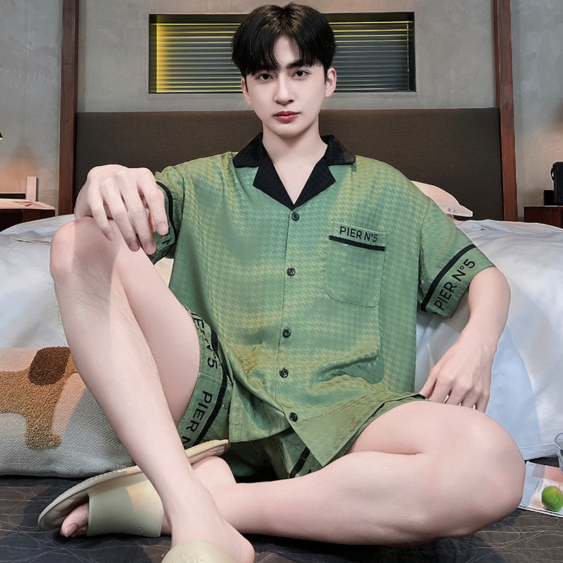 2026년 신상 남성용 여름 잠옷, 아이스 실크 스타일 반팔 반바지, 캐주얼 남성 잠옷, 여름철 집 밖에서 입을 수 있는 홈웨어스토어 가기