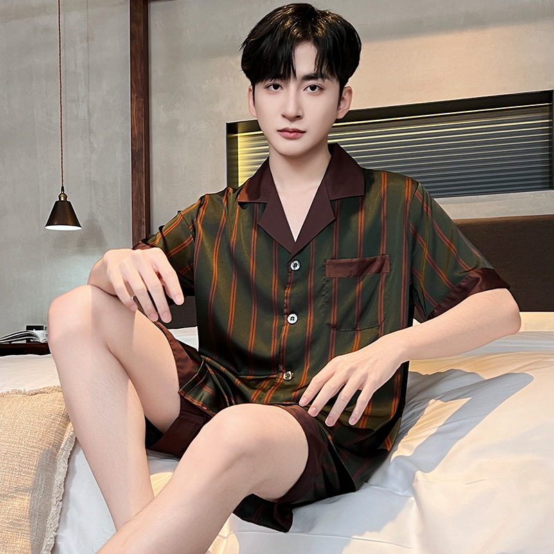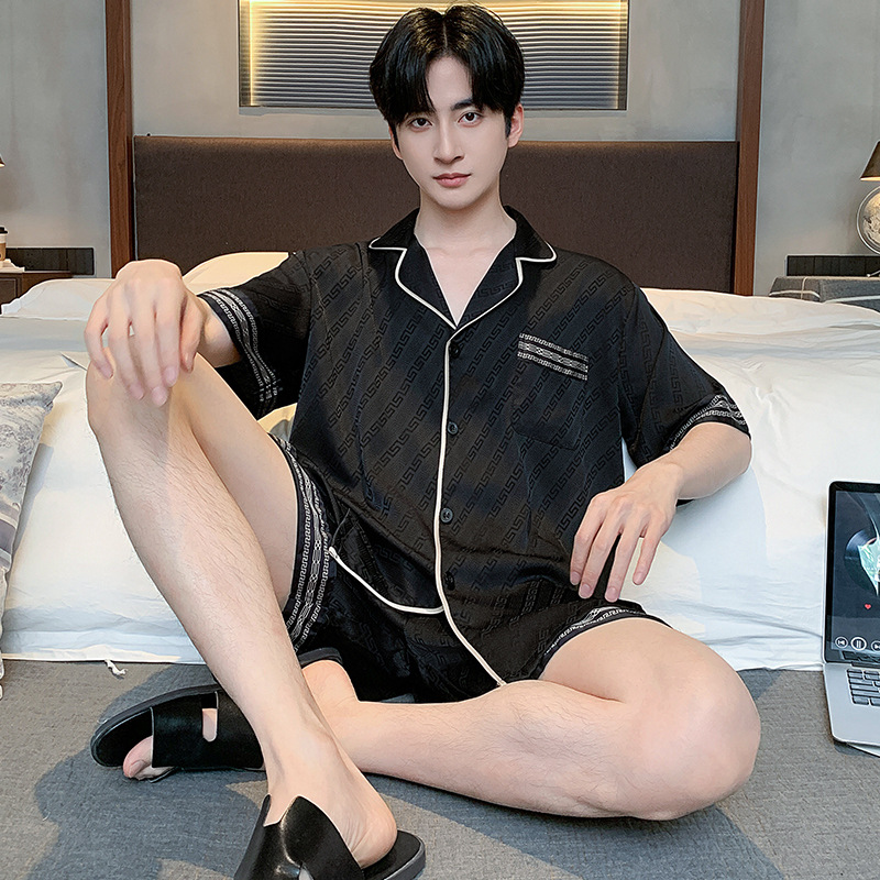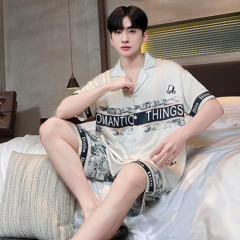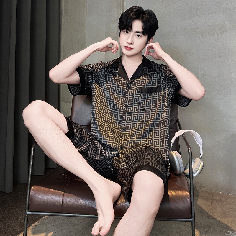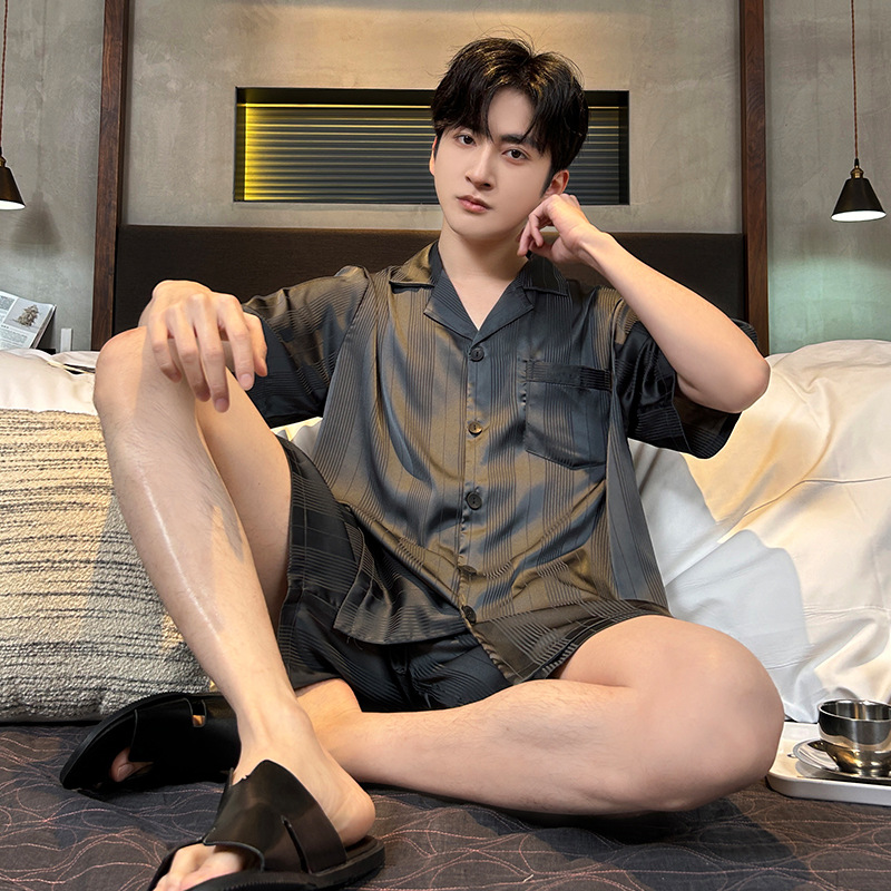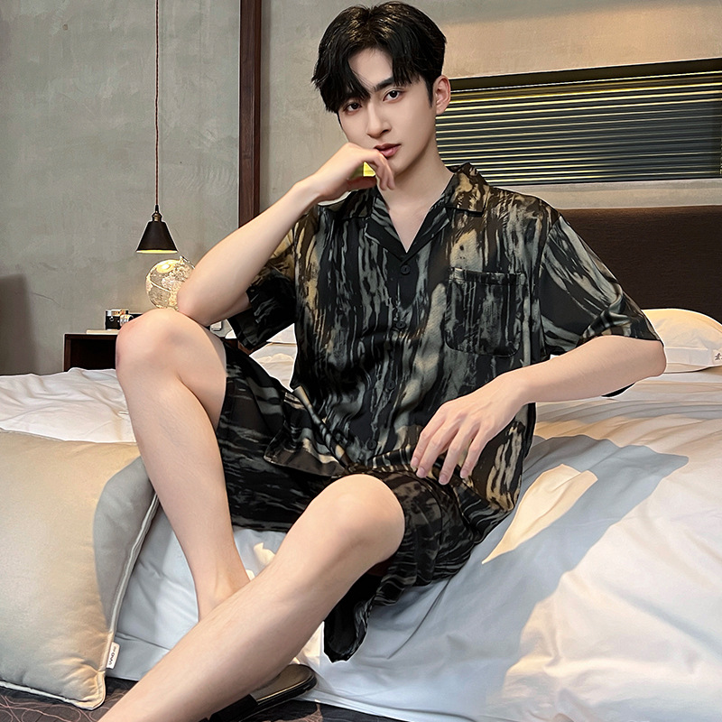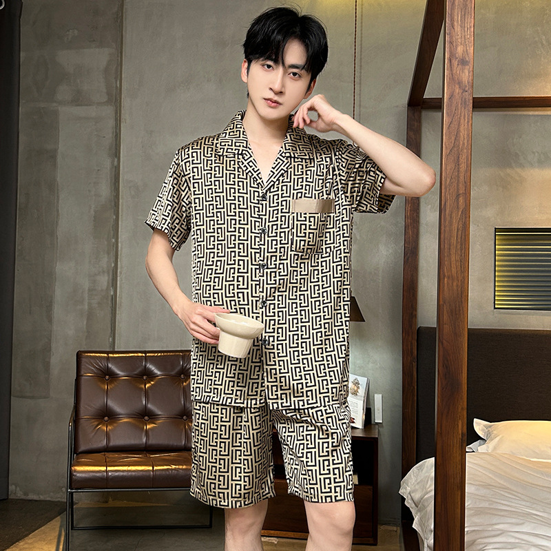 2026년 신상 남성용 여름 잠옷, 아이스 실크 스타일 반팔 반바지, 캐주얼 남성 잠옷, 여름철 집 밖에서 입을 수 있는 홈웨어