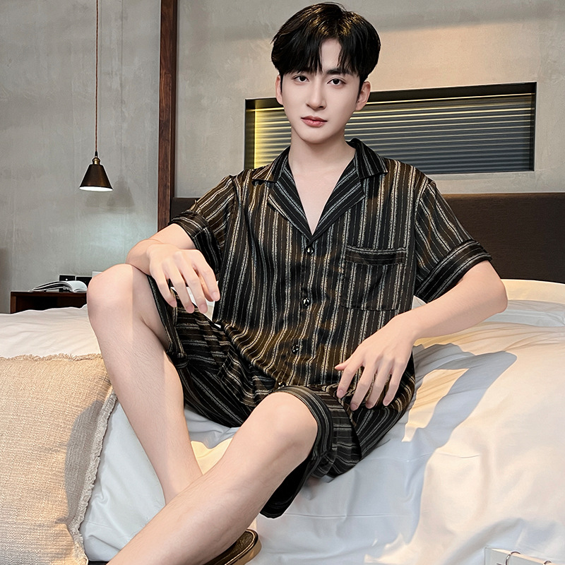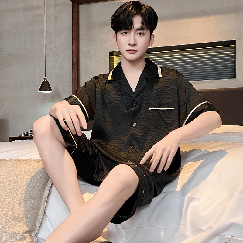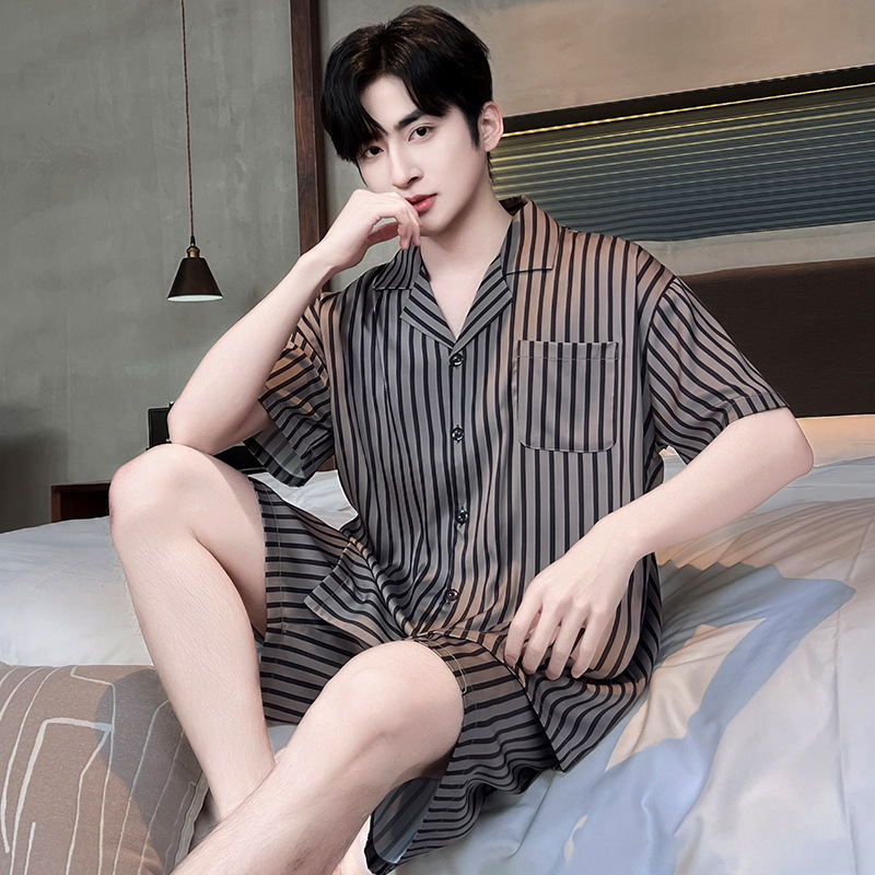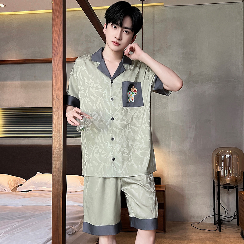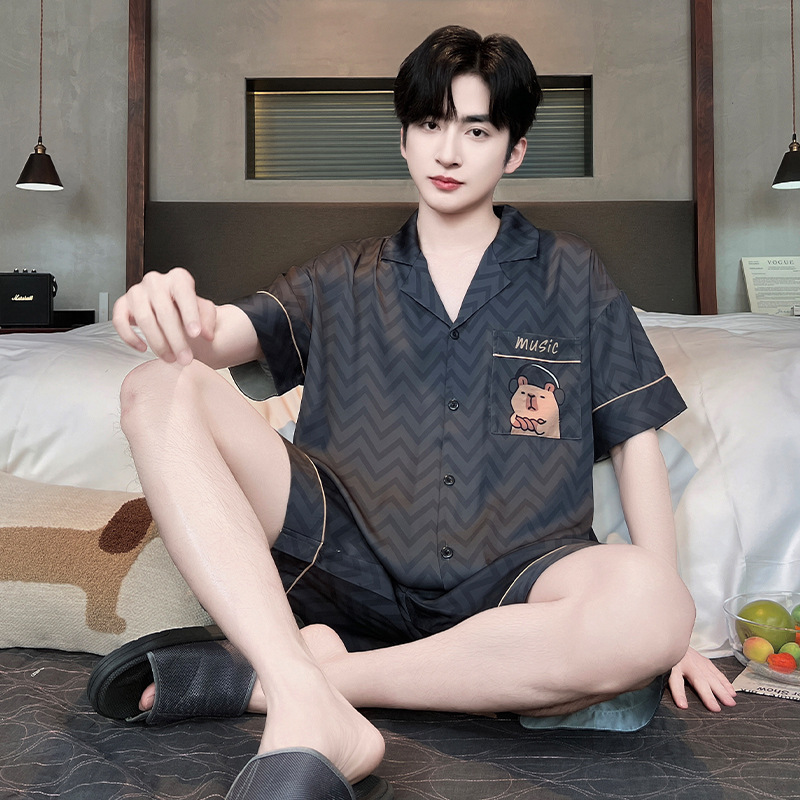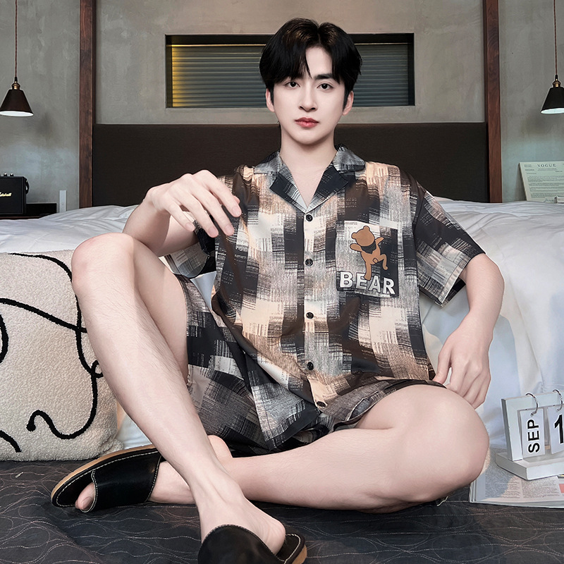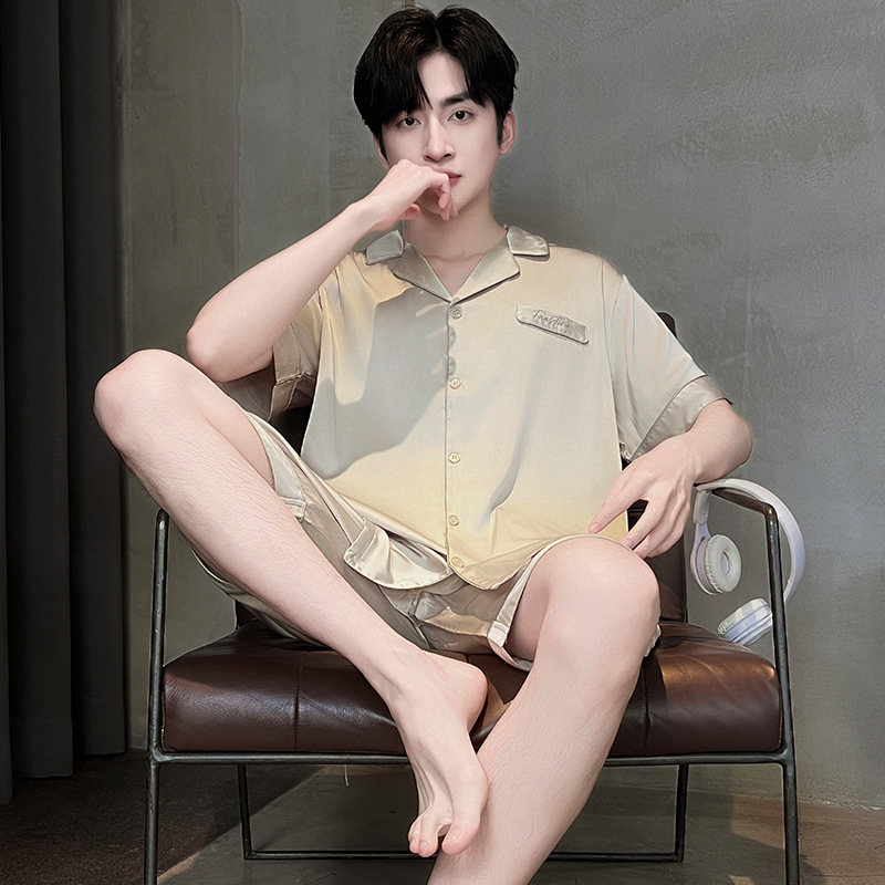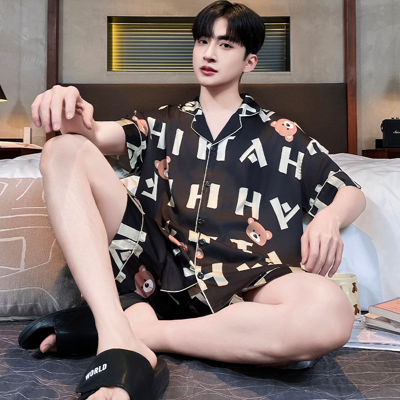 2026년 신상 남성용 여름 잠옷, 아이스 실크 스타일 반팔 반바지, 캐주얼 남성 잠옷, 여름철 집 밖에서 입을 수 있는 홈웨어