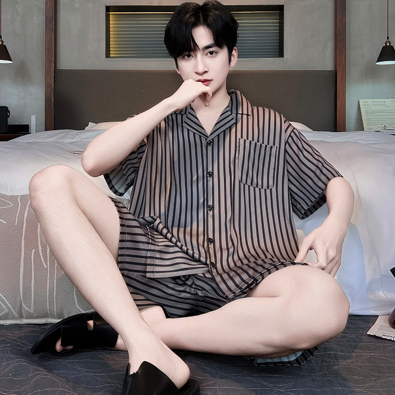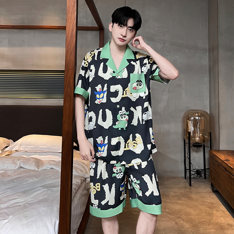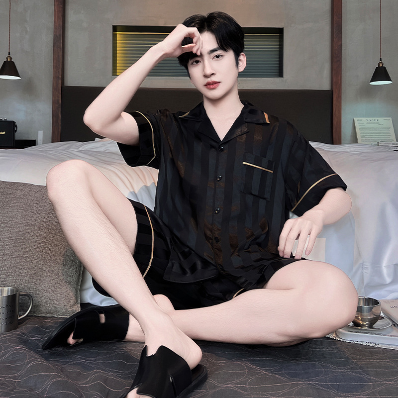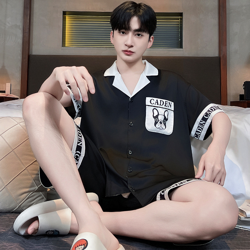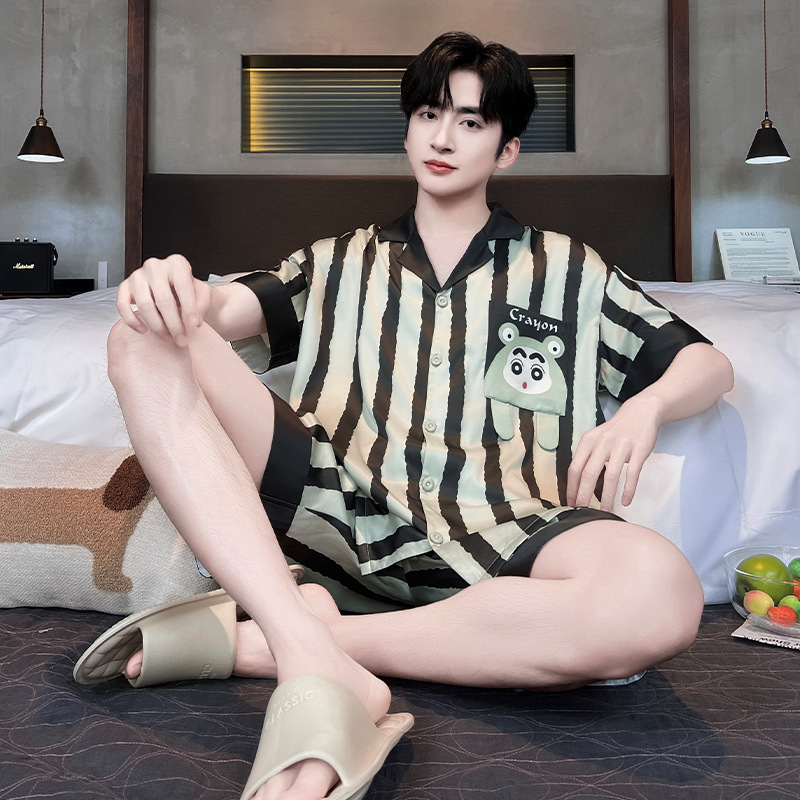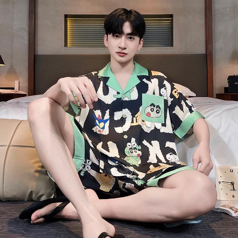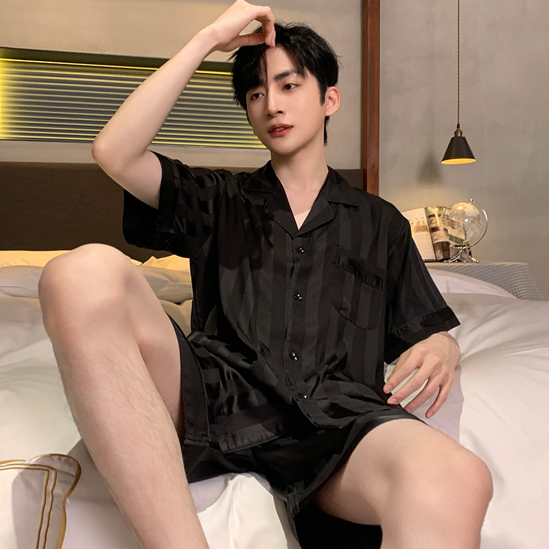 2026년 신상 남성용 여름 잠옷, 아이스 실크 스타일 반팔 반바지, 캐주얼 남성 잠옷, 여름철 집 밖에서 입을 수 있는 홈웨어