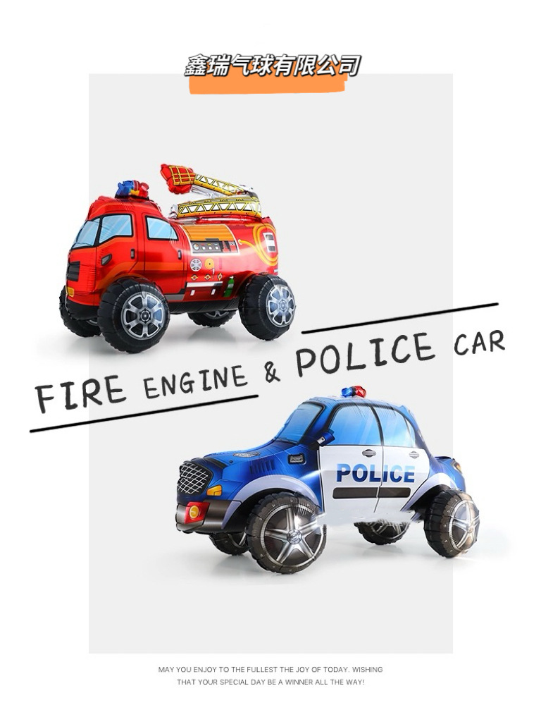 만화 경찰 자동차 구급차 소방차 알루미늄 필름 풍선 어린이 생일 파티 장면 장식 차량 풍선스토어 가기