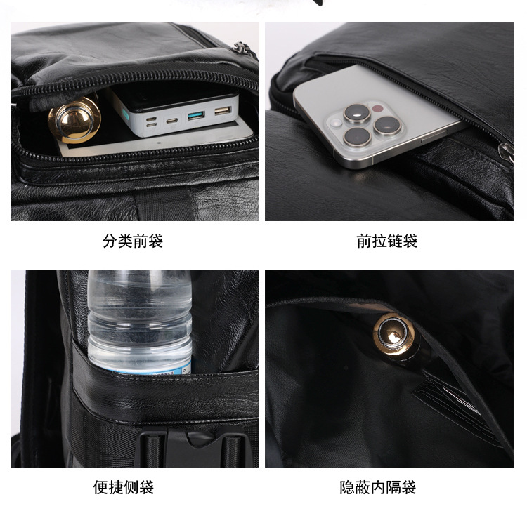 대용량 PU 노트북 가방 사업 통근 솔리드 컬러 남성 배낭 새로운 스티칭 여행 어깨 가방
