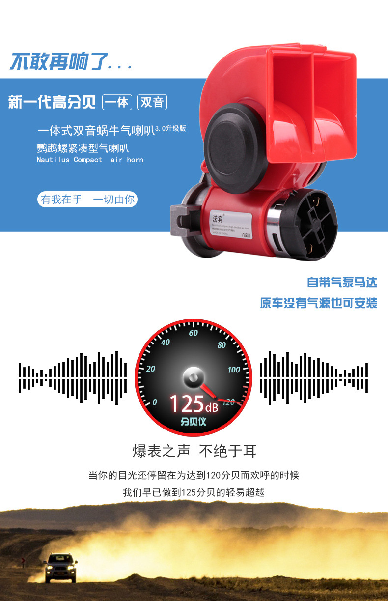 국경 간 소스 파빈 달팽이 전기 경적 자동차 휘파람 트럭 트럭 보편적 인 휘파람 12v/24v스토어 가기