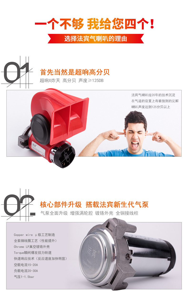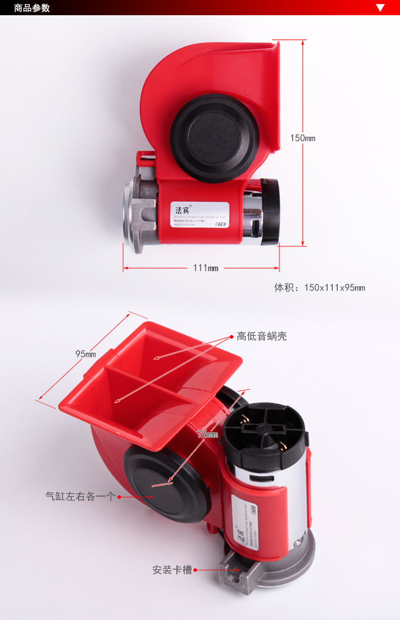 • 파빈 달팽이 에어 혼 레드 12v (하네스 없음)
