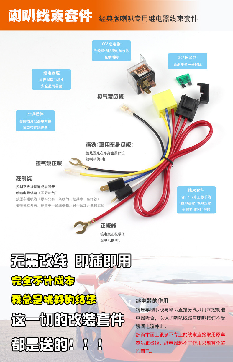 蜗牛气喇叭+继电器线束 11.8x10x15.8 0.85 52.5x25x36 17.75 20