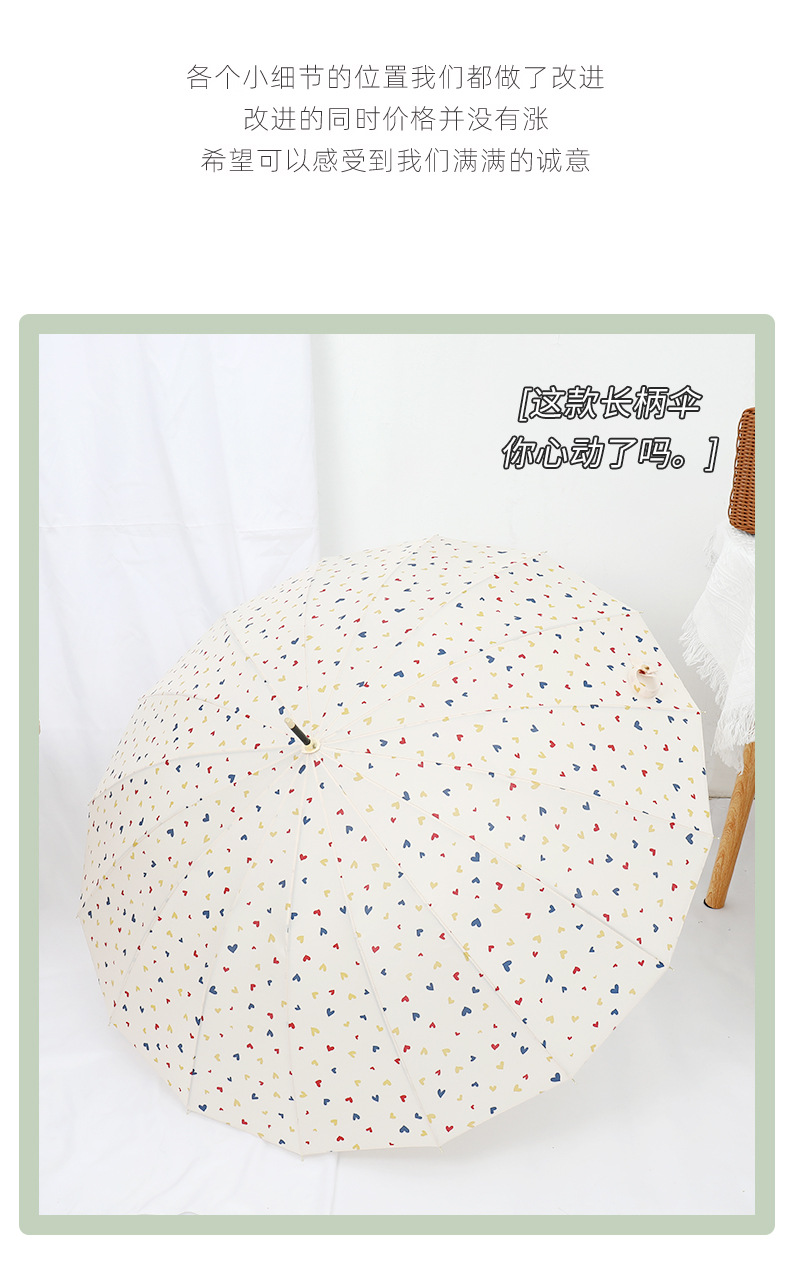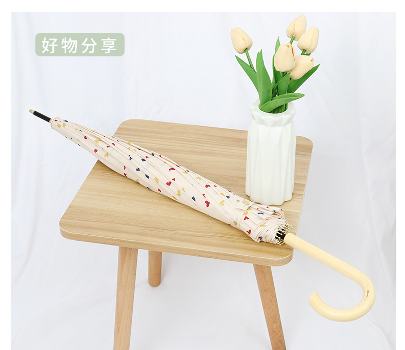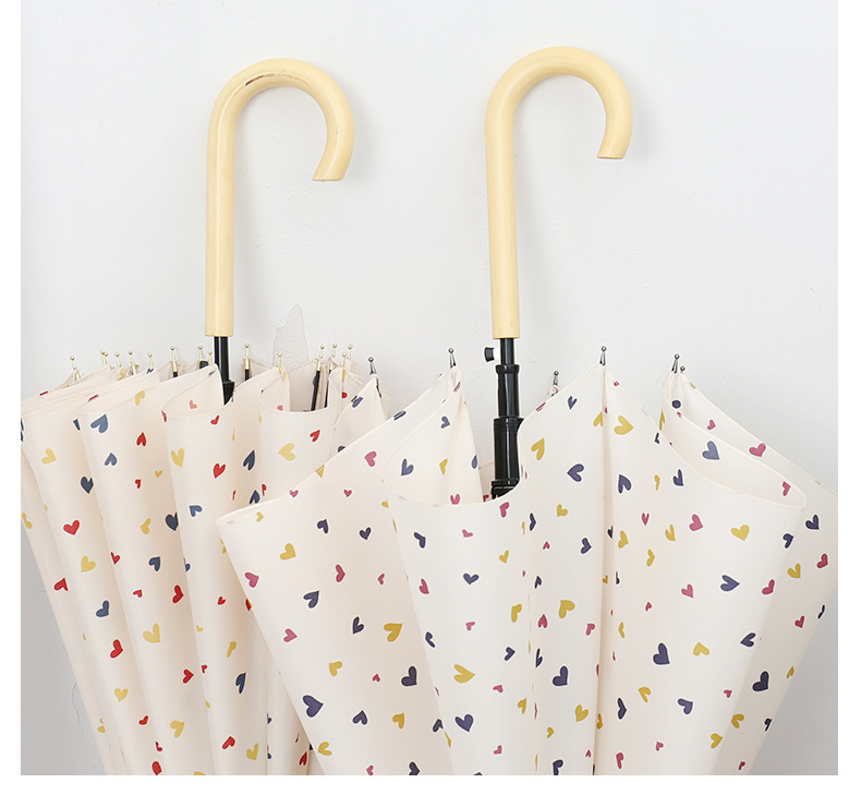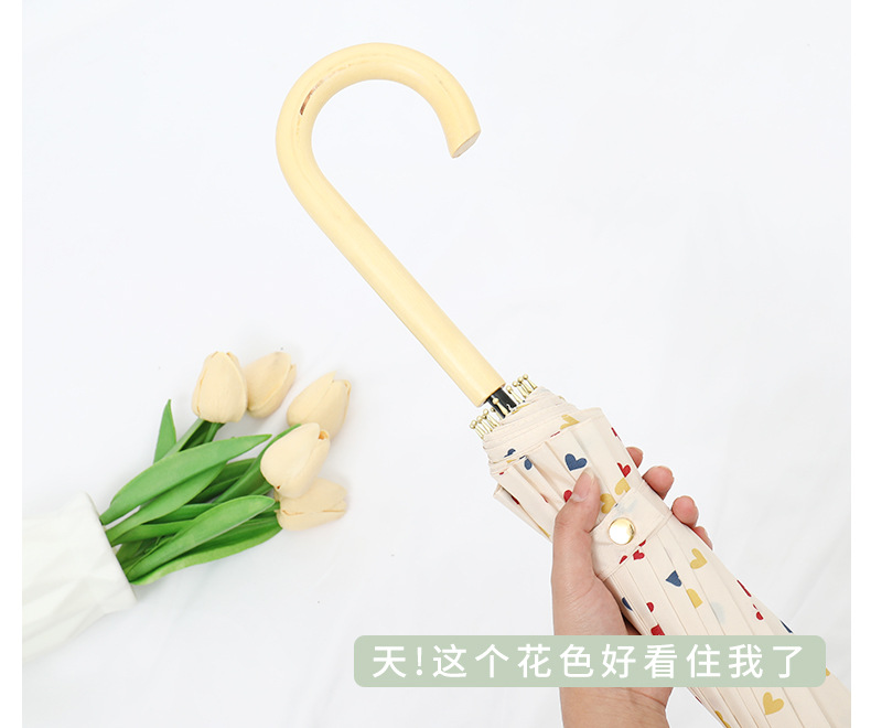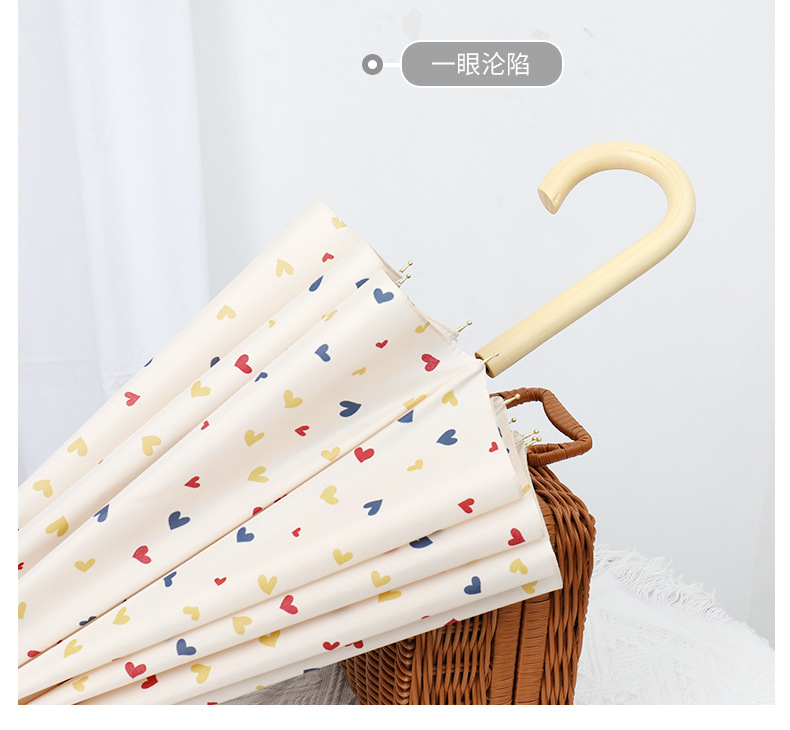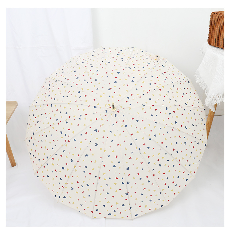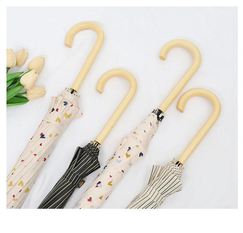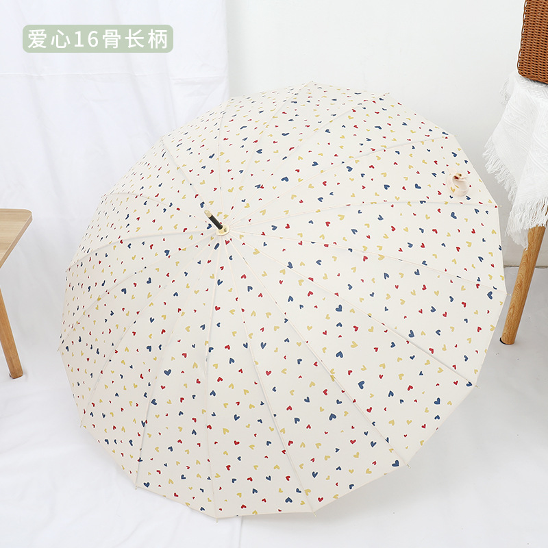 16 뼈 일본식 인쇄 긴 손잡이 우산 여성과 학생을위한 맑고 비오는 이중 사용 작은 신선한 스타일 나무 손잡이 곧은 두 배 예술적 우산스토어 가기