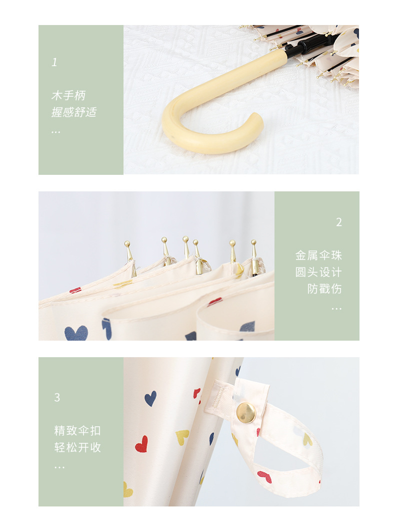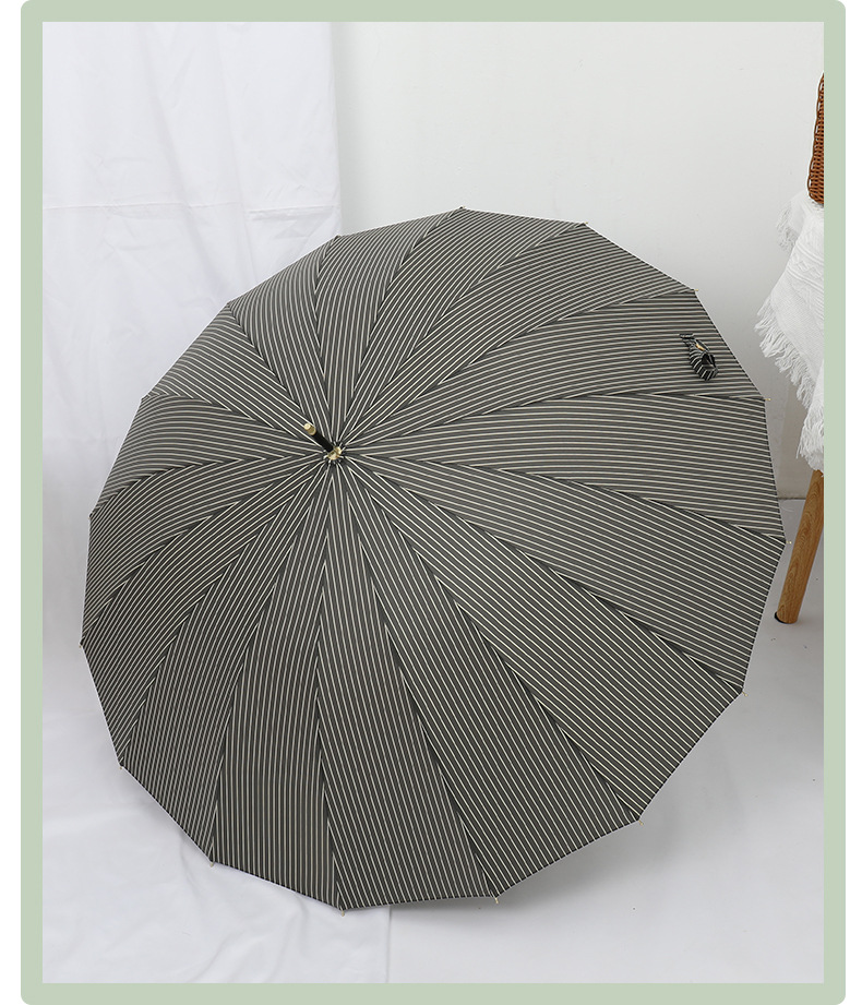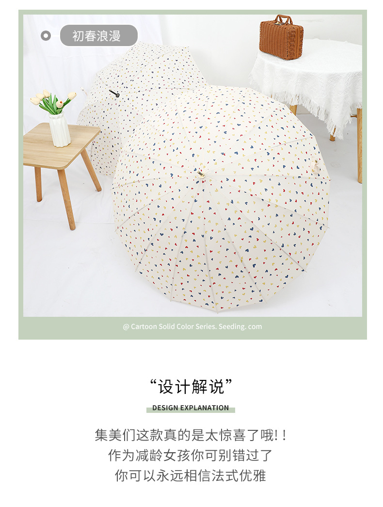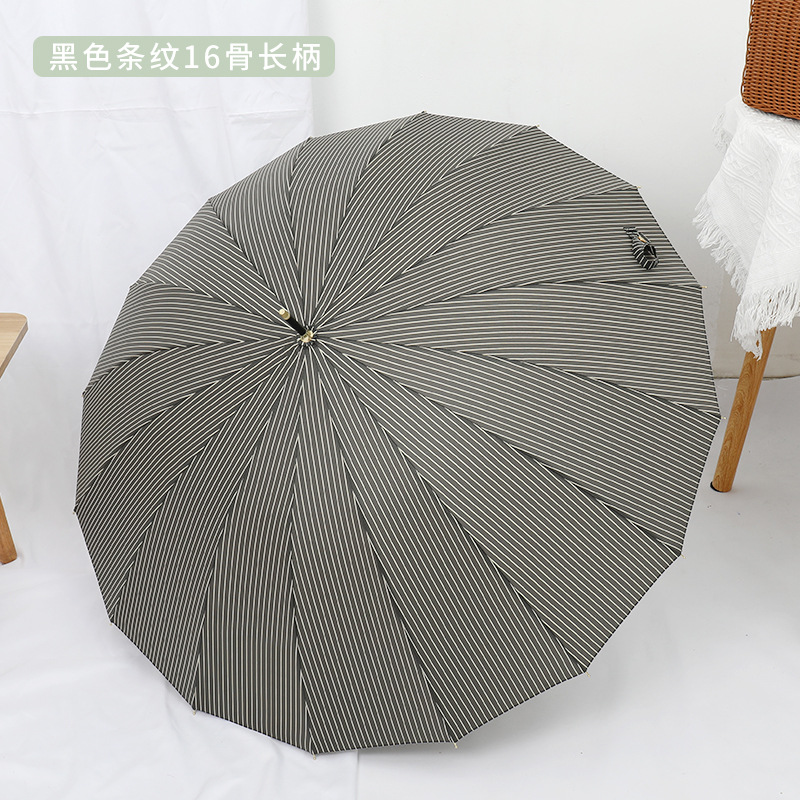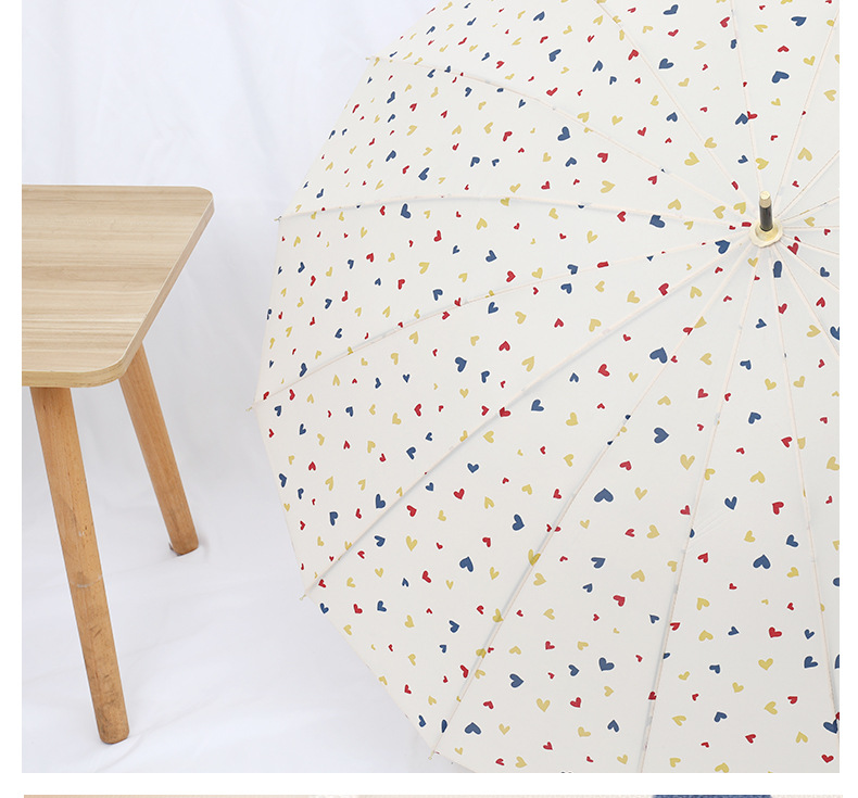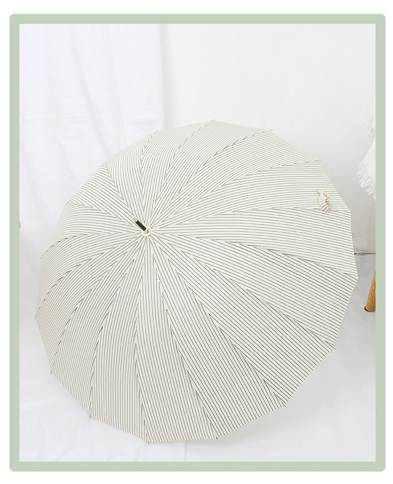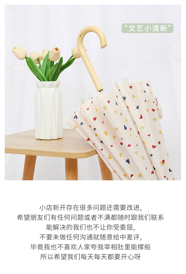 16 뼈 일본식 인쇄 긴 손잡이 우산 여성과 학생을위한 맑고 비오는 이중 사용 작은 신선한 스타일 나무 손잡이 곧은 두 배 예술적 우산스토어 가기
