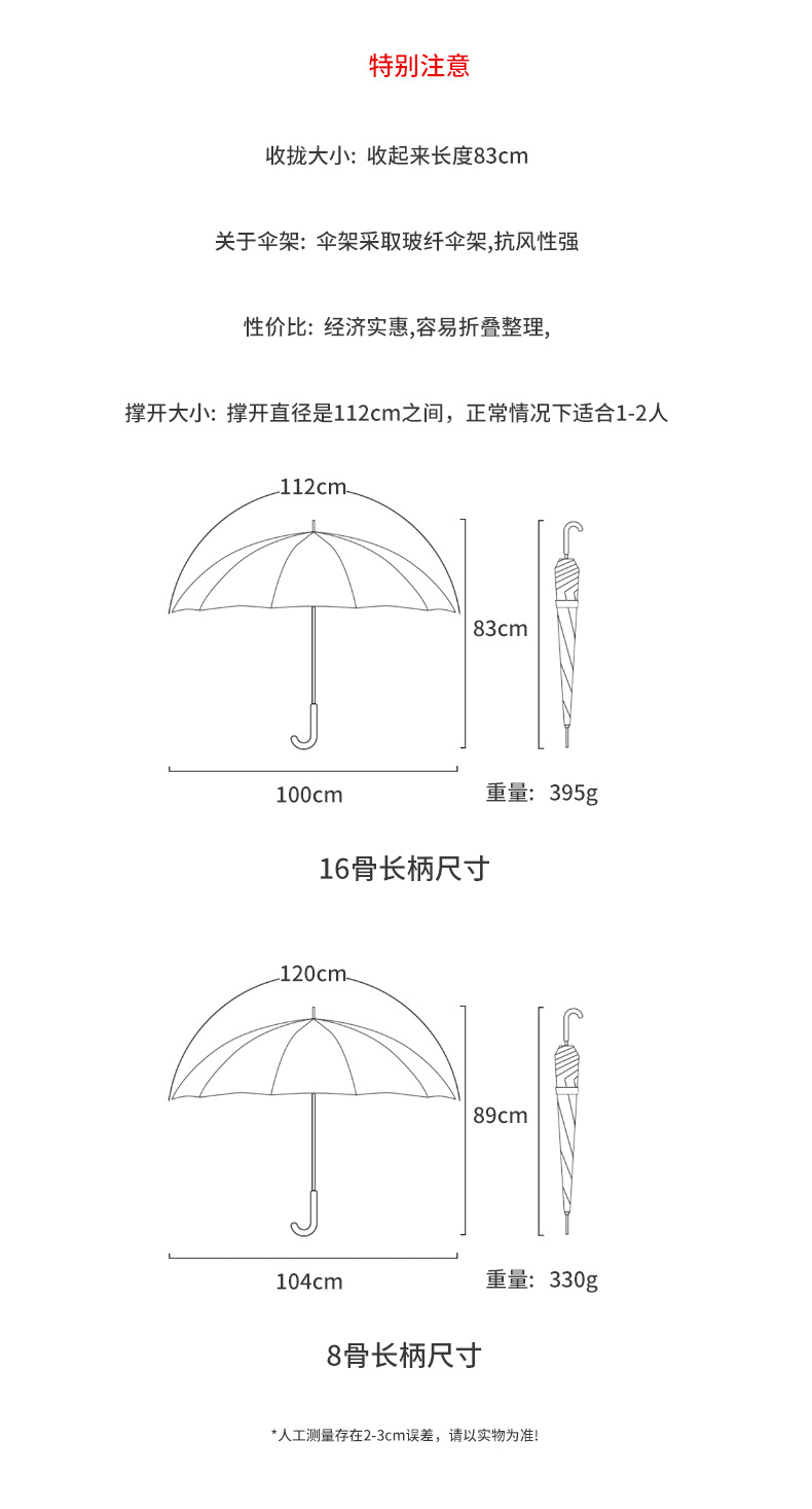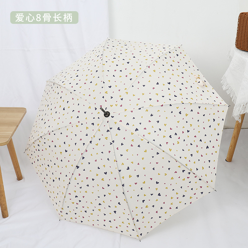 16 뼈 일본식 인쇄 긴 손잡이 우산 여성과 학생을위한 맑고 비오는 이중 사용 작은 신선한 스타일 나무 손잡이 곧은 두 배 예술적 우산