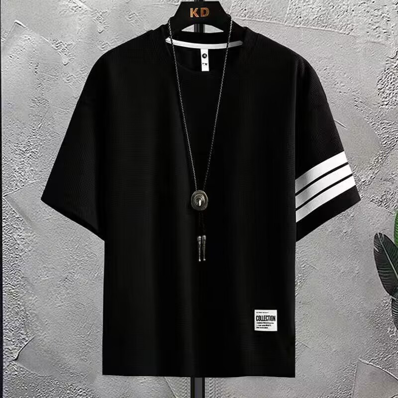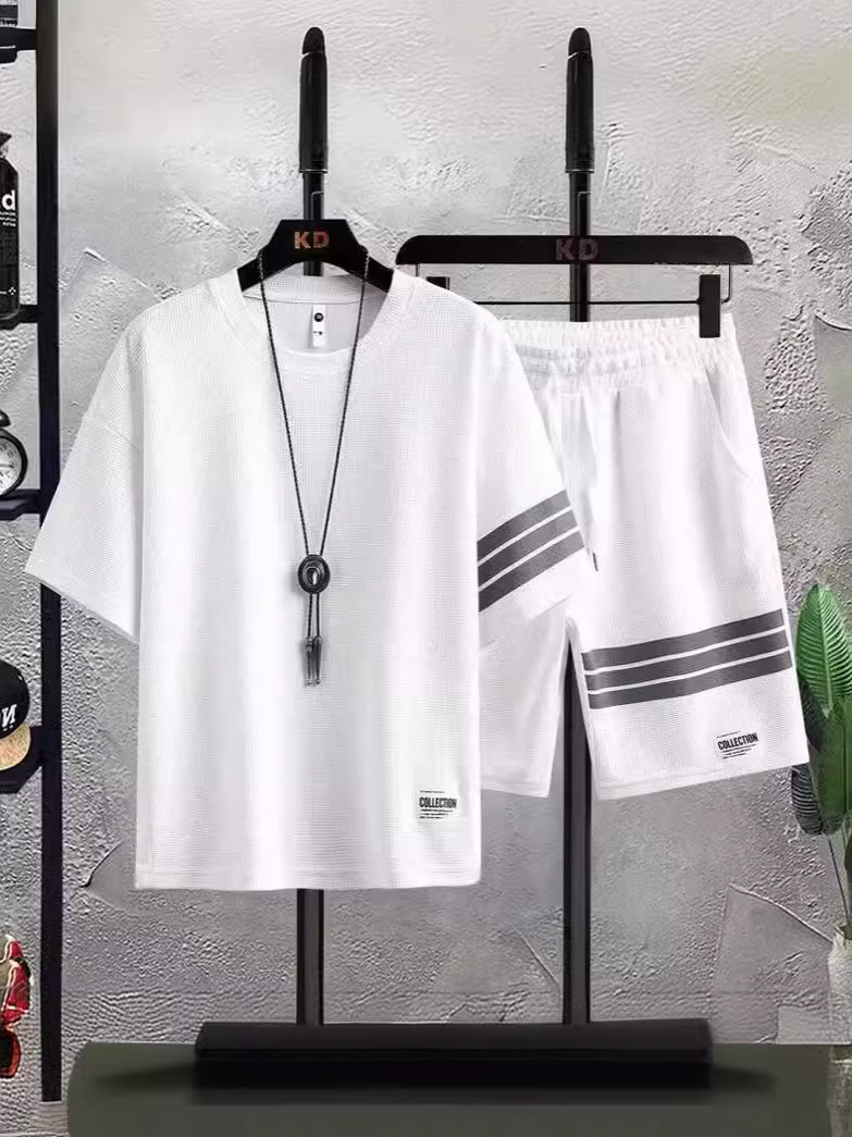 스포츠웨어 여름 얇은 와플 패턴 루즈핏 캐주얼 탑 티셔츠 세트 반바지 반팔 투피스 세트