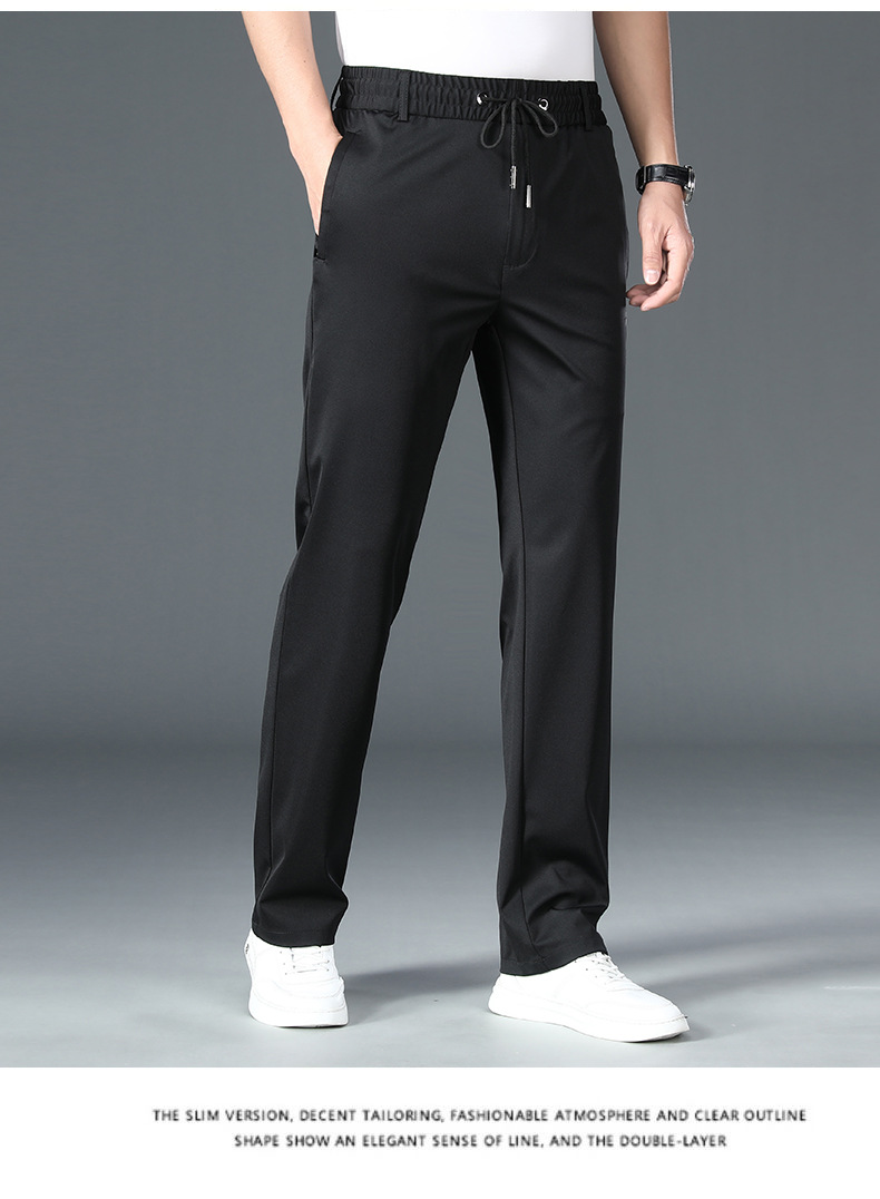 여름 캐주얼 바지 얇은 중년 및 노인 탄성 허리 비즈니스 남성 바지 가볍고 얇은 스포츠 바지 플러스 사이즈 느슨한 바지