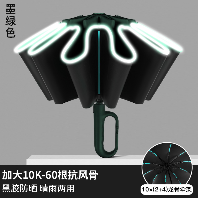 • 60 뼈 역 반지 버클 우산-다크 그린