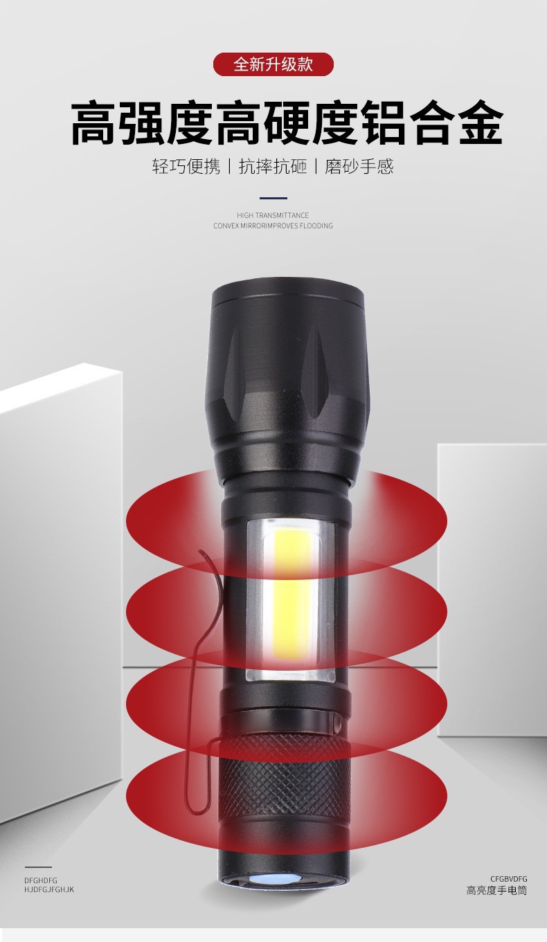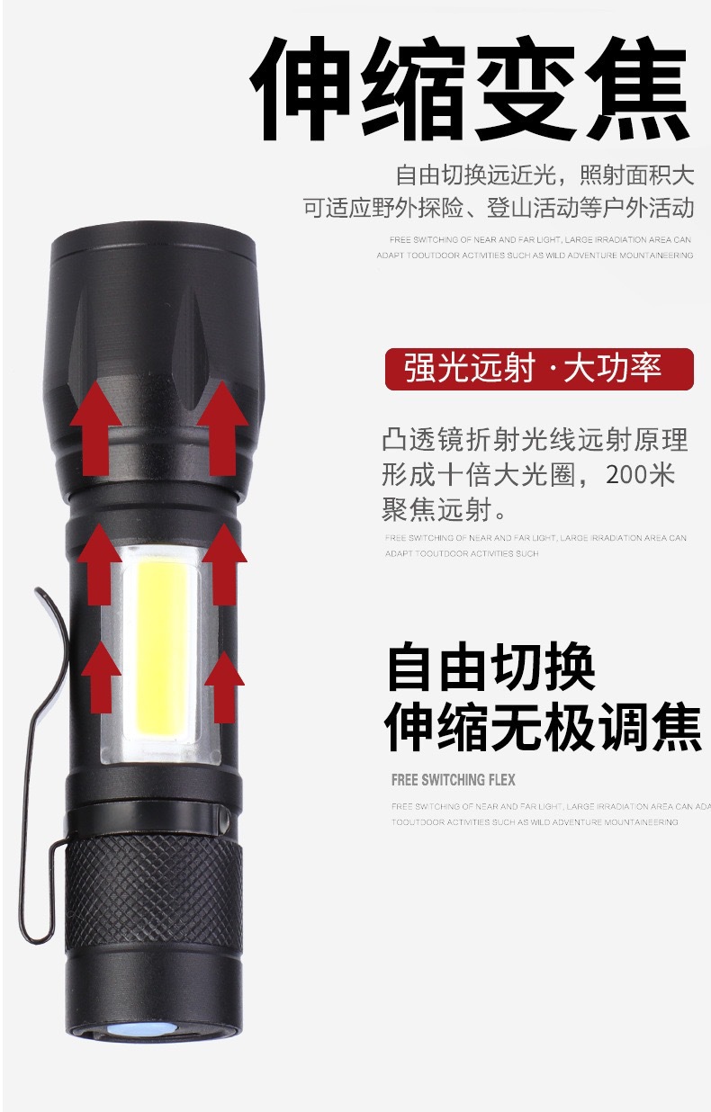 야외 조명 COB 사이드 라이트 핸드 헬드 작은 손전등 led 홈 미니 캠핑 텔레스코픽 초점 알루미늄 합금